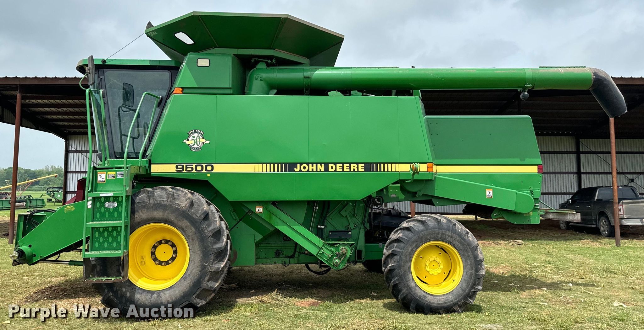 Purple Wave is selling a used Combine in Oklahoma. This item is a 1997 John Deere 9500 RWA combine with the following: Engine hours: 4,672 on meter, Serial: H09500X671735