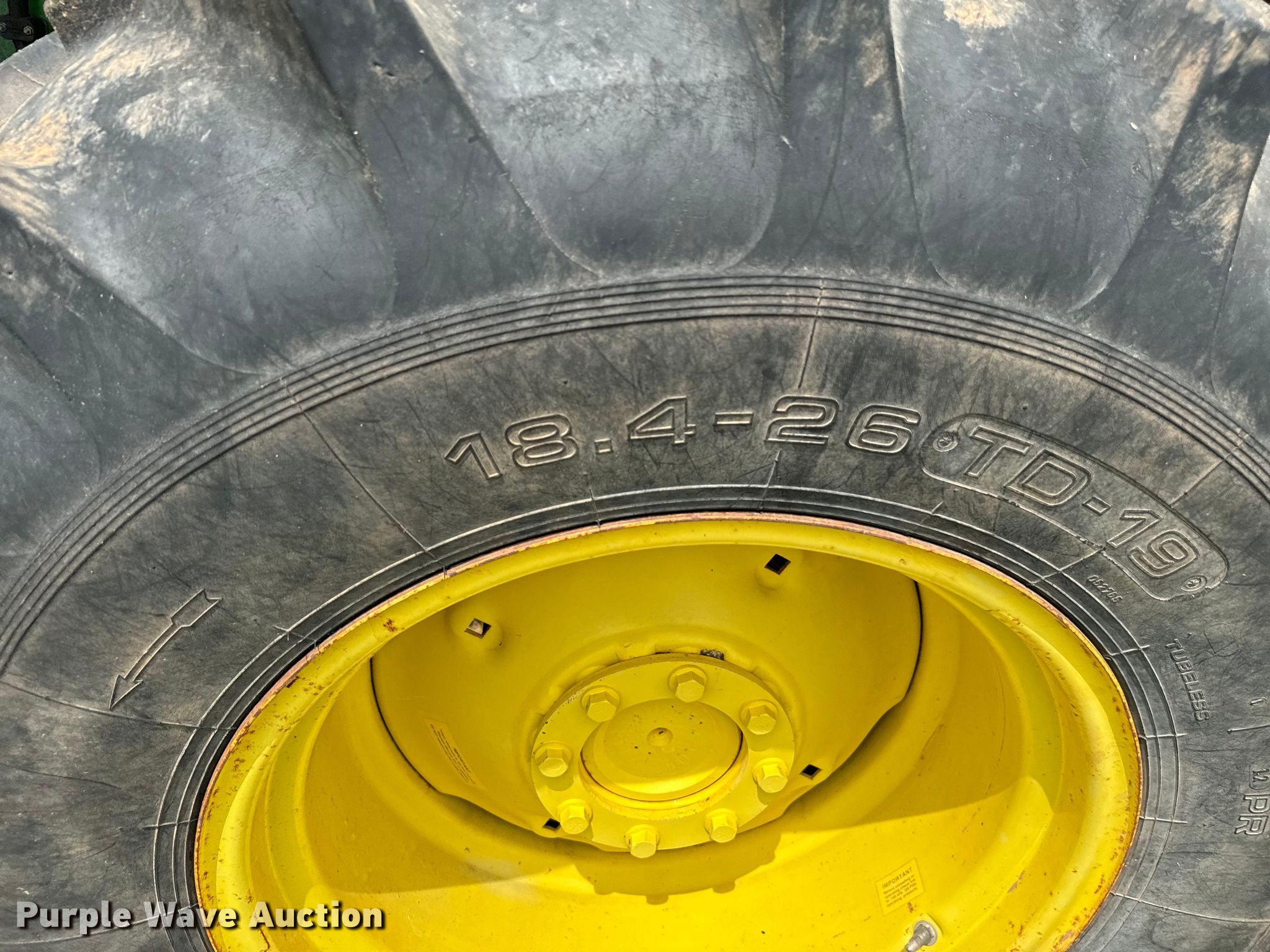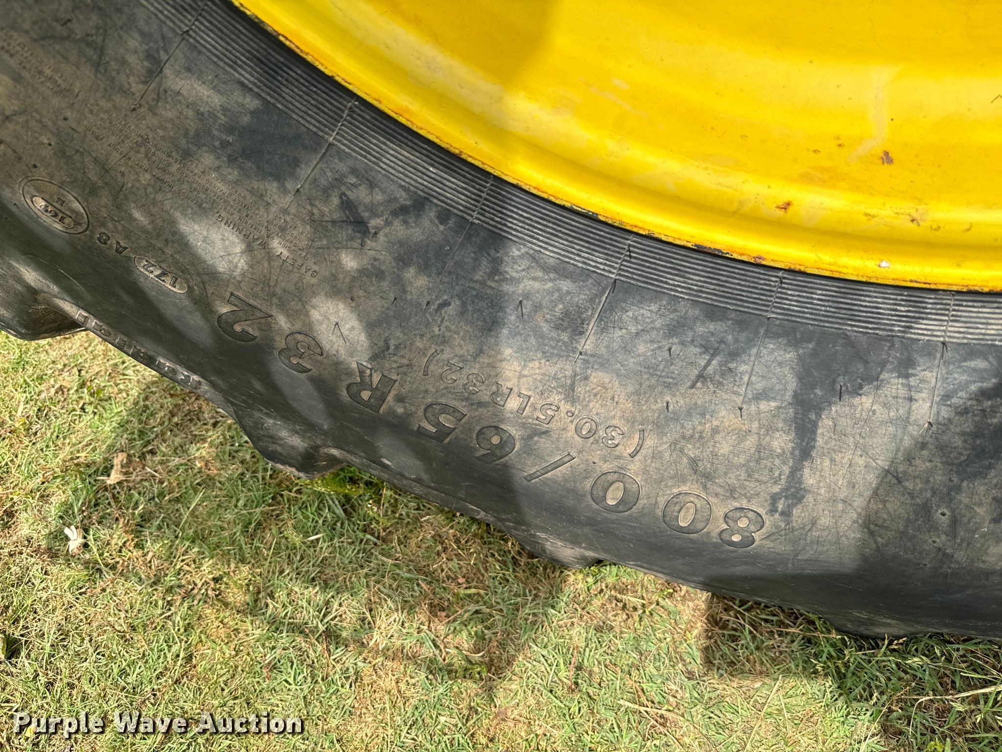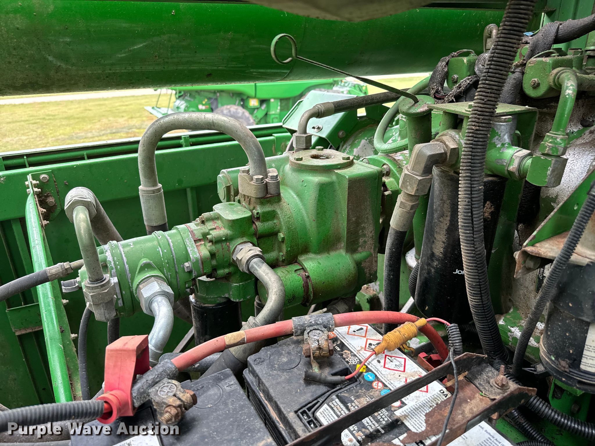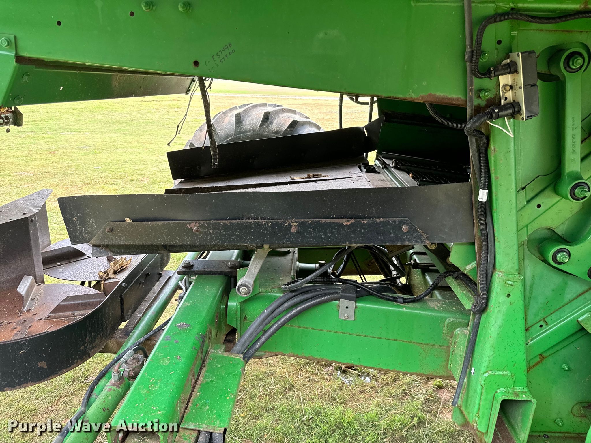 1997 John Deere 9500 RWA combine. Engine hours: 4,672 on meter, Serial: H09500X671735. Engine John Deere, Cylinders: 6, Fuel type: Diesel. Transmission Hydrostatic. Interior AC, Heat. Features Feederhouse: Reverser, Chaff spreader, Bin: Extensions. Tires Front: 800-65R32, Rear: 18.4-26. JKT Farms. 1138 Hyde Lake Road. Bennington, OK 74723