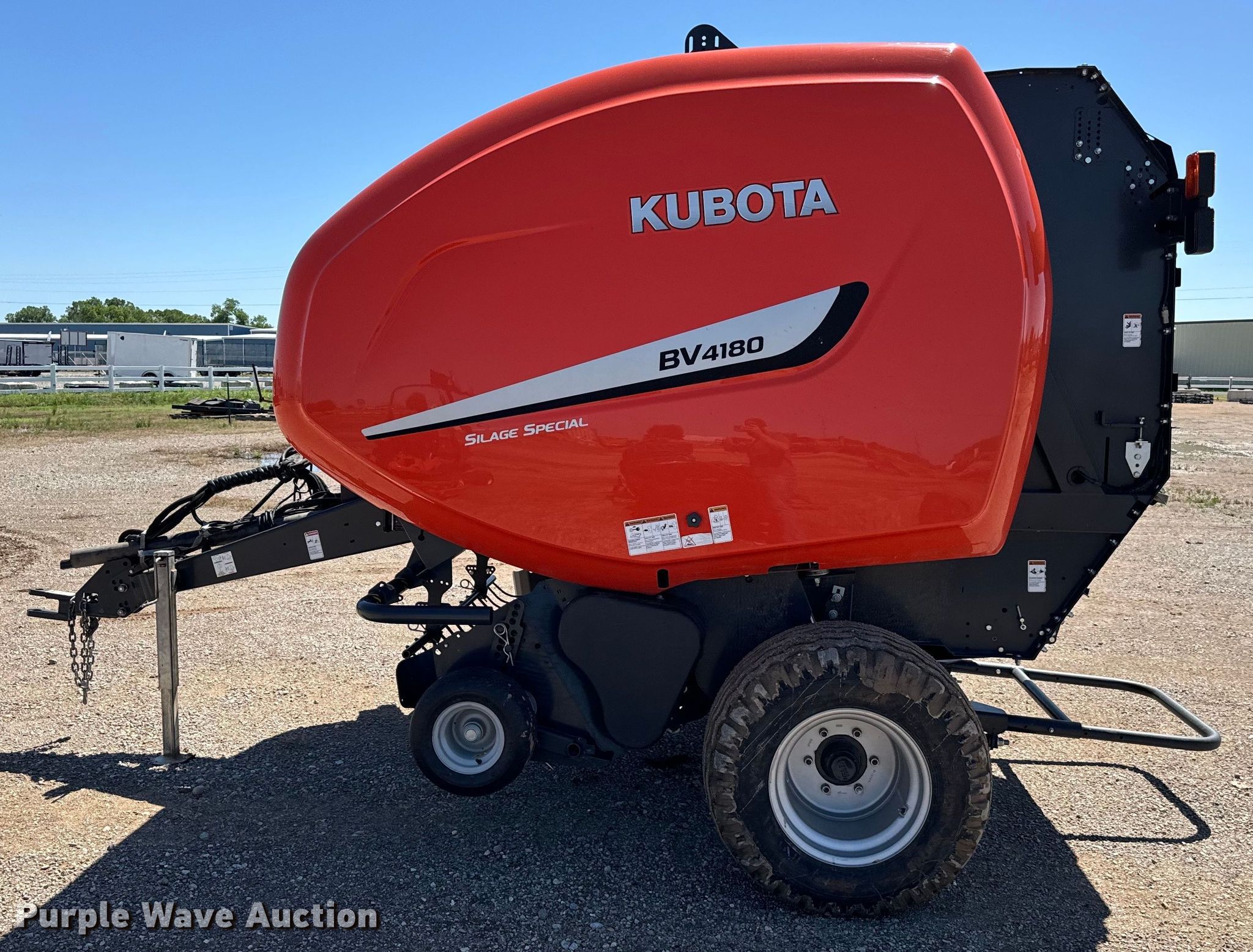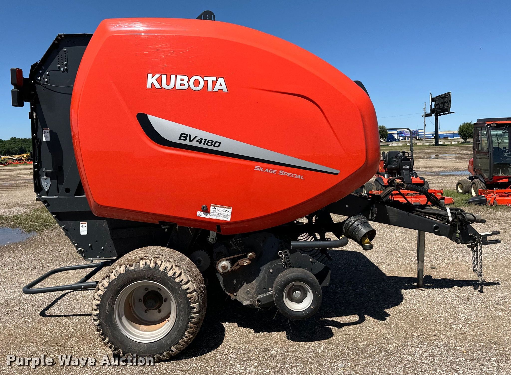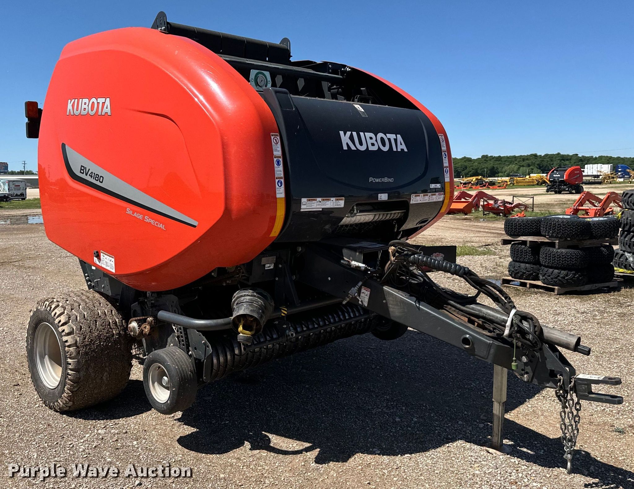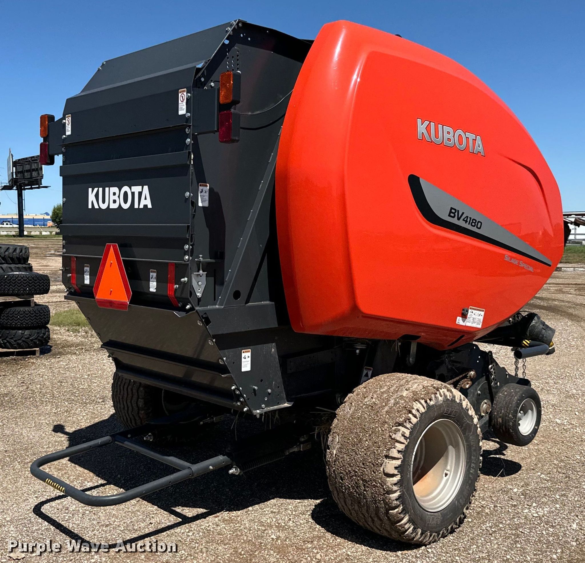 Purple Wave is selling a used Round Baler in Oklahoma. This item is a 2020 Kubota BV4180 round baler with the following: Bale count: 3,976, Serial: ZPMBAL000KKR00166, Unit #: A049690