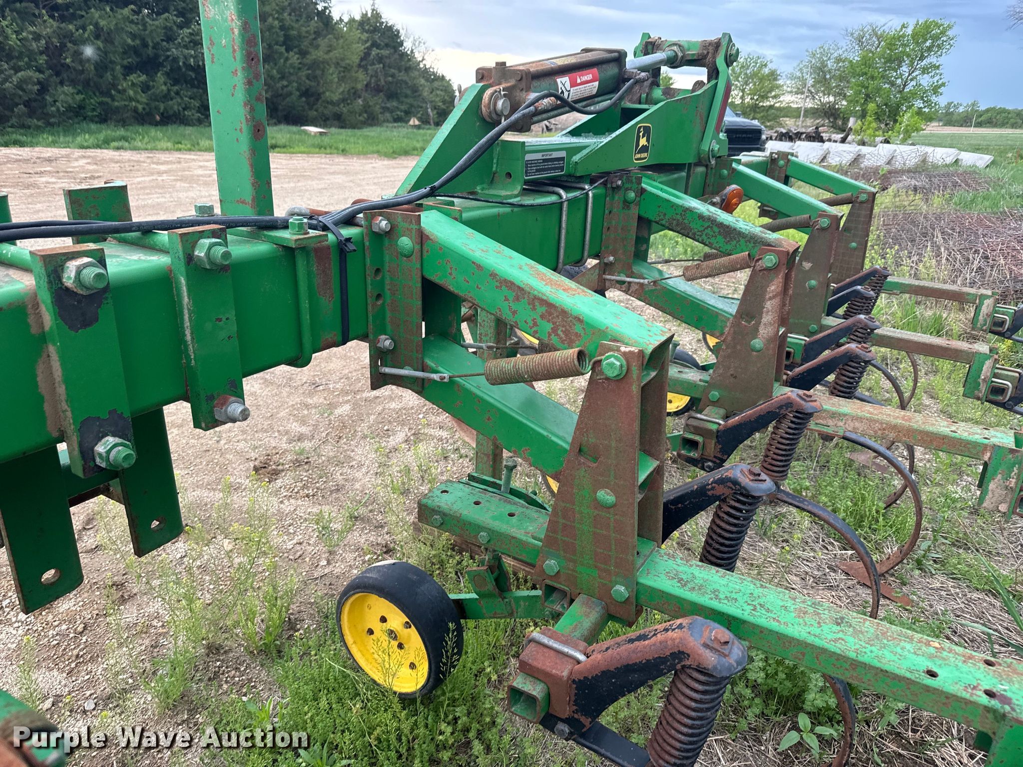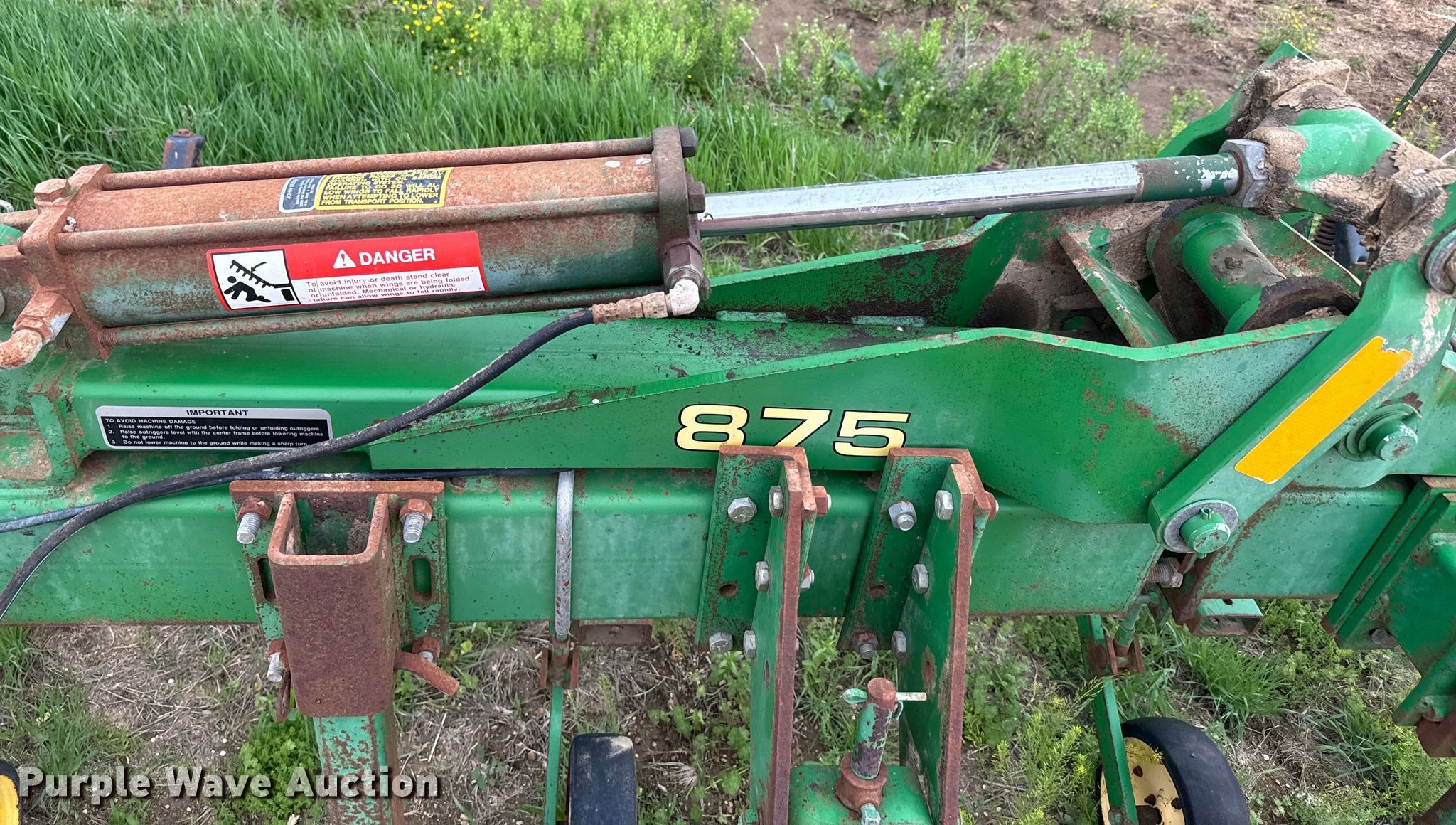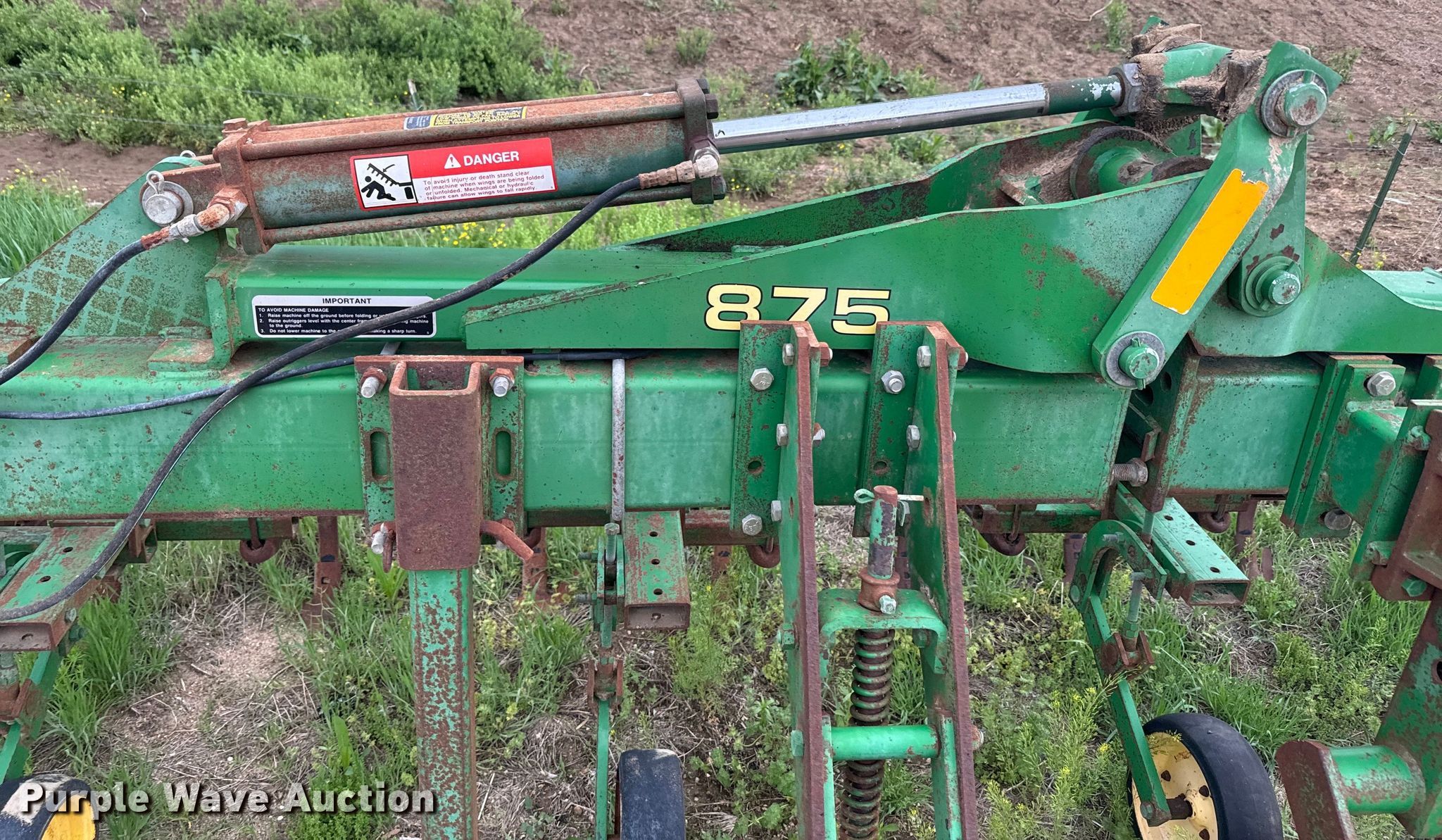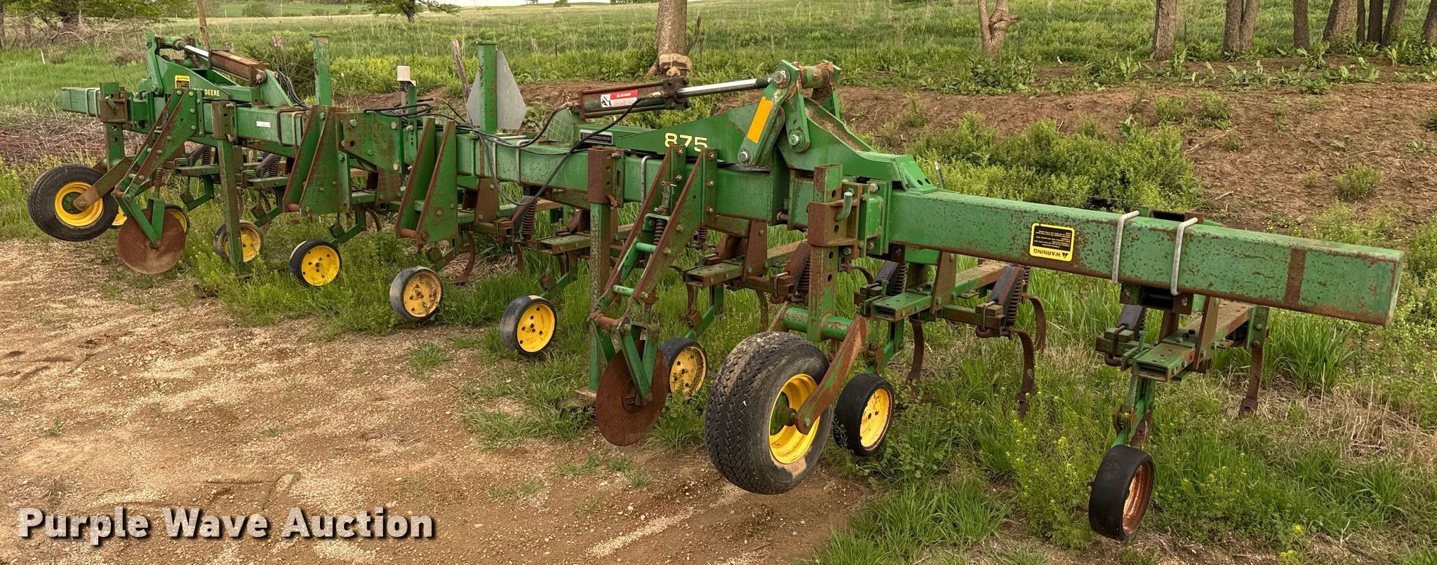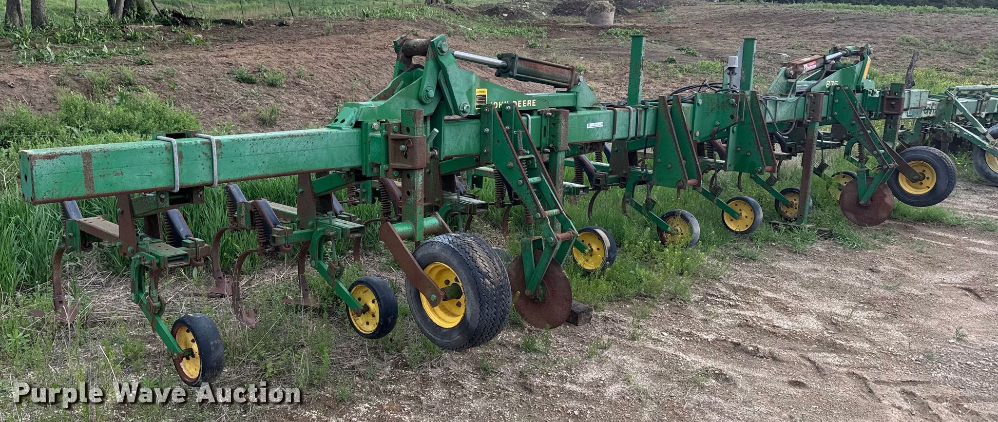 Purple Wave is selling a used Field Cultivator or Sweep Plow in Kansas. This item is a John Deere 875 row crop cultivator with the following: Overall width: 28', Serial: N00875X002311
