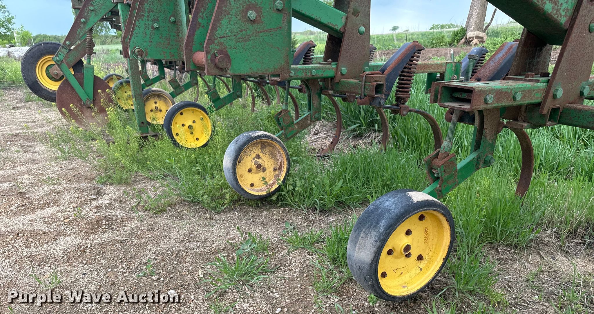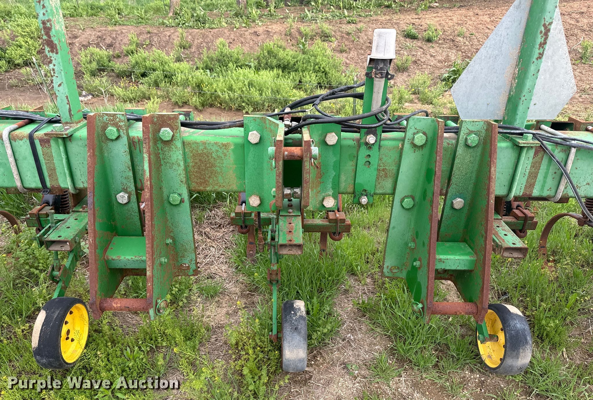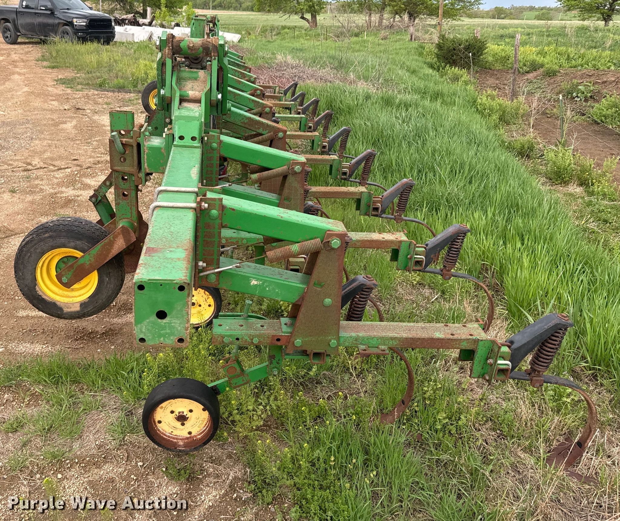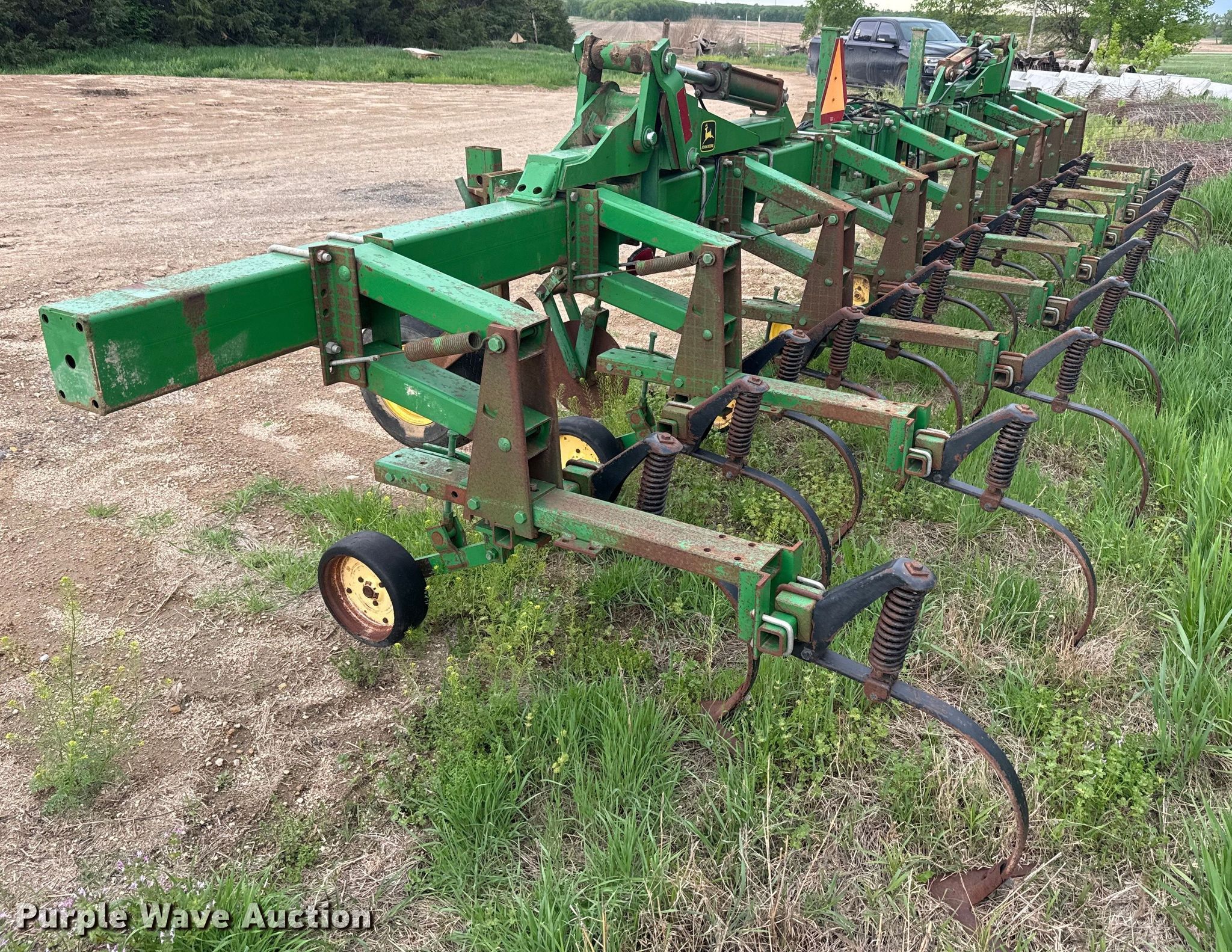 Purple Wave is selling a used Field Cultivator or Sweep Plow in Kansas. This item is a John Deere 875 row crop cultivator with the following: Overall width: 28', Serial: N00875X002311