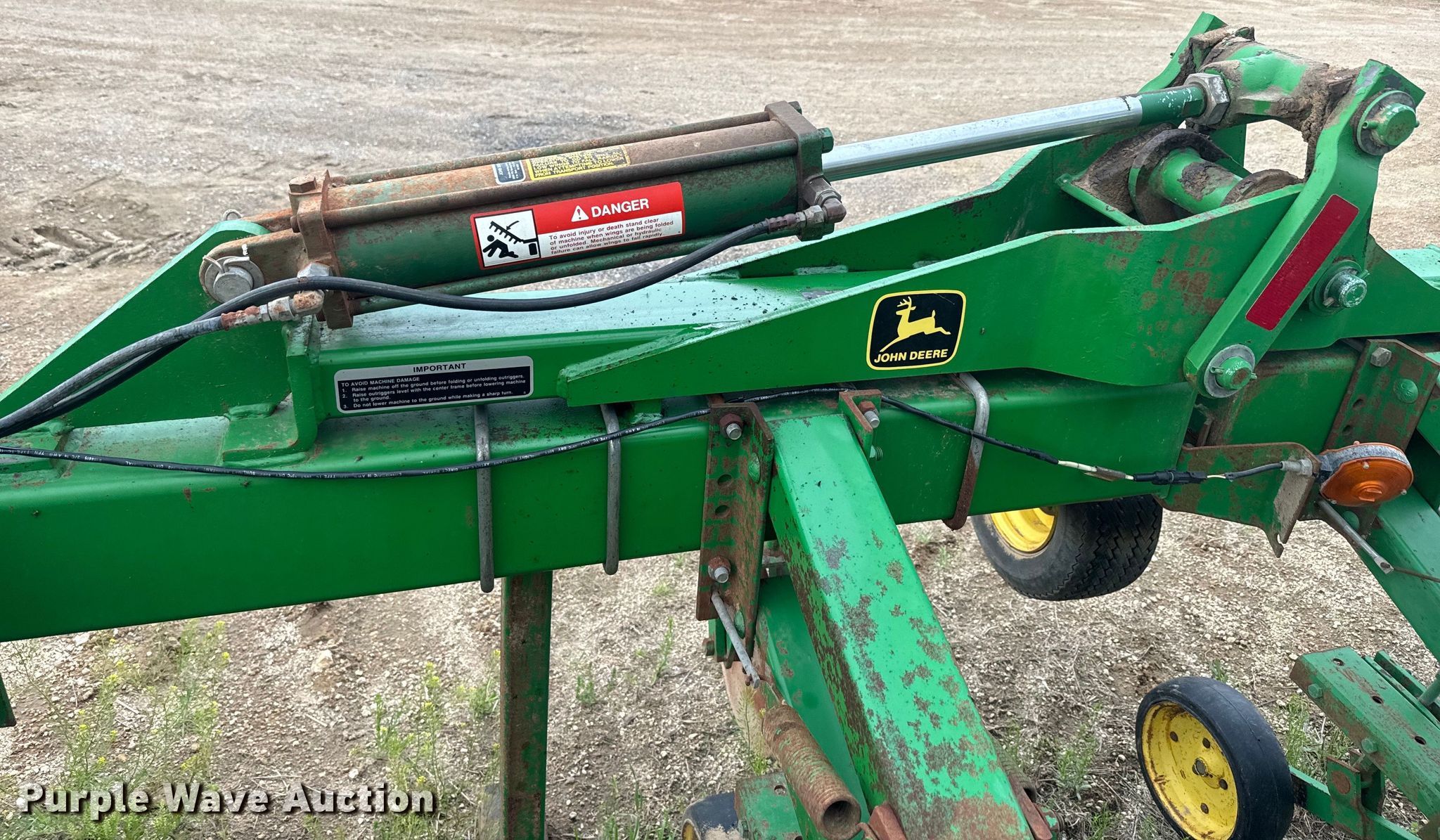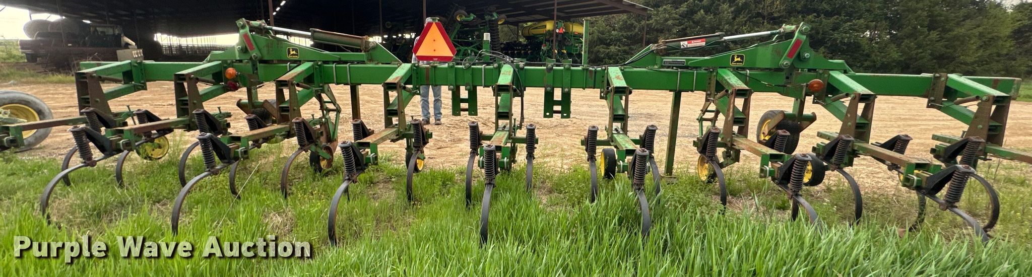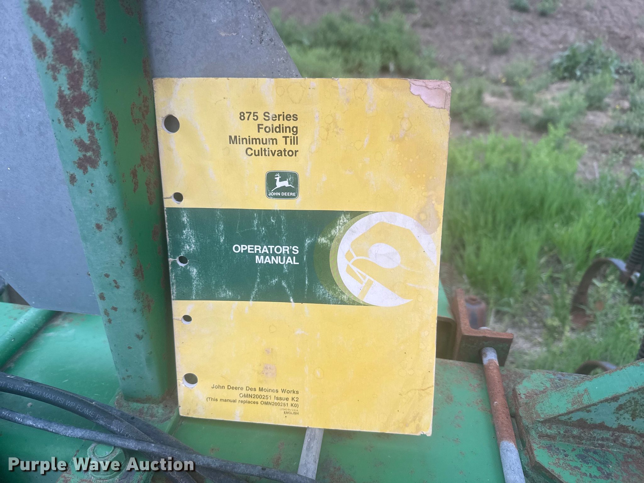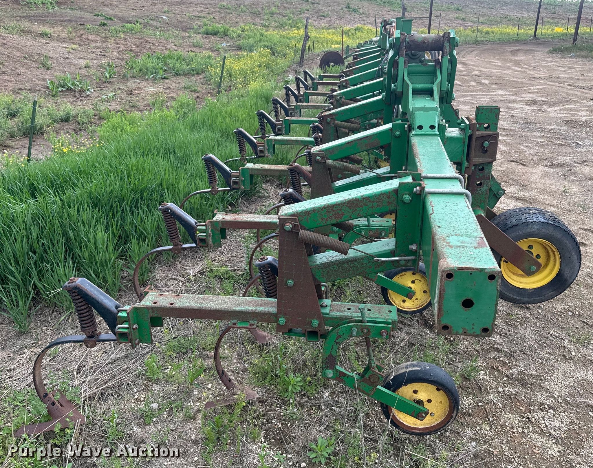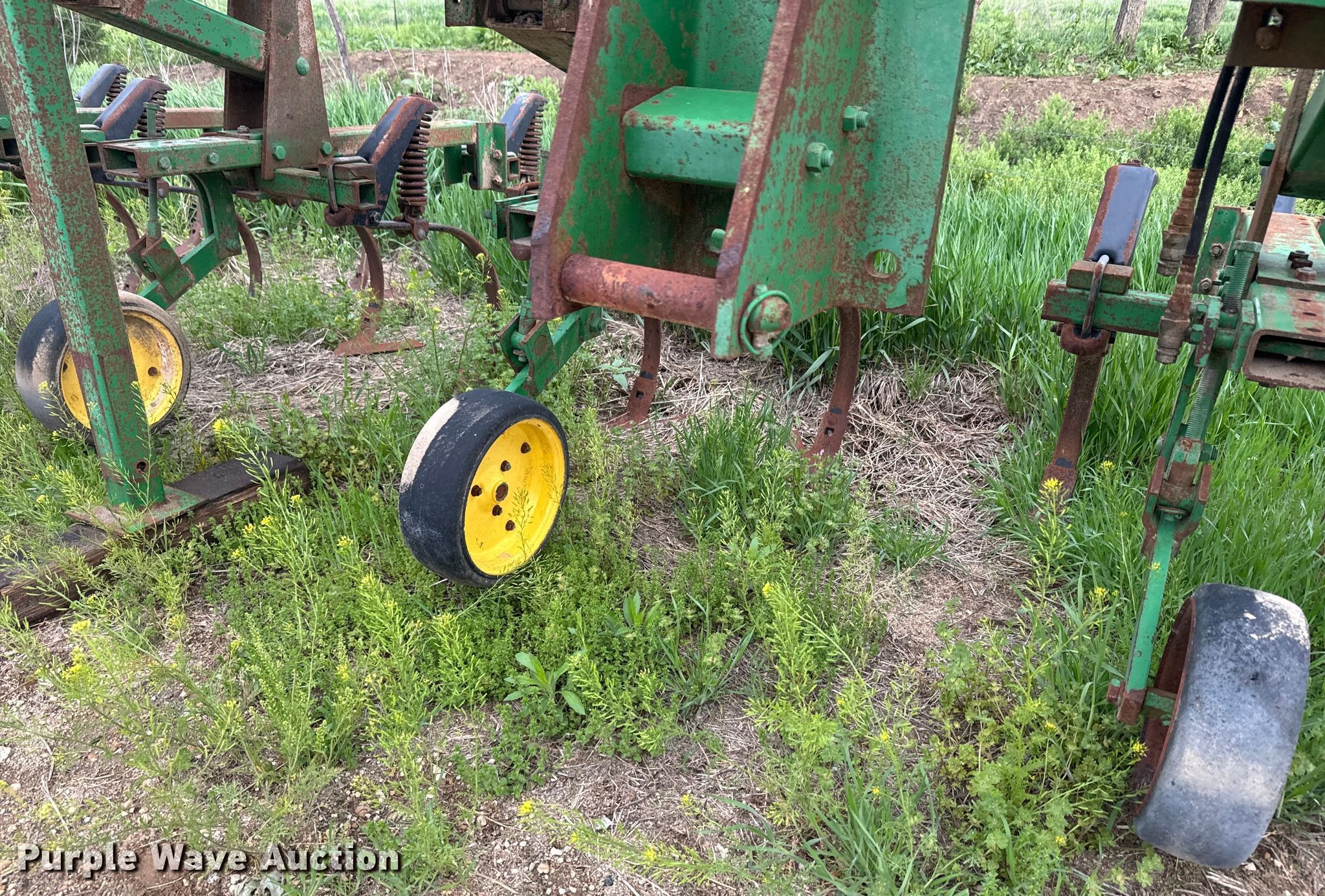 Purple Wave is selling a used Field Cultivator or Sweep Plow in Kansas. This item is a John Deere 875 row crop cultivator with the following: Overall width: 28', Serial: N00875X002311