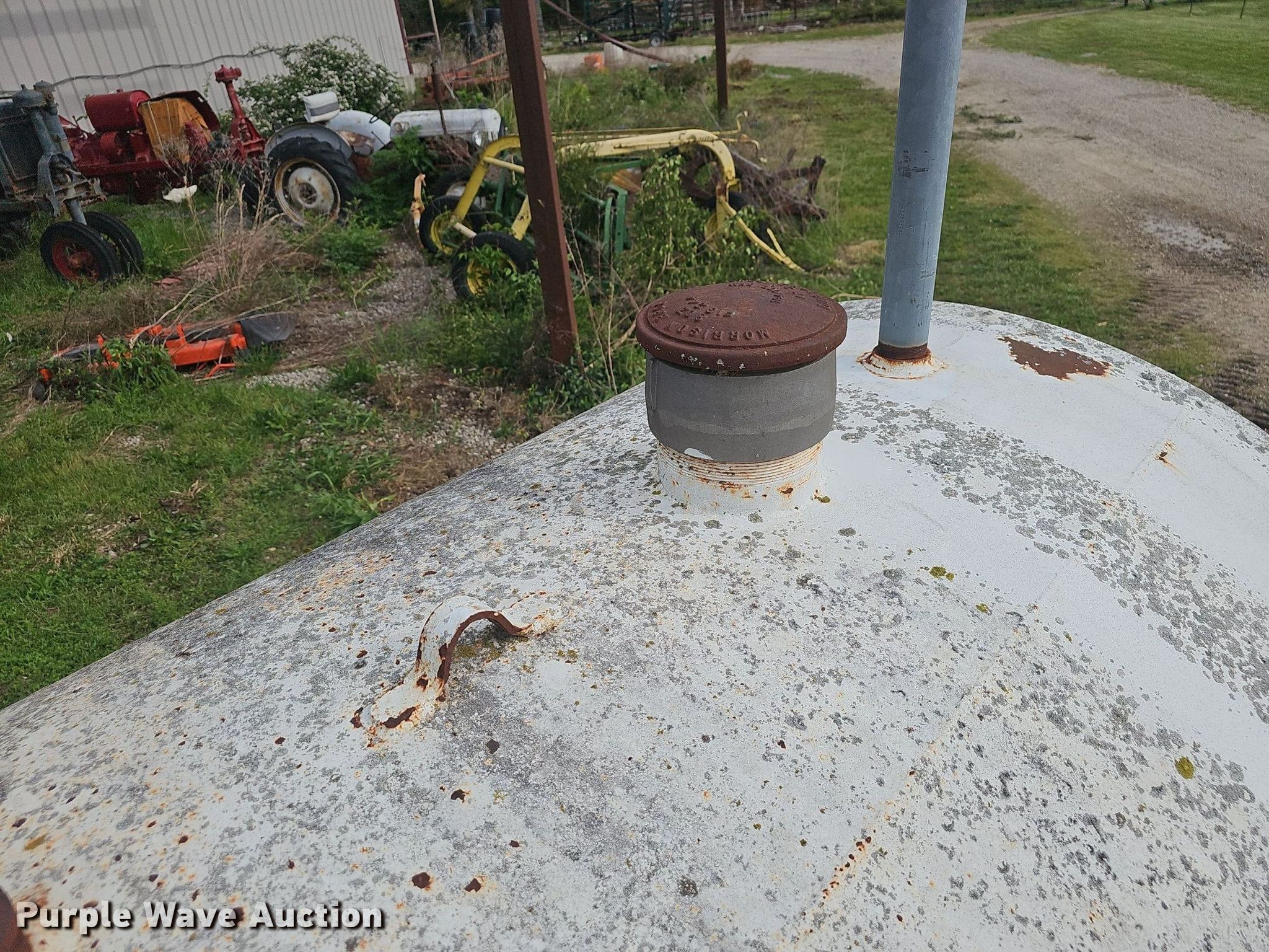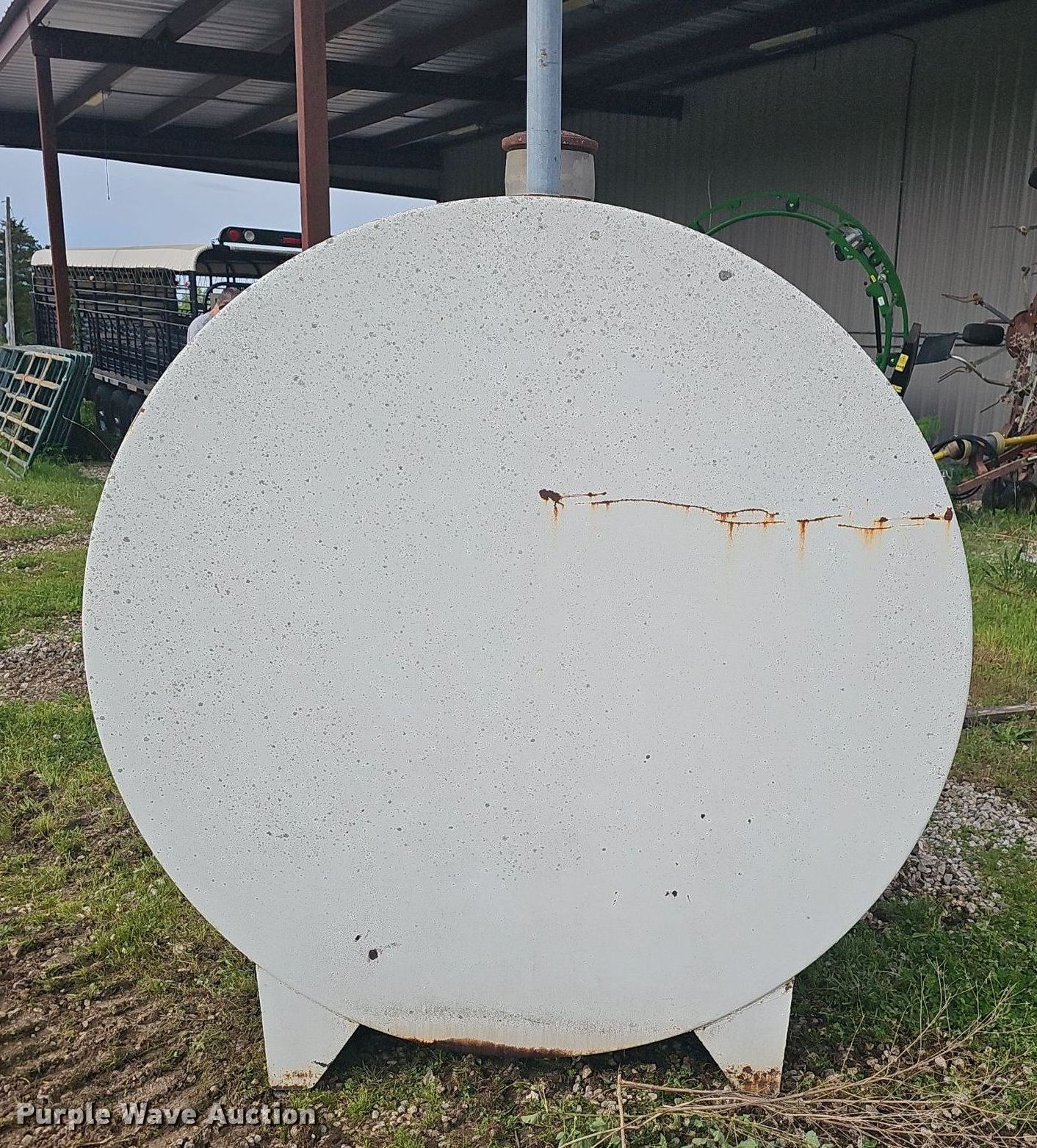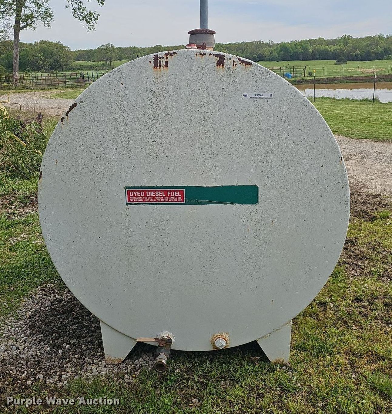 Purple Wave is selling a used Fuel and Lube in Missouri. This item is a Fuel tank with the following: Dimensions: 74" x 63" diameter, Fuel type: Diesel, Top fill, Capacity: 998 gallons