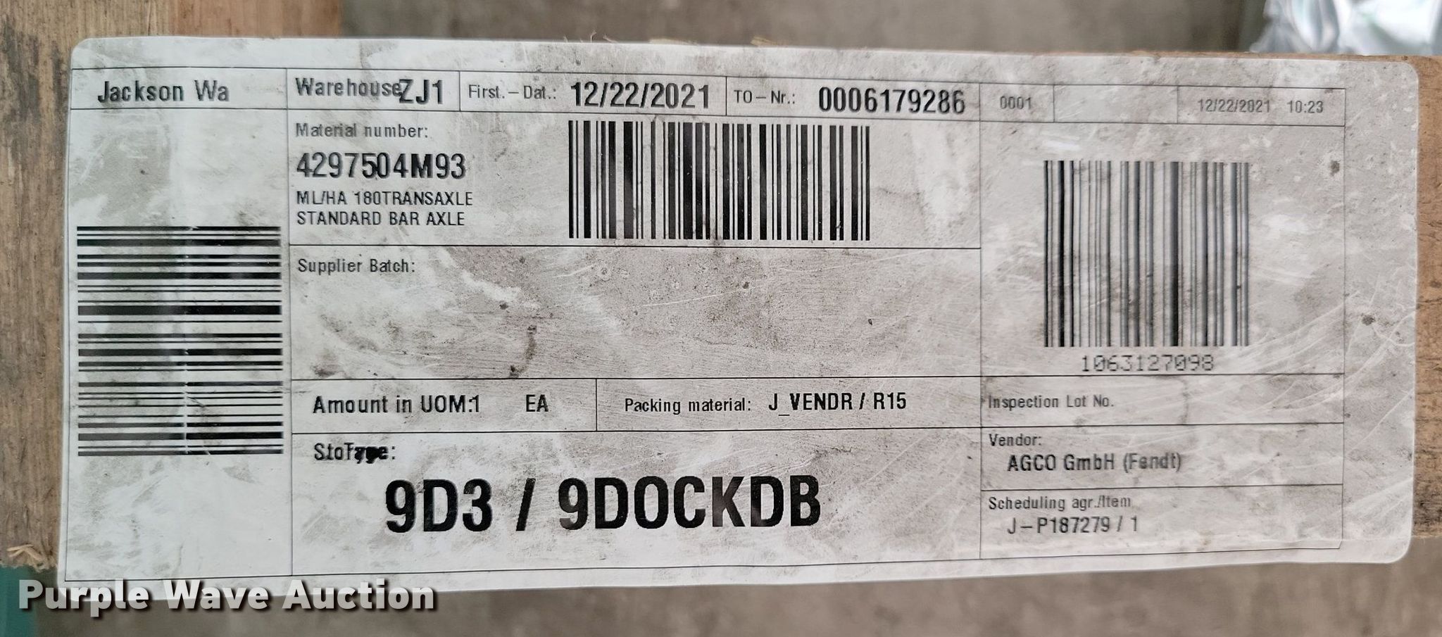 Purple Wave is selling a used Ag Tractor Loader or Attach. in Minnesota. This item is a Fendt drive train with the following: Serial: 4297504M93, Rear differential, Transmission, Fits Massey Ferguson tractor, Unused