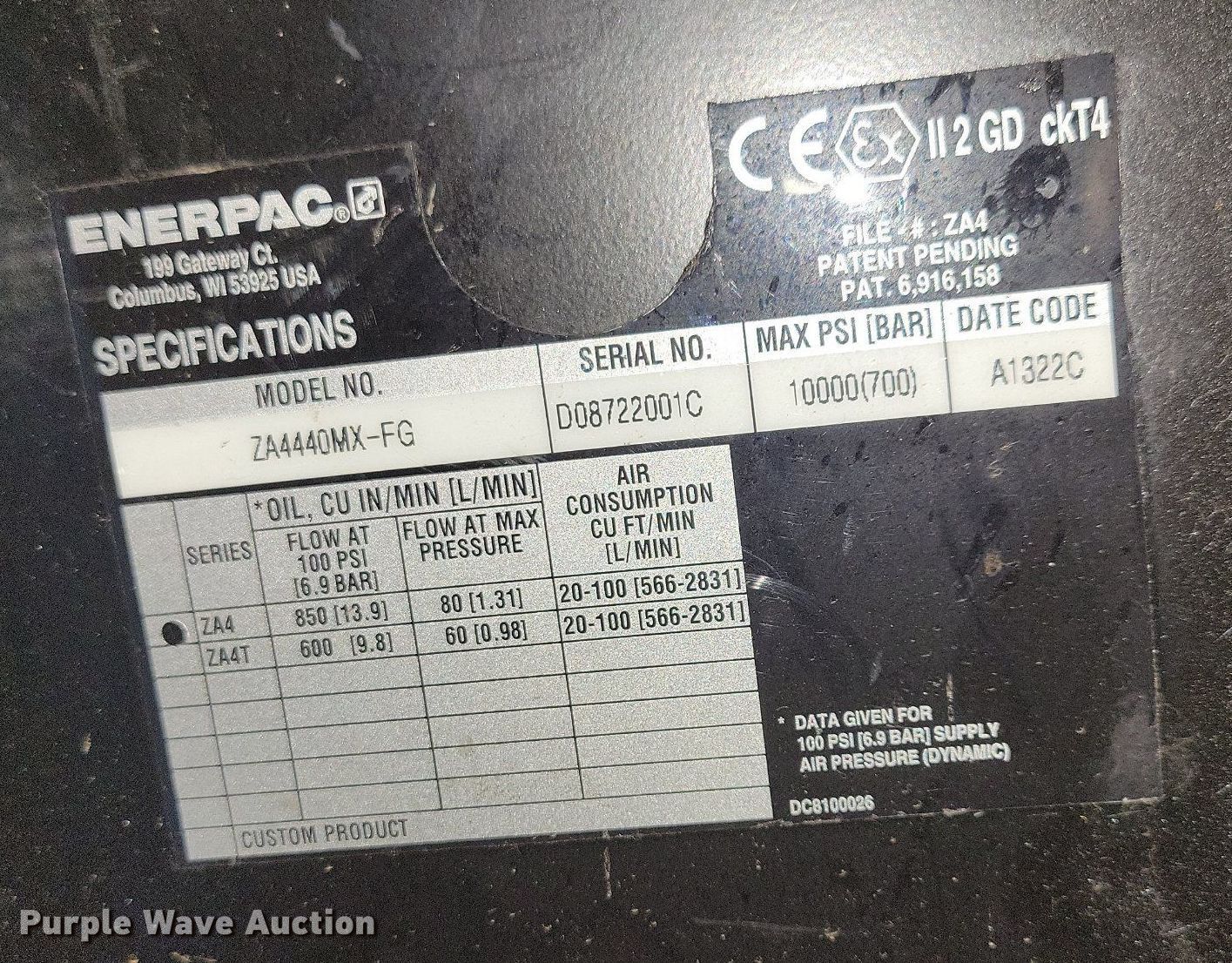 Purple Wave is selling a used Air Compressor in Minnesota. This item is a Enerpac ZA4440MX-FG air compressor with the following: PSI: 10,000