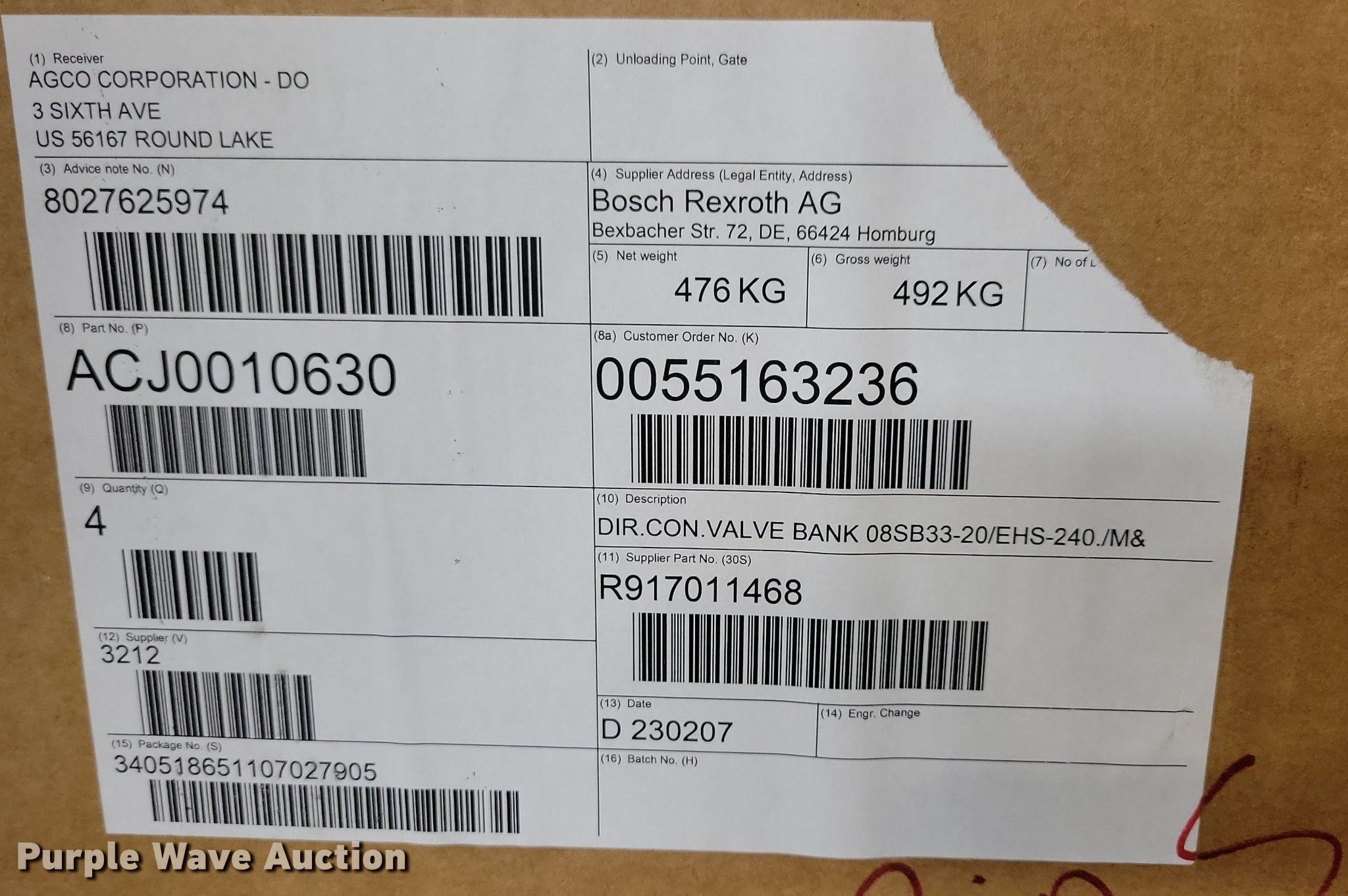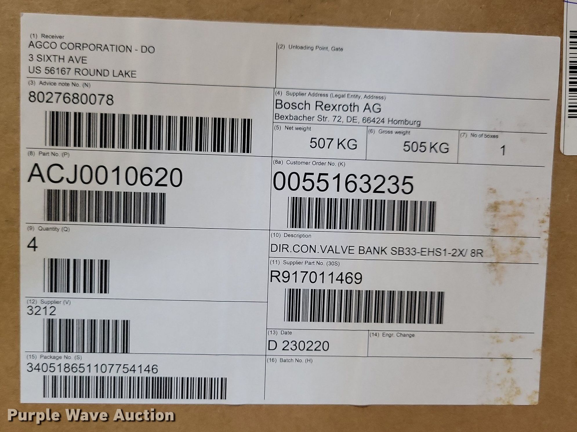 Hydraulic service banks. Bosch Rexroth AG. (17) ACJ0010630 Valves: 7, (15) ACJ0010620 Valves: 8. AGCO (2) ACJ0010570P Valves: 4, (2) ACJ0010560P Valves: 6. Notes Fits Challenger and Fendt tractors, Unused. AGCO. Round Lake, MN 56167