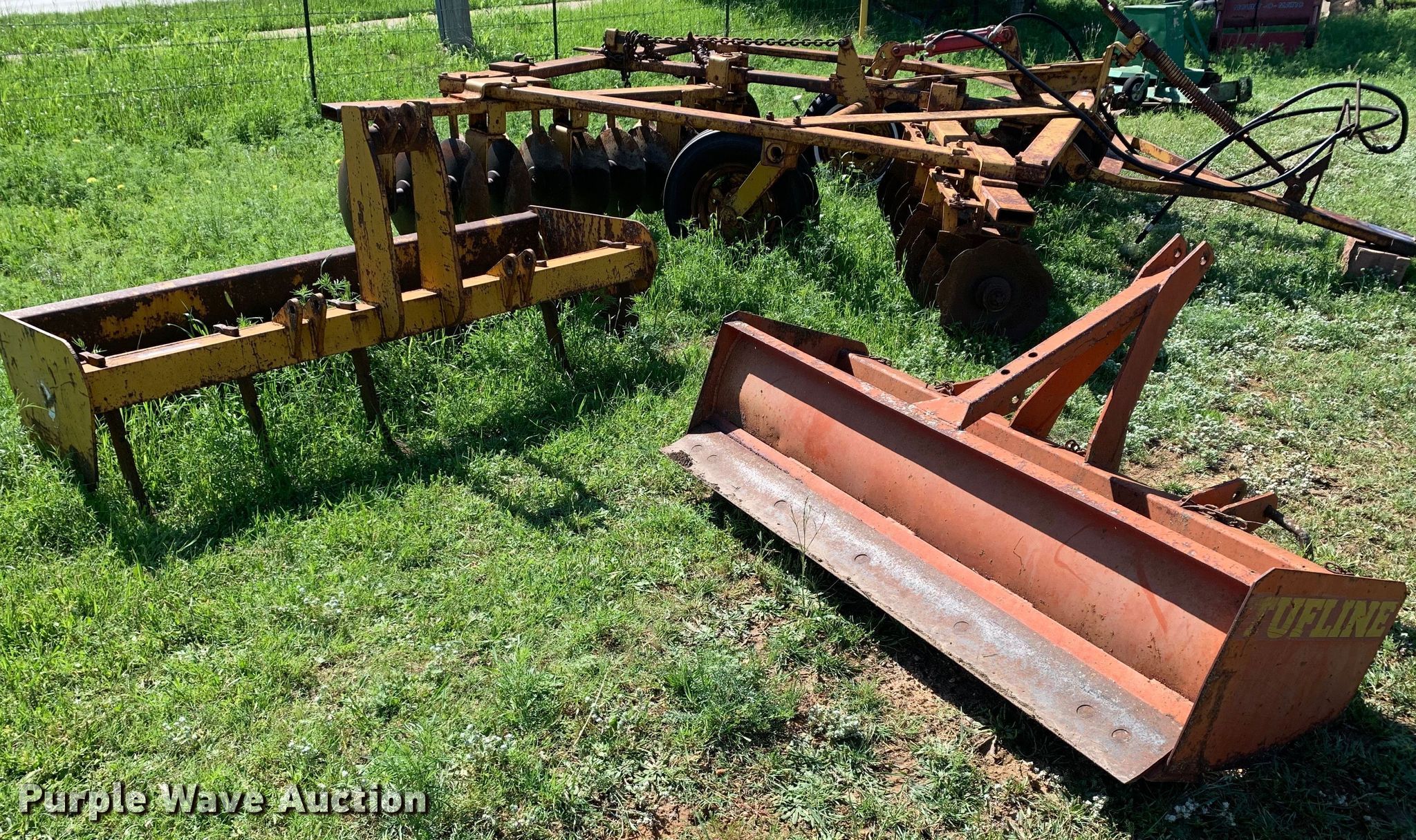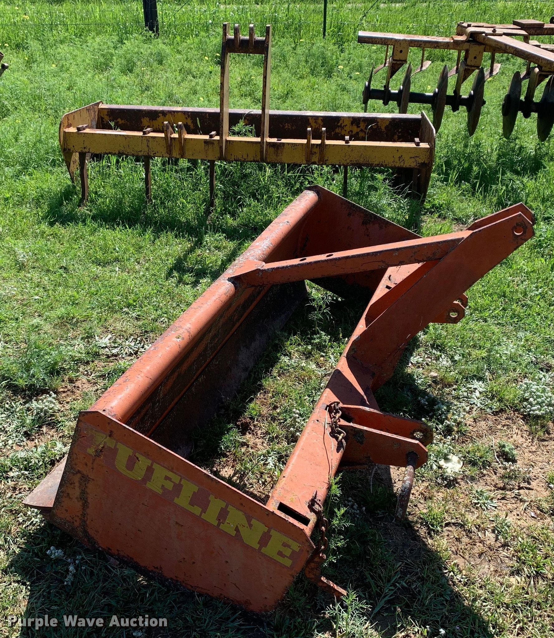 (2) box blades. Tufline TB060 Serial: 302, Width: 5', Cutting edge: Bolt-on, 6' W box blade Shanks: 5. Notes Disk not included. C Squared Ranch. Fort Worth, TX 76140