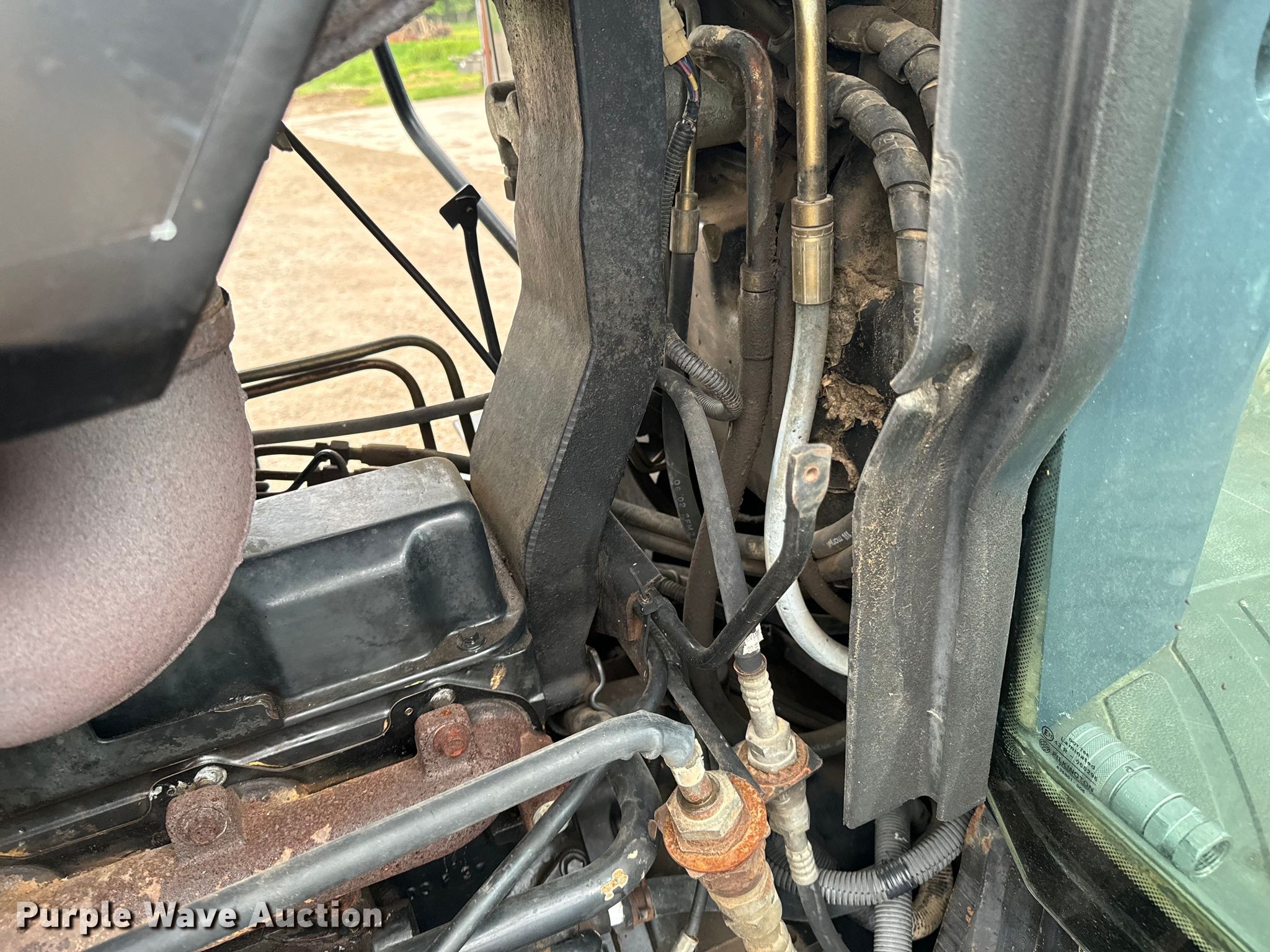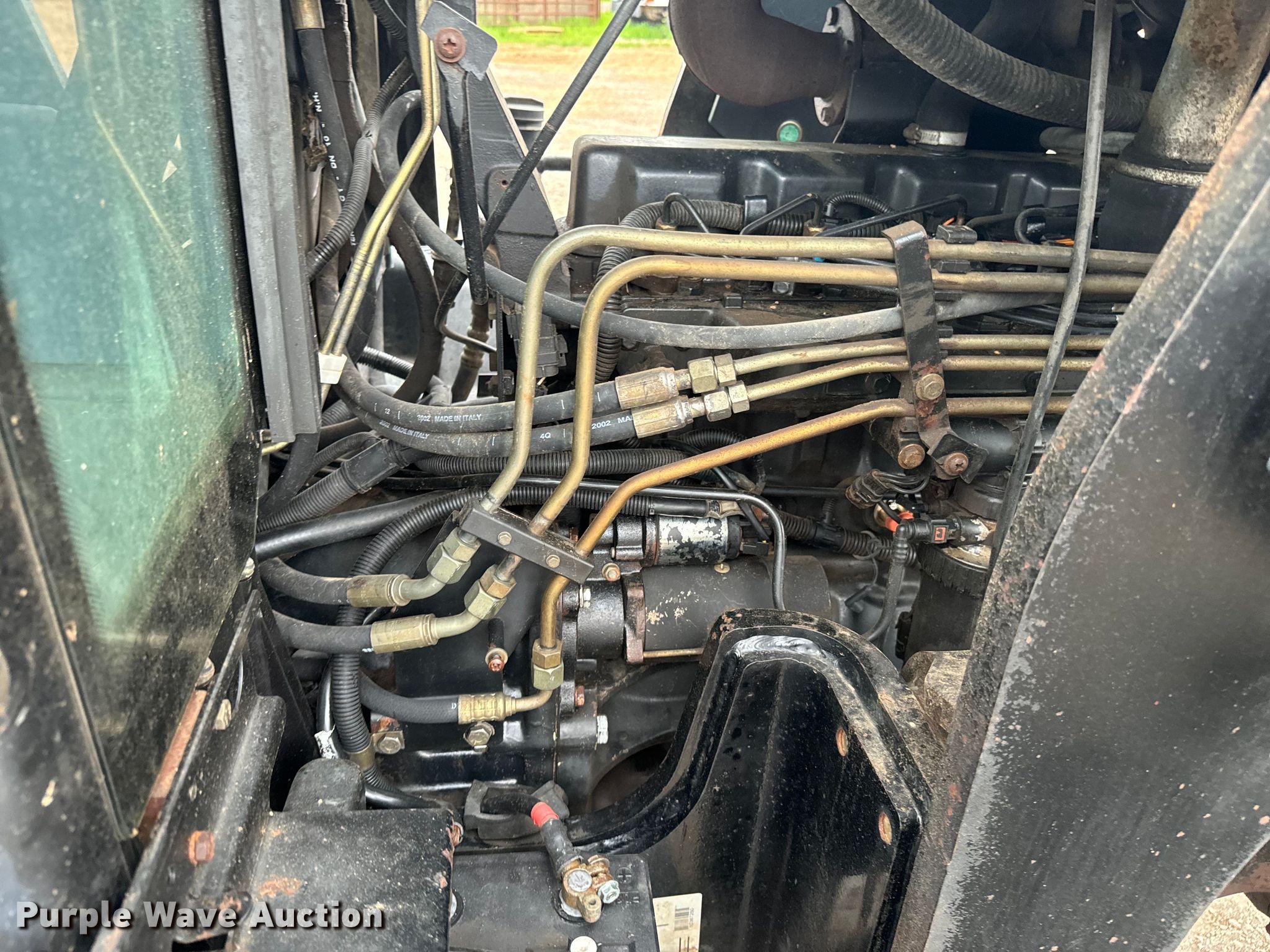 2003 New Holland TM190 MFWD tractor. Hours: 4,367 on meter, Serial: ACM212392. Engine Cylinders: 6, Fuel type: Diesel. Transmission Powershift, 18F - 6R, Left-hand reverser, Differential lock. Operators station AC, Heat. Features PTO: 540, Three point Top link, Seven pin outlet, Hydraulic remote sets Rear: 4, Loader Quicke Q76, Quick attach, Bale spear, Controls: Joystick, Bucket Width: 96".. Tires Front: 460/85R30, Rear: 520/85R42. Big Cabin, OK 74332