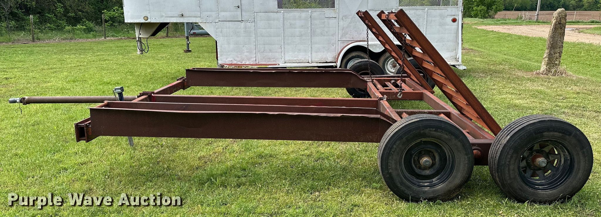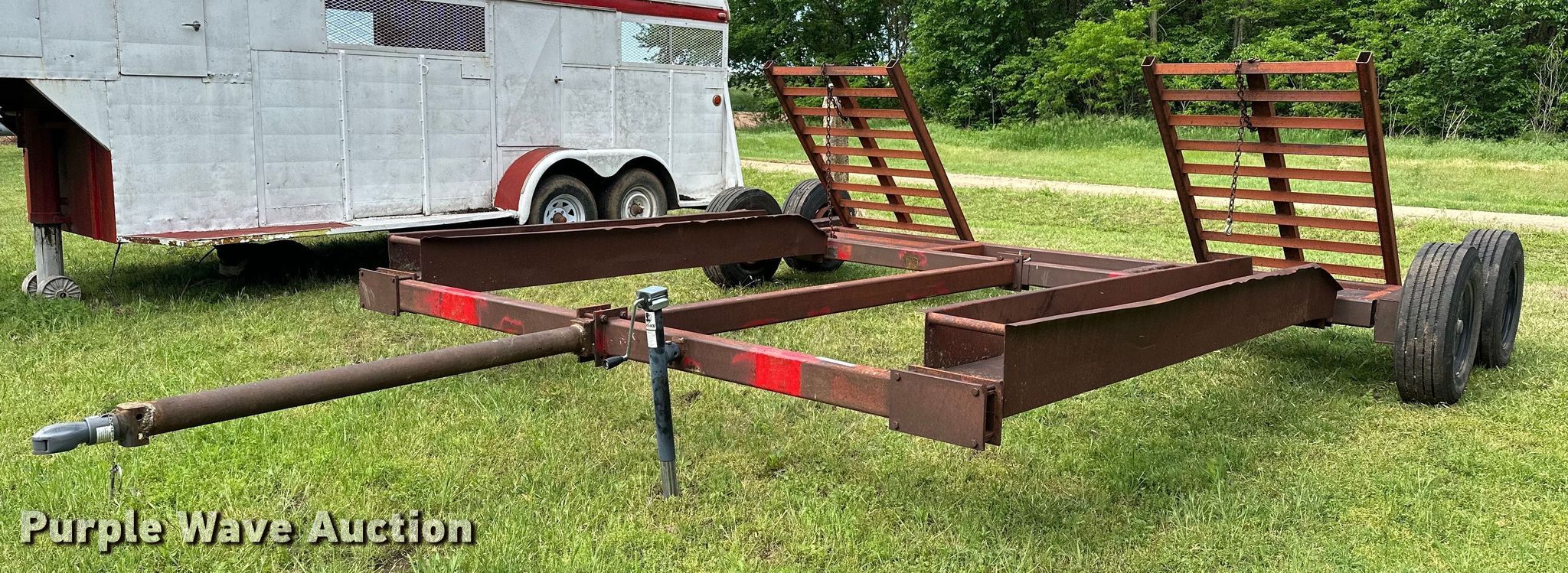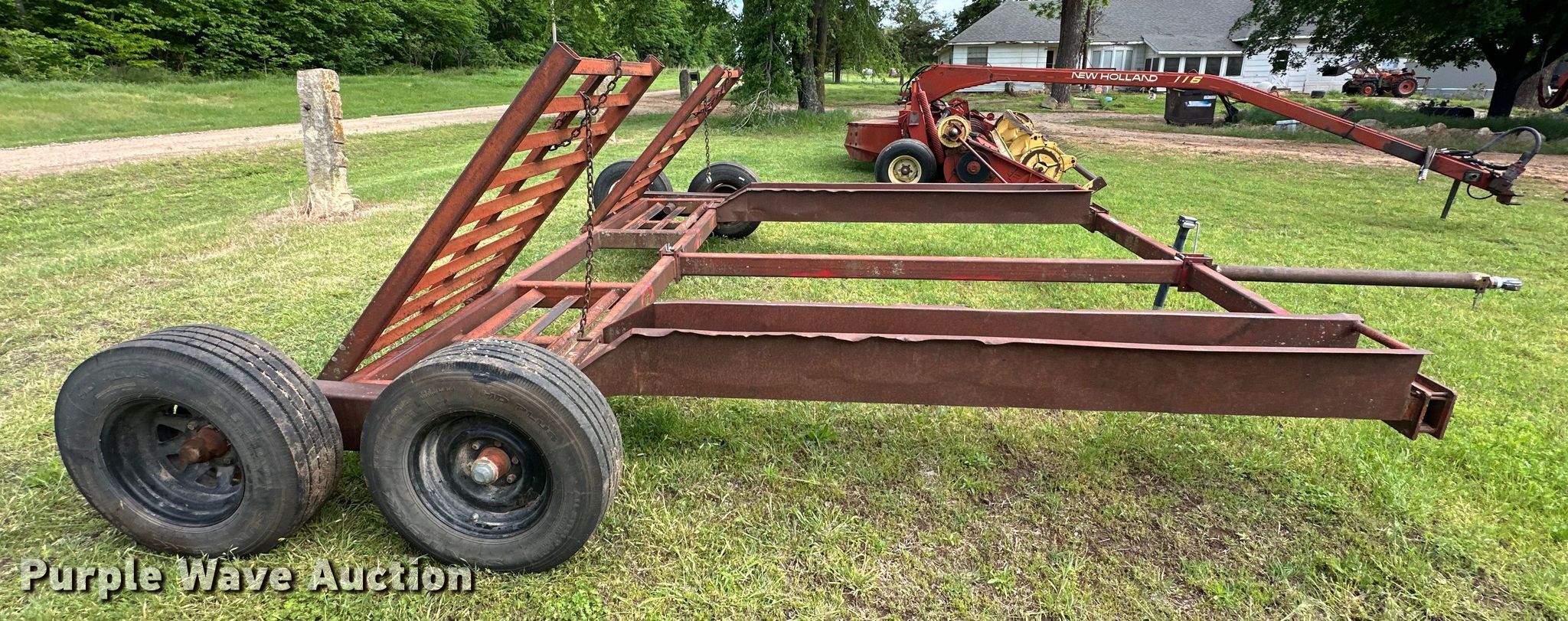 Purple Wave is selling a used Ag Equip. or Header Trailer in Oklahoma. This item is a Shop built windrower trailer with the following: Overall: 18' L x 168" W, Ramps: Manual, Length: 60"