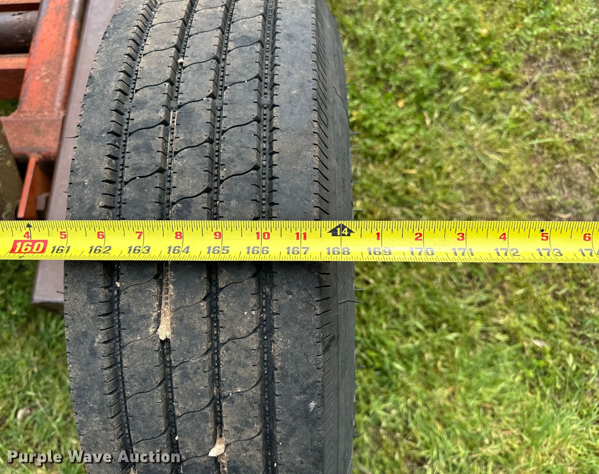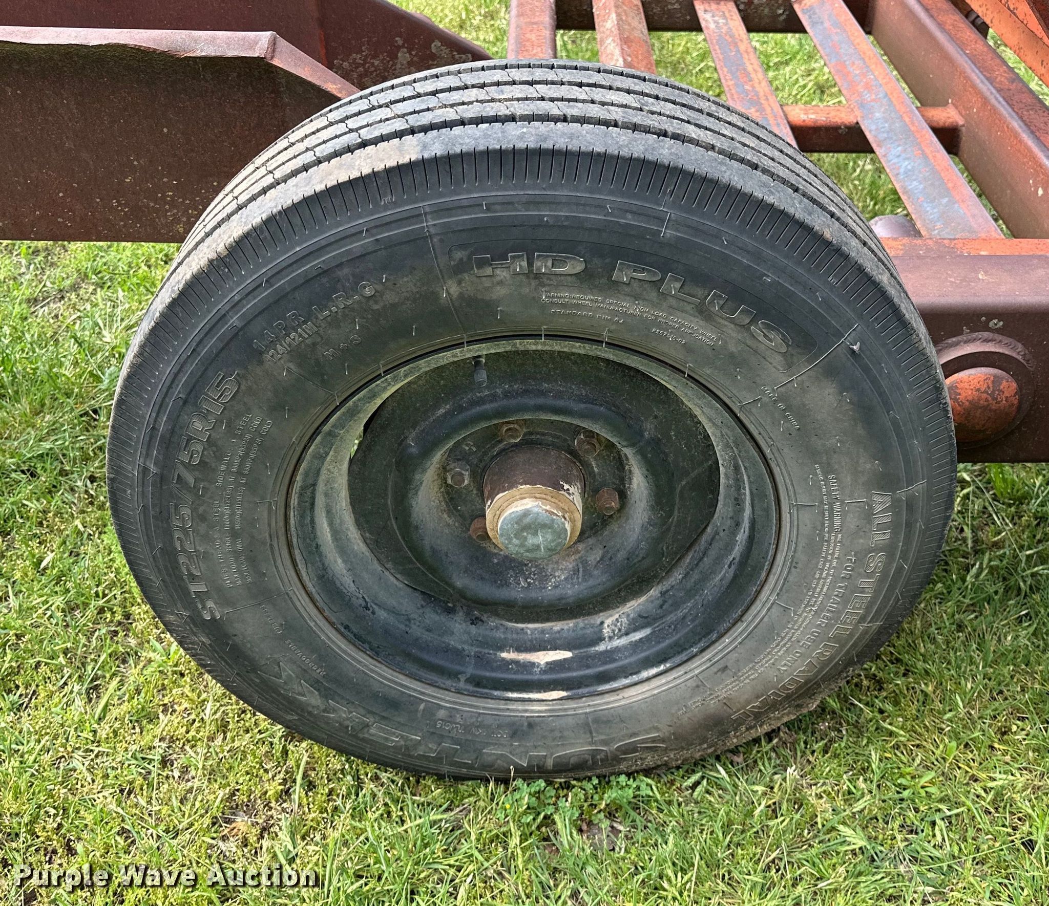 Shop built windrower trailer. Dimensions. Overall: 18' L x 168" W, Ramps: Manual Length: 60". Features Deck type: Steel. Chassis Ball hitch: 2 5/16", Landing gear: Single, Axles: Tandem. Tires Steel wheels, Size: ST225/75R15. Transfer of ownership documentation will be a bill of sale. Newkirk, OK 74647