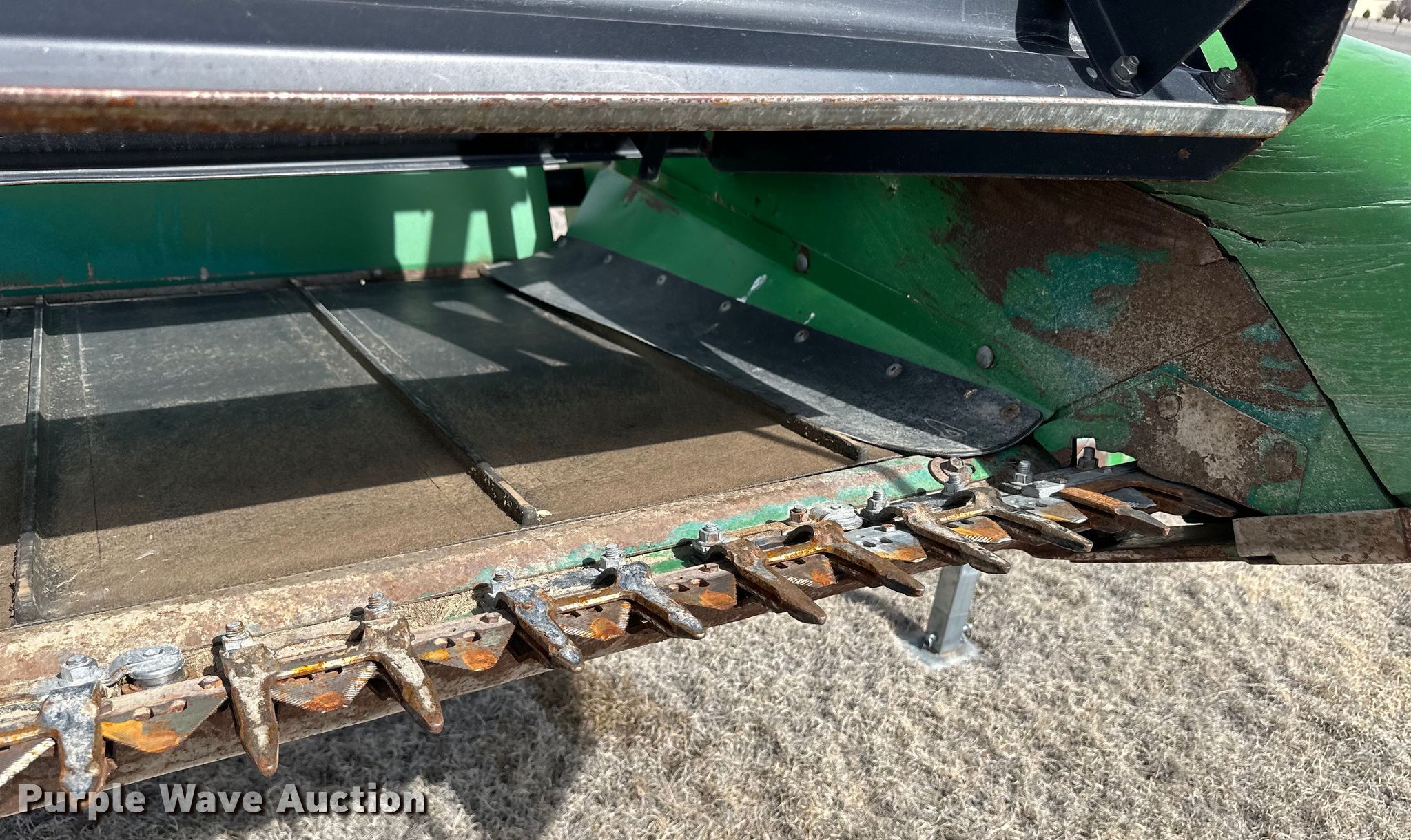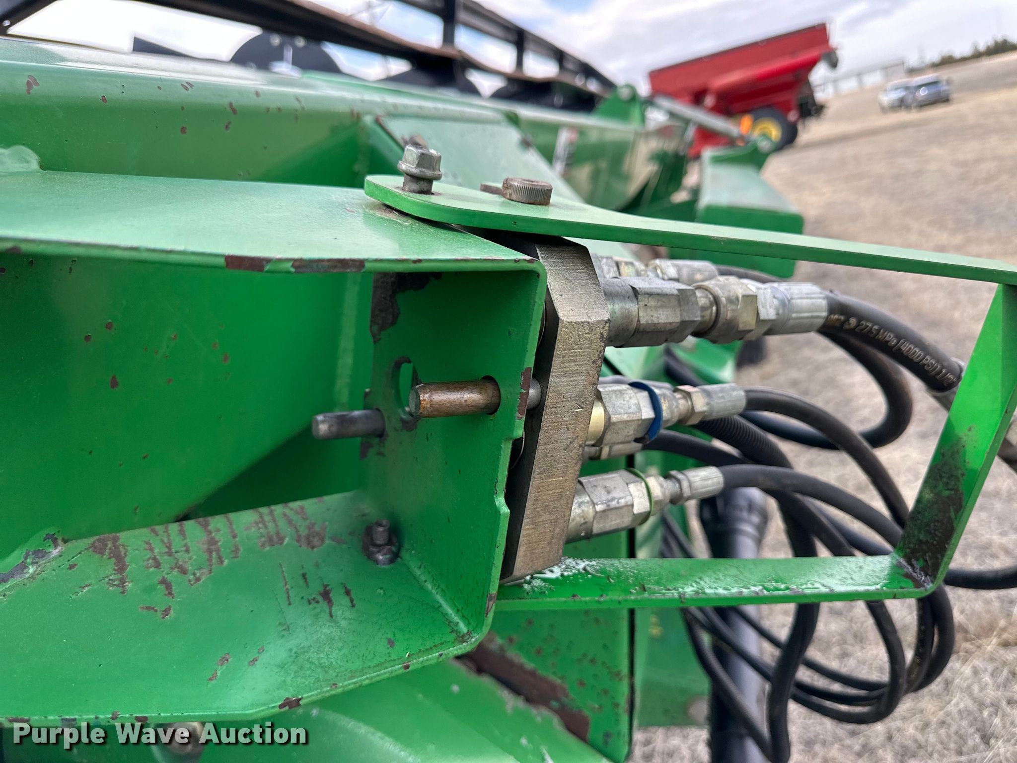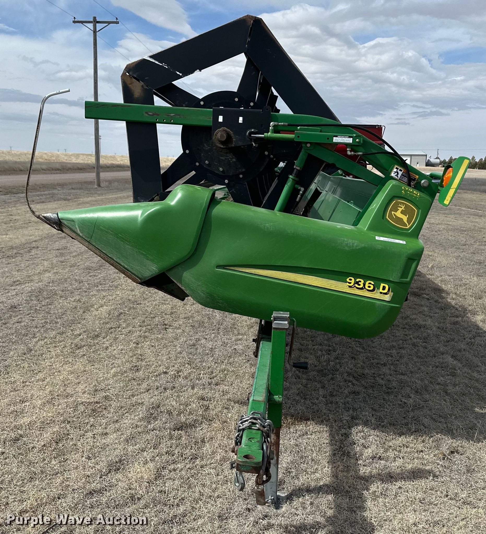 2005 John Deere 936D draper head. Serial: H00936D710965. Features Width: 36', Reel: Bat Hydraulic fore/aft, Hydraulic reel height control, Skid plates: Steel, Transport package, Single point coupler, Drivelines: Single. Tires Tire size: 9.5L-15. Tribune, KS 67879