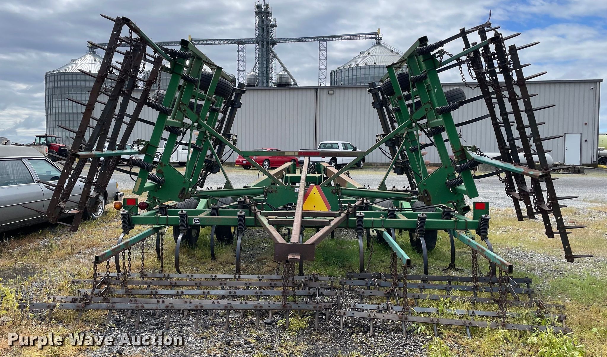 John Deere 726 mulch finisher. Overall width: 28', Serial: N00726X001704. Features Shanks: 36, Sweep width: 10.5", Blade diameter Front: 18", Spacing: 7", Operation Hydraulic lift, Hydraulic fold, Leveler: Hydraulic, Walking tandem axle, Attachments Spike tooth harrow Harrow bars: 5.. Tires Tire size: 11L-15SL. Continental Farms. 32045 S Route US 45. Peotone, IL 60468