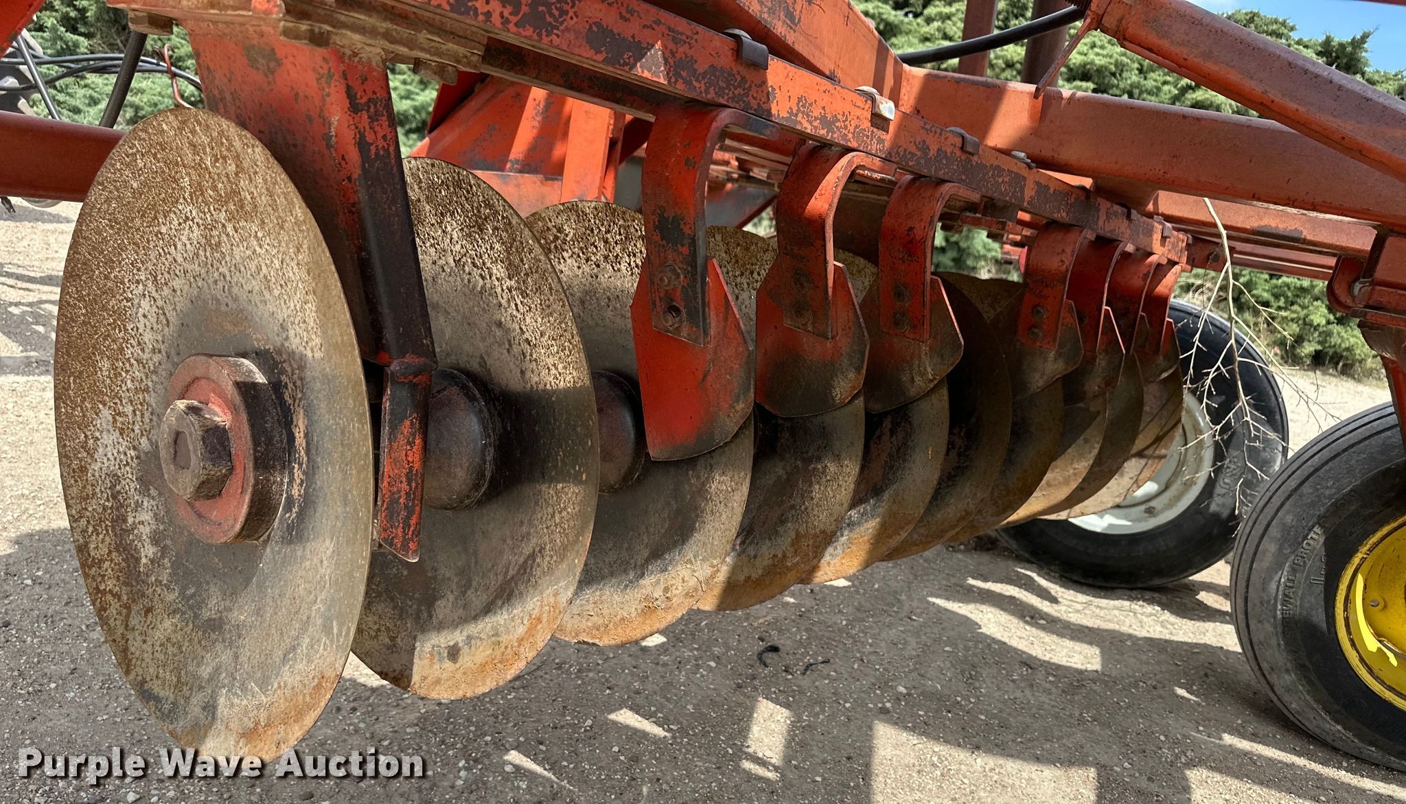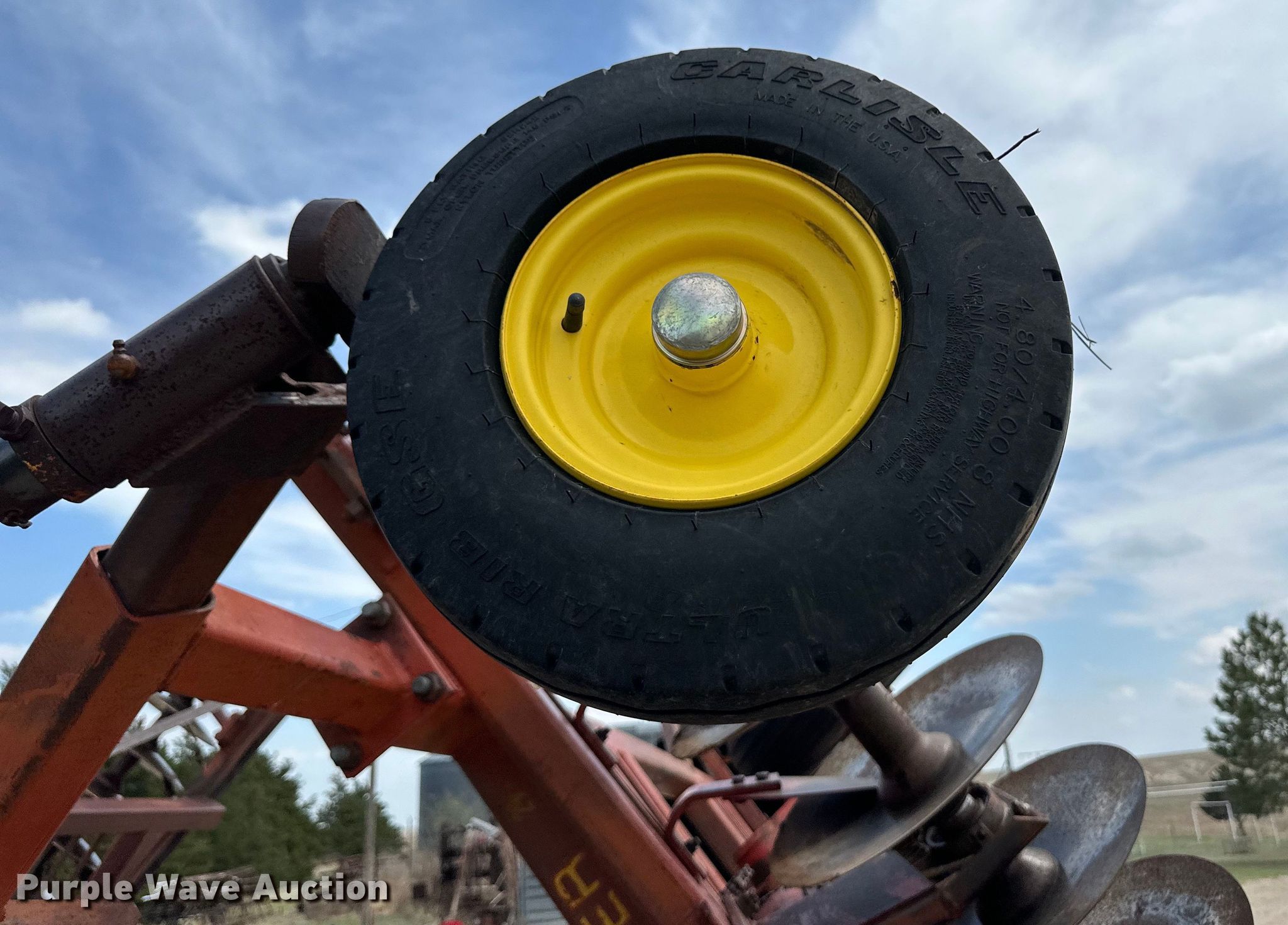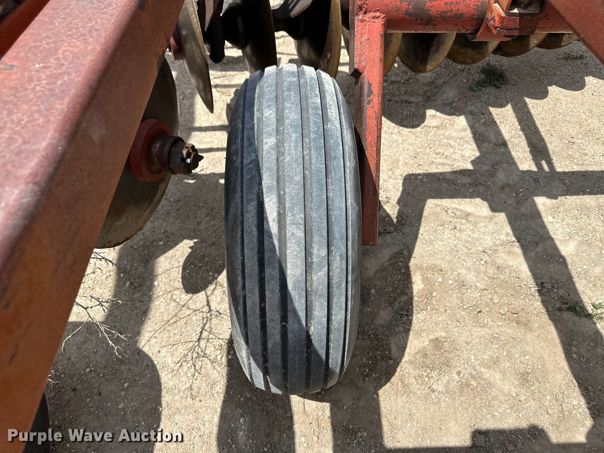 Sunflower double off-set disk. Overall width: 30'. Features Front blades Diameter: 20", Spacing: 8.5", Rear blades Diameter: 22", Spacing: 9.5", Disk scrapers, Operation Hydraulic lift, Hydraulic fold, Leveler: Manual, Attachments Rear hitch. Tires Tire size: 9.5L-15, Gauge wheels Size: 4.80/4.00-8. Max Prose. Beeler, KS 67518