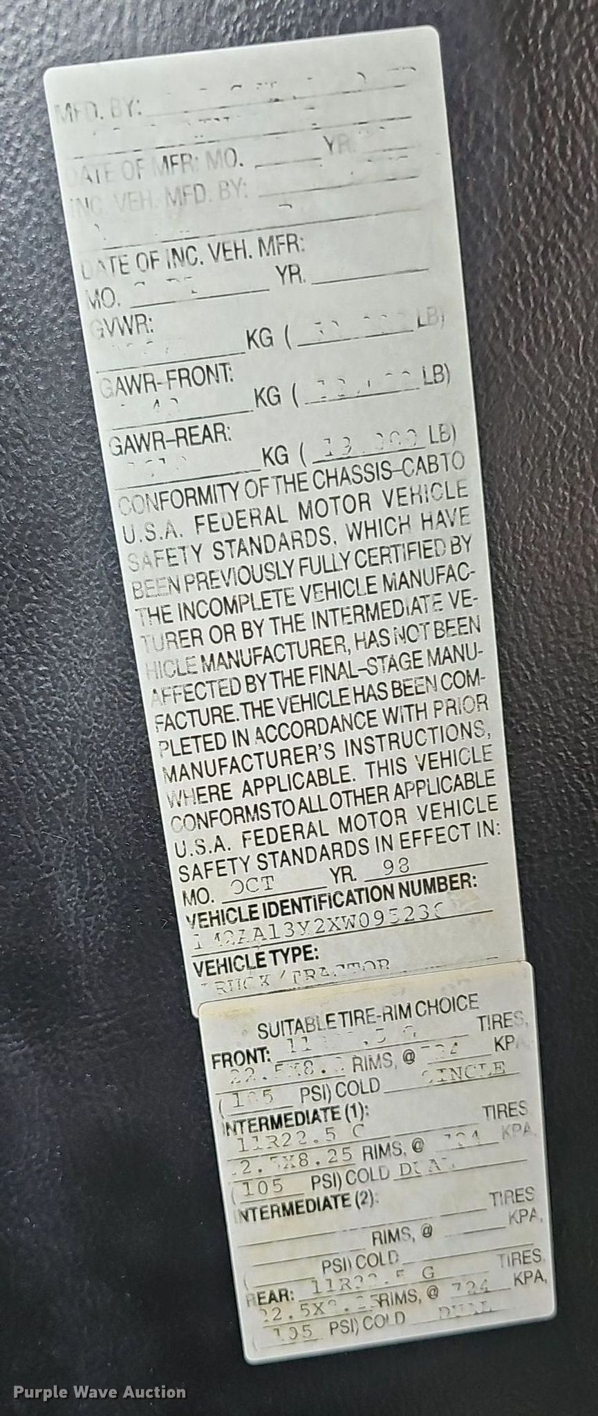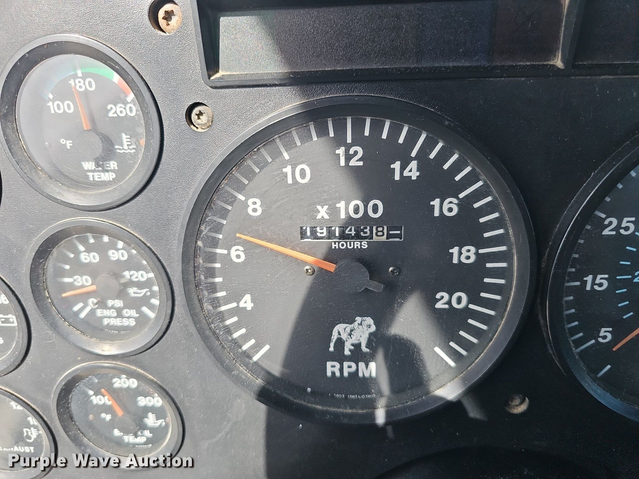 1999 Mack CH613 semi truck. Miles: 432,438 on odometer, Hours: 19,144 on meter, VIN: 1M2AA13Y2XW095236. Engine Mack, Displacement: 12.0L, Cylinders: 6, Fuel type: Diesel. Transmission Eaton Fuller, Manual, Speed: 10. Chassis Axles: Tandem, Differential lock: Inter-axle, Suspension: Air Dump valves, Brakes: Air, PTO, Wet kit. Interior AC, Heat, Heated mirrors, Cruise control, Air ride cab. Features Deck plate: Aluminum, Fifth wheel type: Sliding, Fuel tank: Dual. Tires Size: 11R22.5. Notes Non-operational wet kit. Iowa title. Title distribution may be delayed up to 14 days from verification of funds. Carroll Distributing & Construction Supply. Council Bluffs, IA 51501
