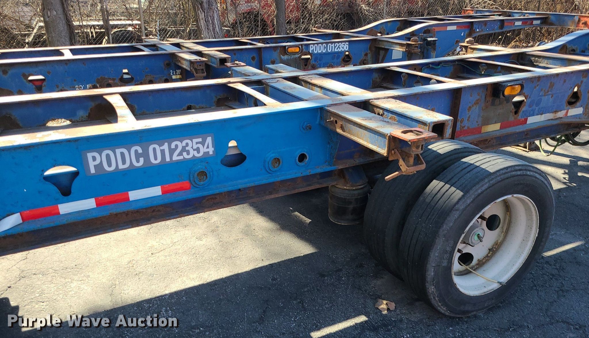 2006 Chassis King container trailer. VIN: 2V9CS42486S012354. Dimensions Overall: 31' L x 102" W, Extendable length. Chassis Landing gear: Dual, Suspension: Air, Brakes: Air, Axles: Tandem, GVWR: 68,000 lbs. Tires Size: 255/70R22.5. Texas title. Title distribution may be delayed up to 30 days from verification of funds. POD Logistics Inc.. 3101 Gardner Avenue. Kansas City, MO 64120