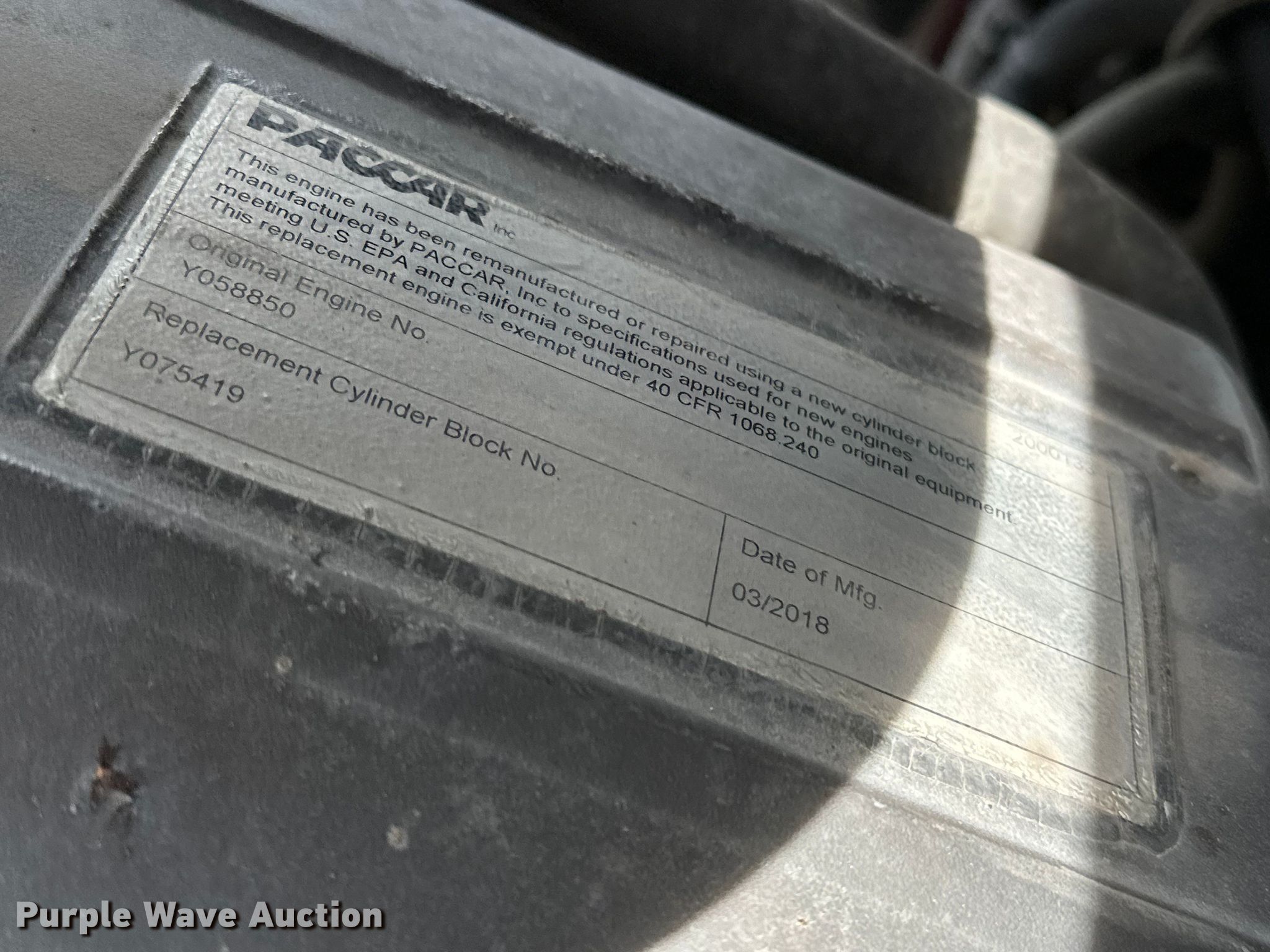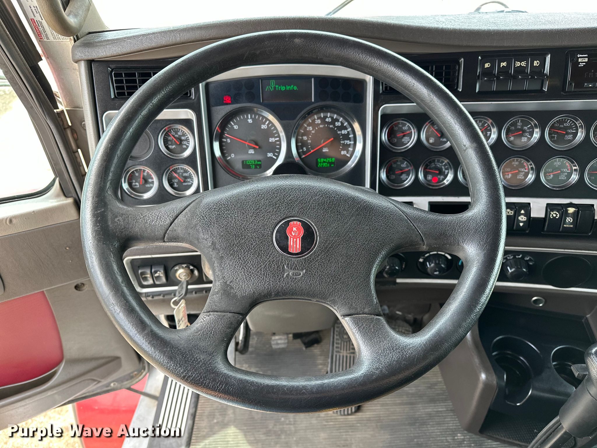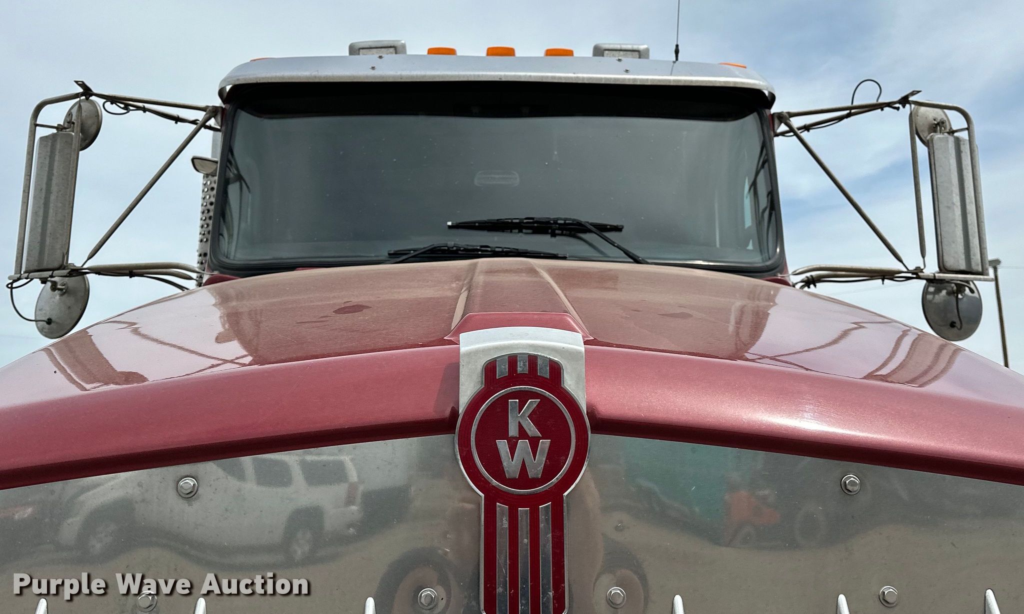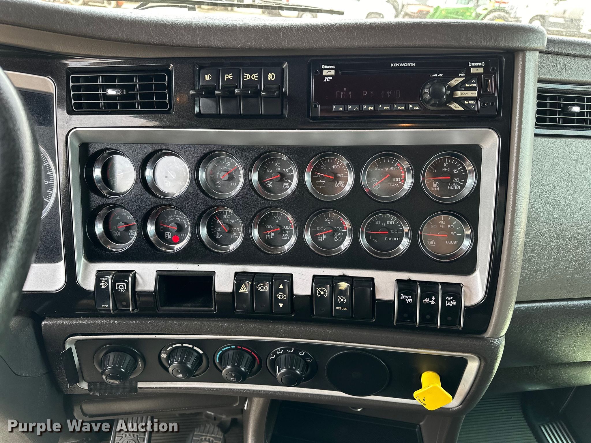 2015 Kenworth T800 tank truck. Miles: 584,268 on odometer, Hours: 11,009 on meter, VIN: 1NKDXP0X7FJ450958. Engine Paccar MX-13, Serial: Y058850, Displacement: 12.9L, Cylinders: 6, Fuel type: Diesel, HP: 455, kW: 340. Transmission Eaton Fuller, Manual, Speed: 10. Chassis Axles: Triple, Pusher axle, Differential lock: Inter-axle, Suspension: Air Dump valves, Brakes: Air, PTO, GVWR: 68,350 lbs. Interior AC, Heat, Heated mirrors, Power windows, Power locks, Cruise control. Features Bed / tank Brenner, Serial: D2112, Capacity: 4,000 gallons, 28' L x 84" W, Top fill, Rear drain: 4". Tires Front: 315/80R22.5, Rear: 11R22.5, Lift axle: 275/80R22.5. Notes Windshield chipped or cracked. Oklahoma title. Title distribution may be delayed up to 14 days from verification of funds. Collinsville, OK 74021