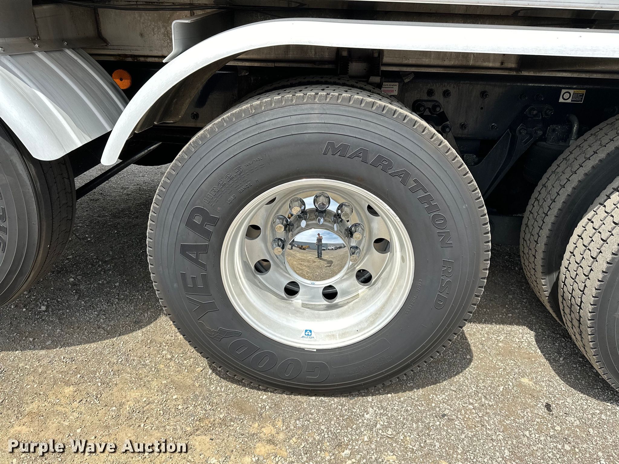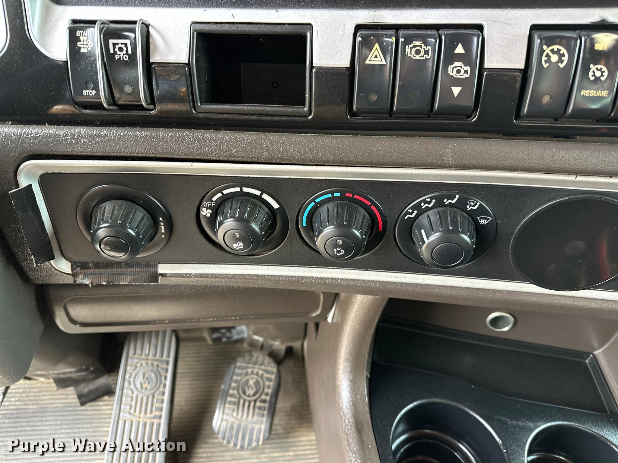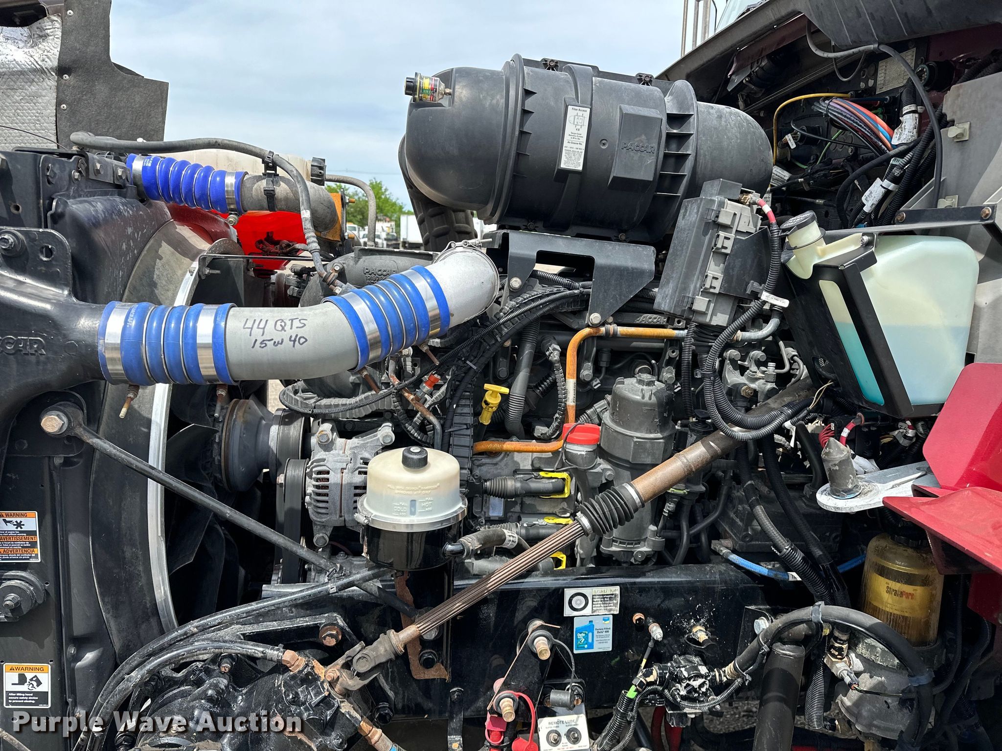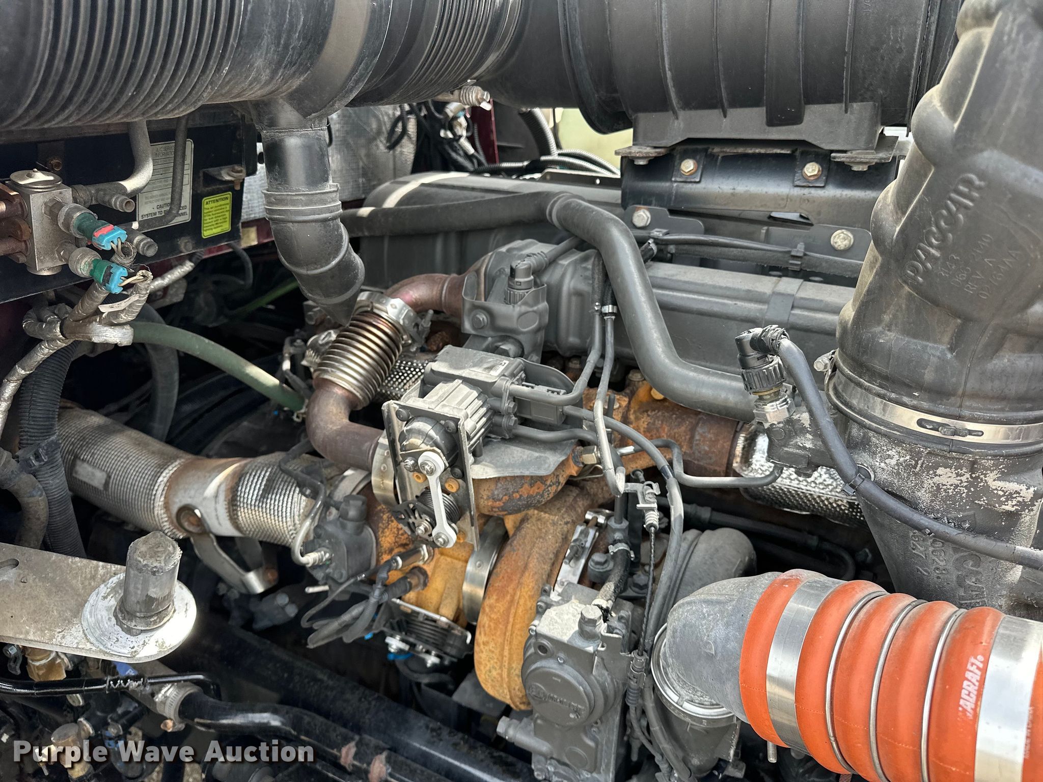2015 Kenworth T800 tank truck. Miles: 584,268 on odometer, Hours: 11,009 on meter, VIN: 1NKDXP0X7FJ450958. Engine Paccar MX-13, Serial: Y058850, Displacement: 12.9L, Cylinders: 6, Fuel type: Diesel, HP: 455, kW: 340. Transmission Eaton Fuller, Manual, Speed: 10. Chassis Axles: Triple, Pusher axle, Differential lock: Inter-axle, Suspension: Air Dump valves, Brakes: Air, PTO, GVWR: 68,350 lbs. Interior AC, Heat, Heated mirrors, Power windows, Power locks, Cruise control. Features Bed / tank Brenner, Serial: D2112, Capacity: 4,000 gallons, 28' L x 84" W, Top fill, Rear drain: 4". Tires Front: 315/80R22.5, Rear: 11R22.5, Lift axle: 275/80R22.5. Notes Windshield chipped or cracked. Oklahoma title. Title distribution may be delayed up to 14 days from verification of funds. Collinsville, OK 74021