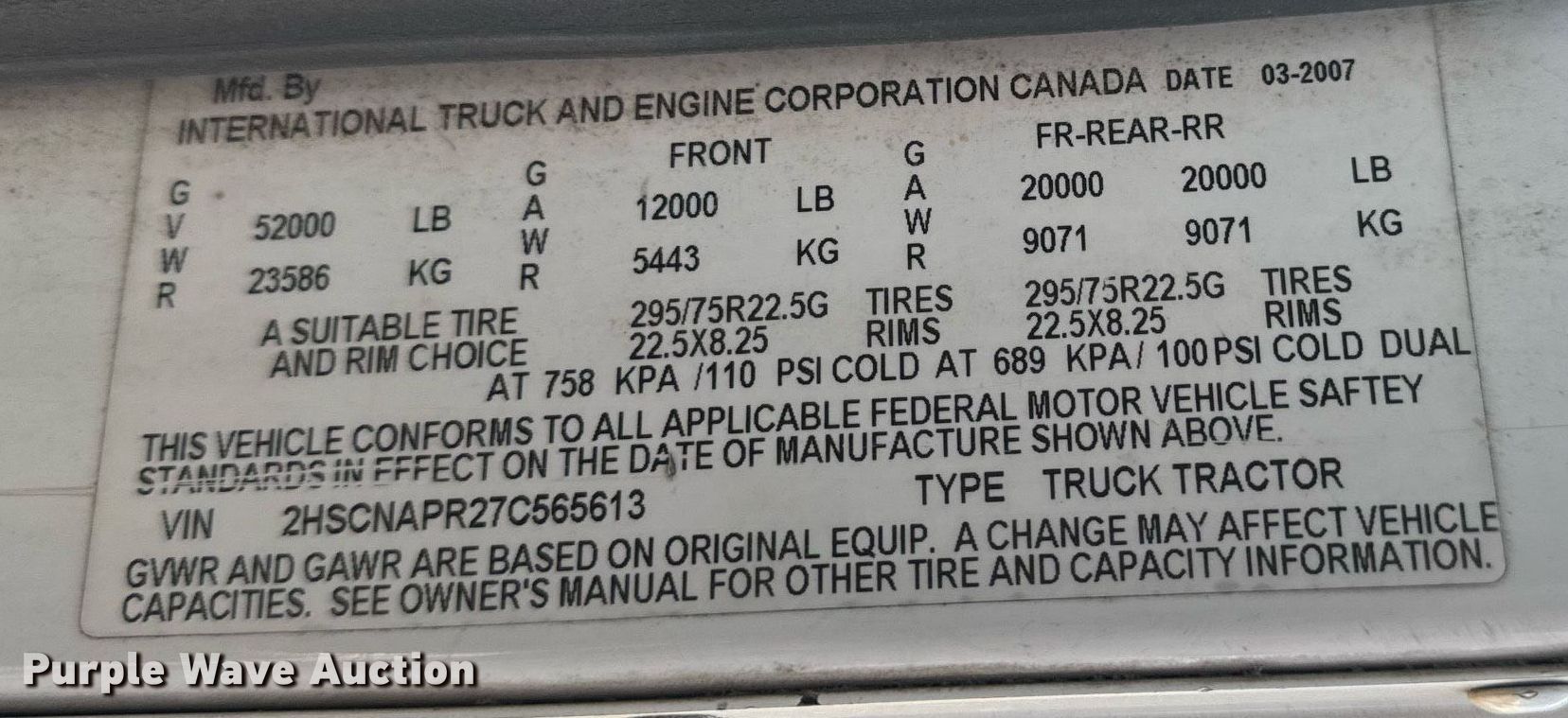 Purple Wave is selling a used Truck Tractor in Missouri. This item is a 2007 International 9400i semi truck with the following: Miles: 20,411 on odometer, Actual miles: Unknown, VIN: 2HSCNAPR27C565613