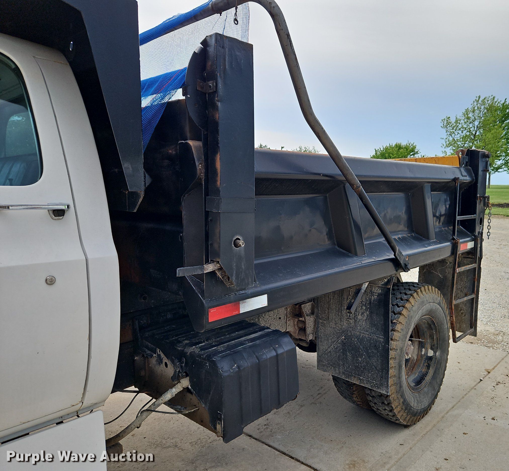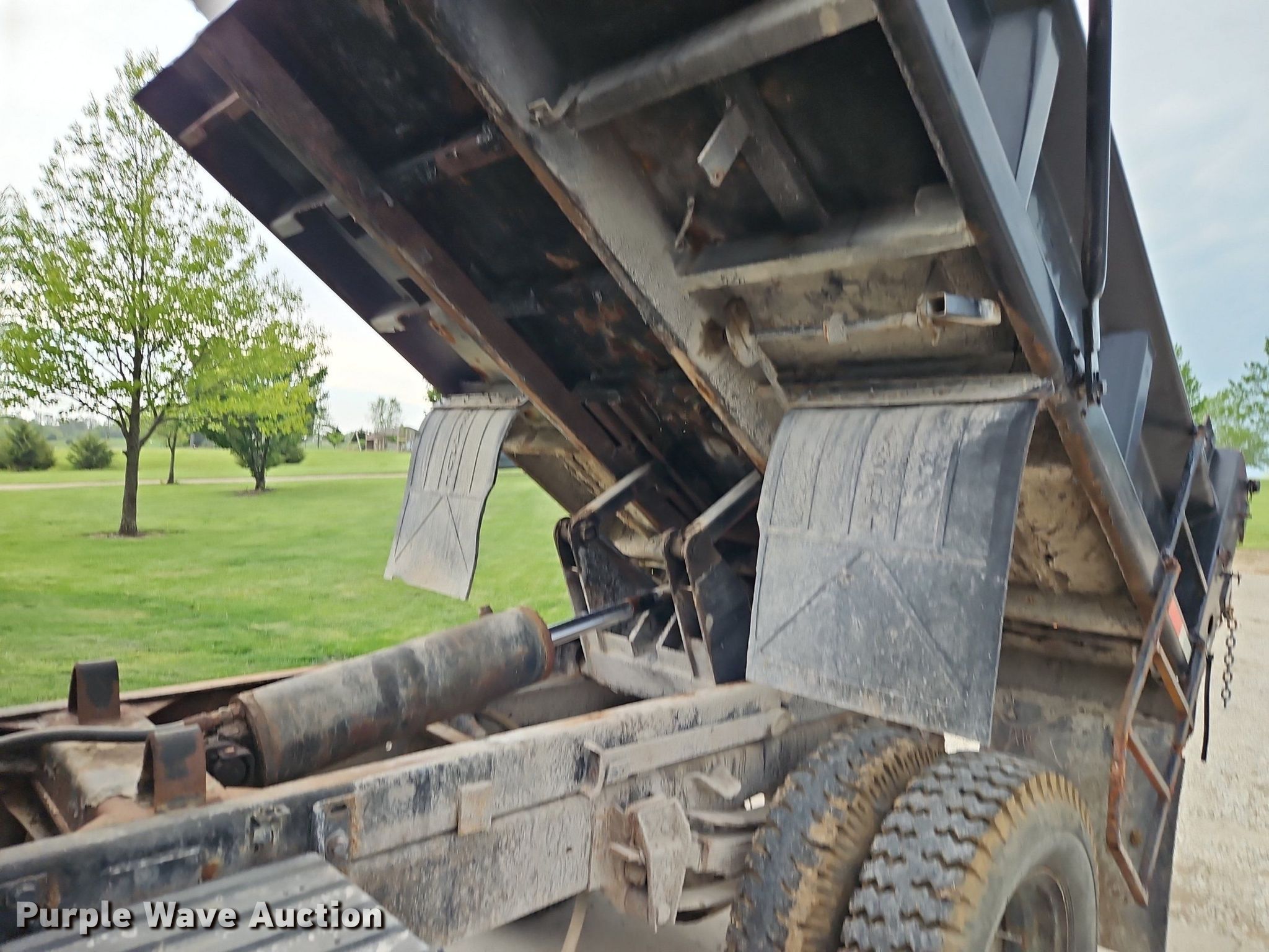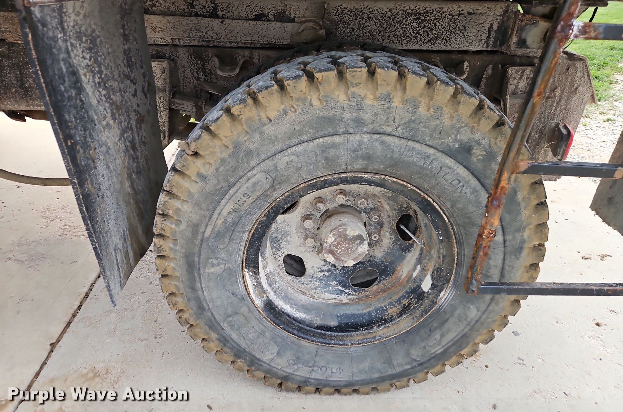 1974 Chevrolet C60 dump truck. Miles: 32,370 on odometer, VIN: CCE624V117755. Engine Cylinders: 8, Fuel type: Gas. Transmission Manual, Speed: 4, plus 2. Chassis Axles: Single. Interior Heat. Features Dump bed Capacity: 5 cu.yd., 11' L x 8' W, Side height: 27", Bed type: Steel, Roll tarp, Ram: Single, End gate: Manual, Electric over hydraulic Battery needs replaced.. Tires Front: 11R22.5, Rear: 10.00-20. Kansas antique title. Title distribution may be delayed up to 14 days from verification of funds. Todd Weekes. Wellsville, KS 66092