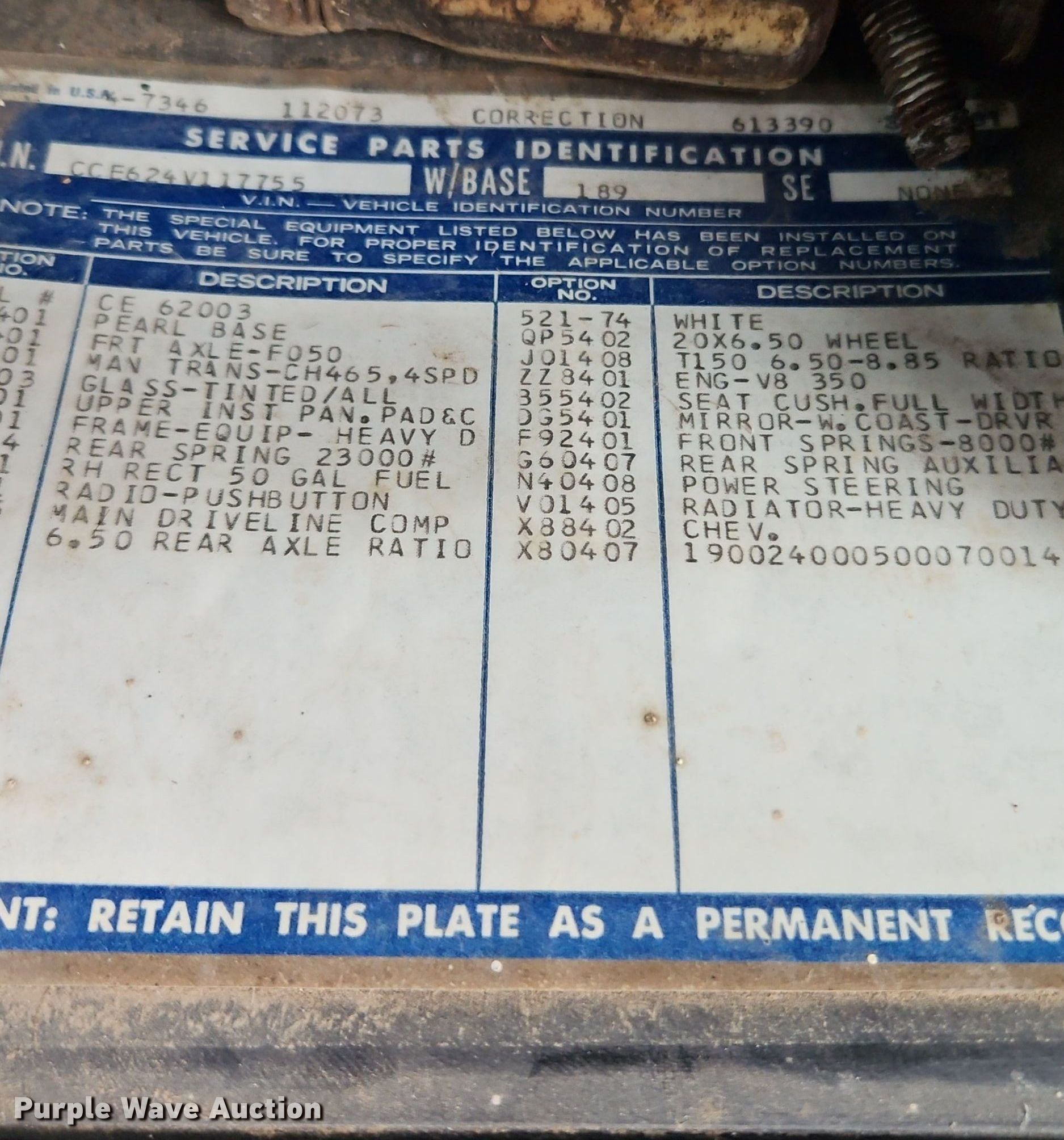 Purple Wave is selling a used Construction Dump Truck in Kansas. This item is a 1974 Chevrolet C60 dump truck with the following: Miles: 32,370 on odometer, VIN: CCE624V117755