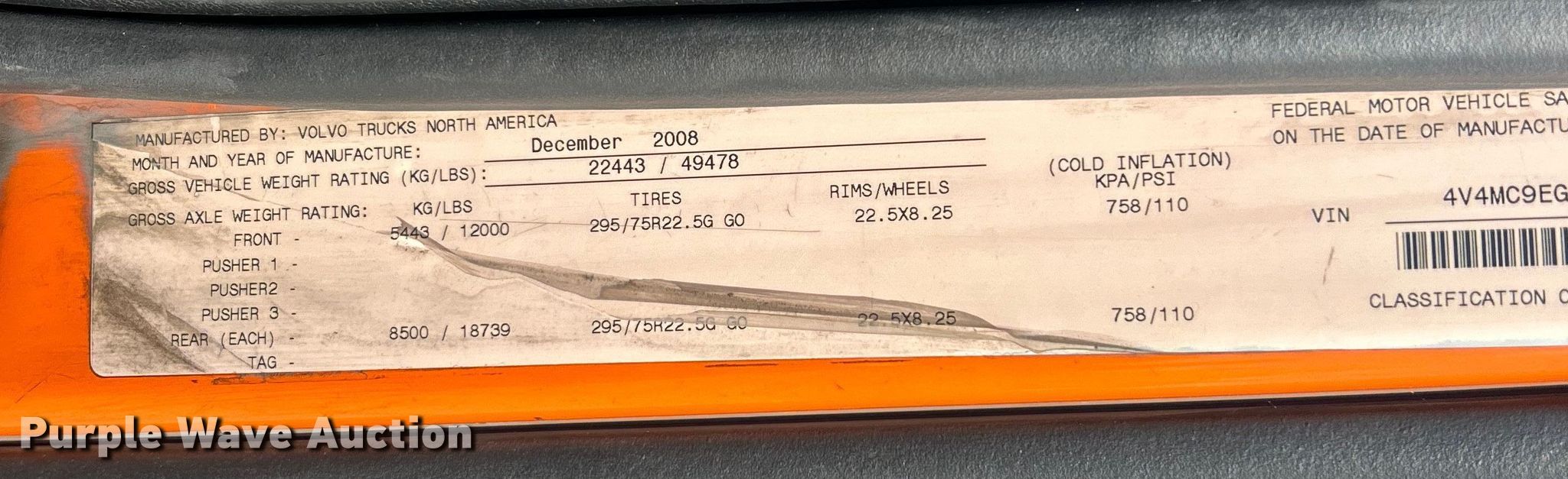 Purple Wave is selling a used Truck Tractor in Missouri. This item is a 2009 Volvo VNM semi truck with the following: Miles: 1,208,170 on odometer, VIN: 4V4MC9EG79N283830