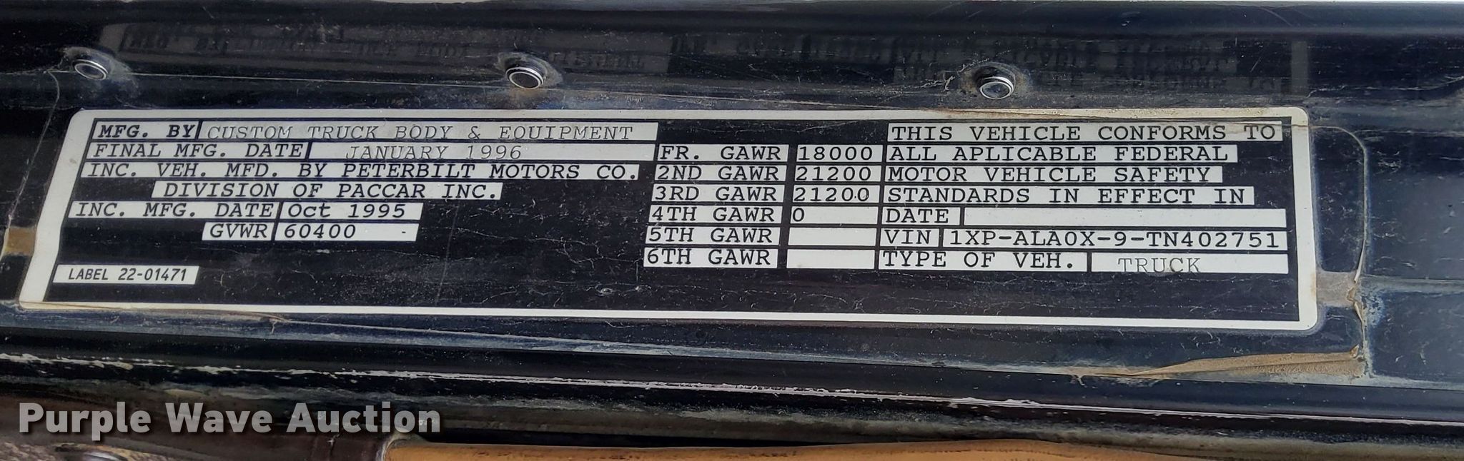 Purple Wave is selling a used Construction Dump Truck in Minnesota. This item is a 1996 Peterbilt 357 dump truck with the following: Miles: 519,318 on odometer, VIN: 1XPALA0X9TN402751