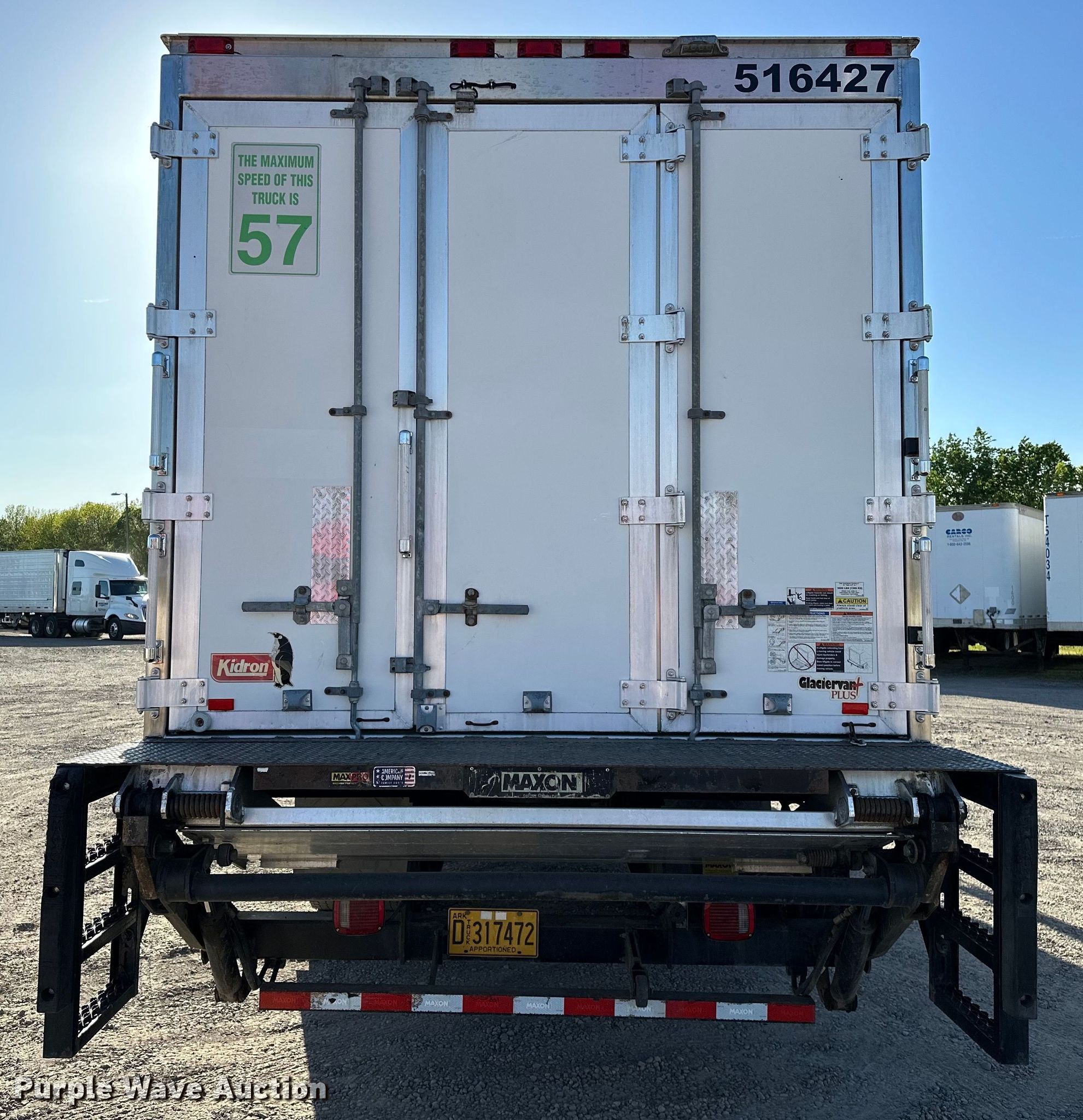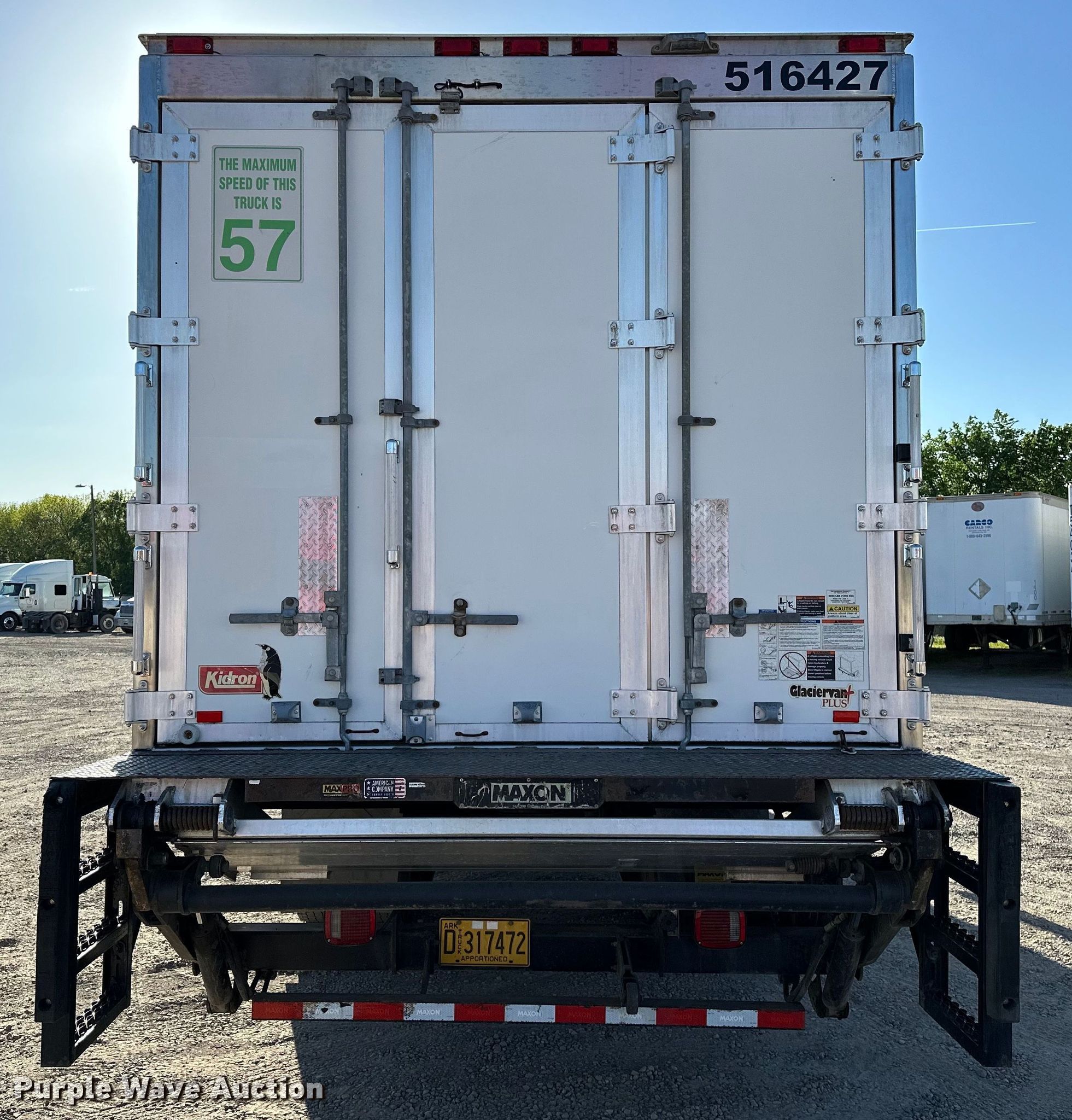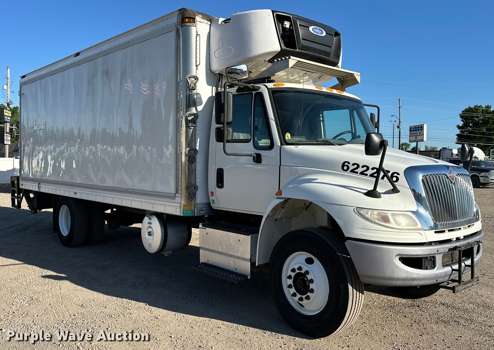 2016 International 4300 refrigerated truck. Miles: 340,608 on odometer, Hours: 8,174 on meter, VIN: 1HTMMMMN8GH447550. Engine Cummins ISB6.7, Serial: 73913687, Displacement: 6.7L, Cylinders: 6, Fuel type: Diesel, HP: 250. Transmission Automatic. Chassis Axles: Single, Suspension: Spring, Brakes: Air, GVWR: 33,000 lbs, Wheelbase: 236". Interior AC, Heat, Heated mirrors, Cruise control. Features Box bed VT Hackney 220VP, Serial: 220VPIASEW96SP, 22.5' L x 102" W x 102" H, Floor: Aluminum, End gate lift Maxon, Capacity: 3,000 lbs, Refrigeration unit Carrier, Hours: 7,699.. Tires Size: 11R22.5. Notes Windshield chipped or cracked. Arkansas title. Title distribution may be delayed up to 14 days from verification of funds. Carco Rentals. Fort Smith, AR 72904