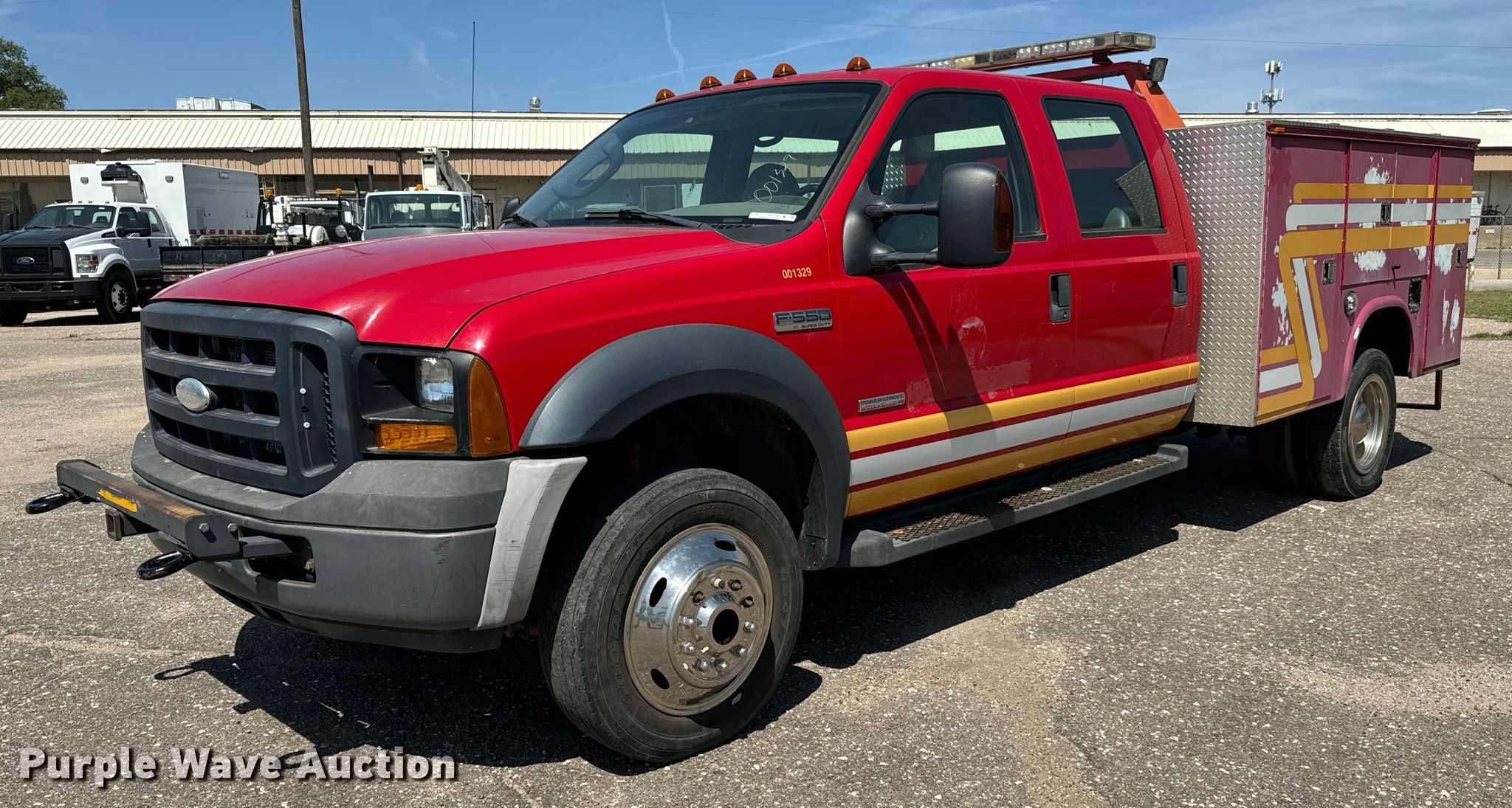 Purple Wave is selling a used Fire Truck or Emergency Vehicle in Kansas. This item is a 2007 Ford F550 Super Duty XL brush fire truck with the following: Miles: 143,805 on odometer, VIN: 1FDAW57P87EB00861, Unit #: 001329