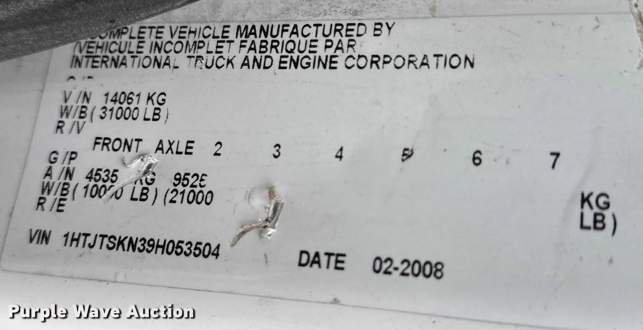 2009 International DuraStar 4300 chipper truck. Miles: 87,163 on odometer, Hours: 13,606 on meter, VIN: 1HTJTSKN39H053504, Unit #: 001772. Engine International MaxxForce 7, Displacement: 6.4L, Cylinders: 8, Fuel type: Diesel. Transmission Automatic. Chassis Axles: Single, Suspension: Spring, Brakes: Air, PTO, GVWR: 31,000 lbs. Interior AC, Heat, Cruise control, Brake controller. Features Chip bed Schodorf, 16' L x 94" W, Side height: 72", Bed type: Steel, Ram: Single, End gate: Manual. Tires Size: 11R22.5. Notes Windshield chipped or cracked, Batteries missing, Collision damage, Drive shaft disconnected , Unit must be towed or hauled, Unknown operating condition. Kansas title. City of Wichita Central Maintenance Facility - Open inspection May 29 & June 1. 1801 South McLean Boulevard. Wichita, KS 67213