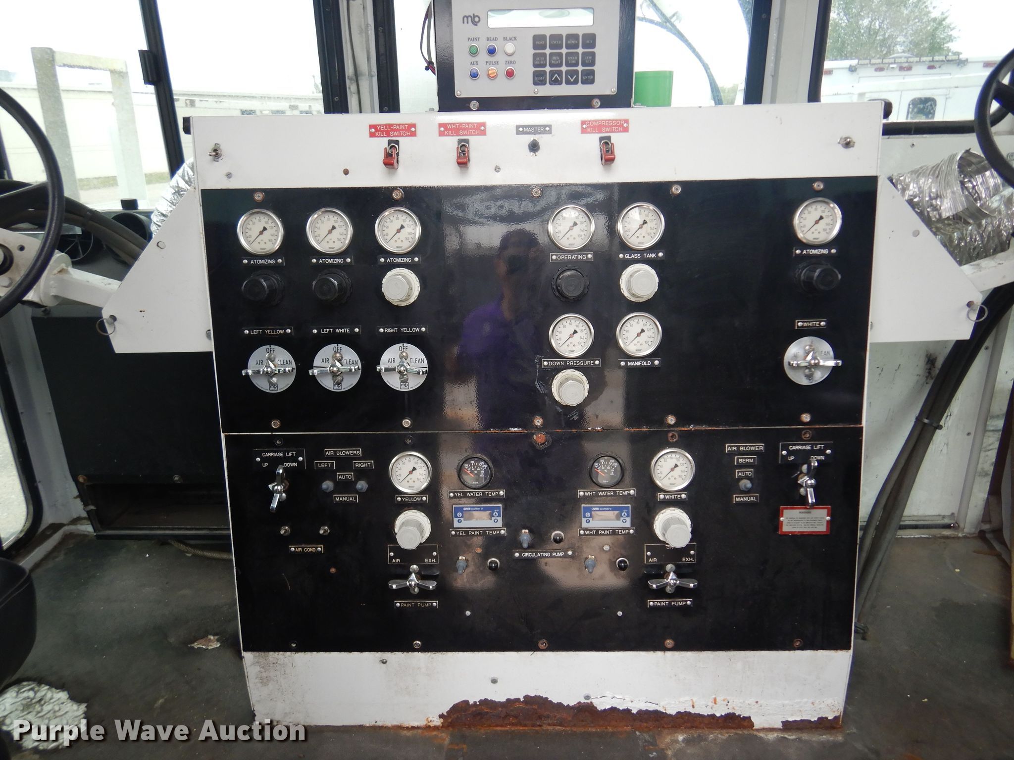 2005 GMC T8500 paint striper truck. Miles: 72,471 on odometer, VIN: 1GDP8F1375F525480. Engine Displacement: 7.8 L, Cylinders: 6, Fuel type: Diesel. Transmission Automatic. Chassis Axles: Single, Suspension: Spring, Brakes: Air. Interior AC, Heat. Features Flatbed Boss Industries 10078, Serial: XR-23277-0105, 18' 6" L x 96" W, Trafcon arrow board 96" W x 48" H, Spray system John Deere four cylinder diesel engine, (4) paint guns (3) Kamber 38, Kamber 90, Glass tank capacity: Approx. 4,000 lbs, Split paint tank capacity: Approx. 220 gallons, Wilden T8 pumps. Tires Size: 11R22.5. Kansas title. City of Wichita Central Maintenance Facility - Open inspection May 29 & June 1. 1801 South McLean Boulevard. Wichita, KS 67213