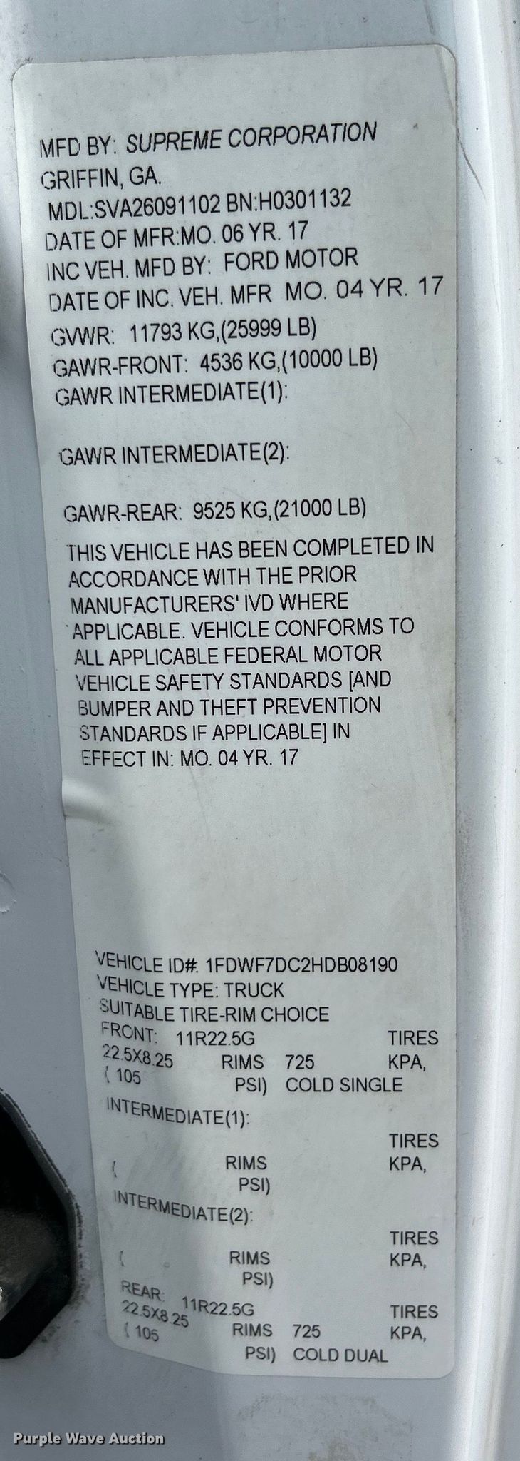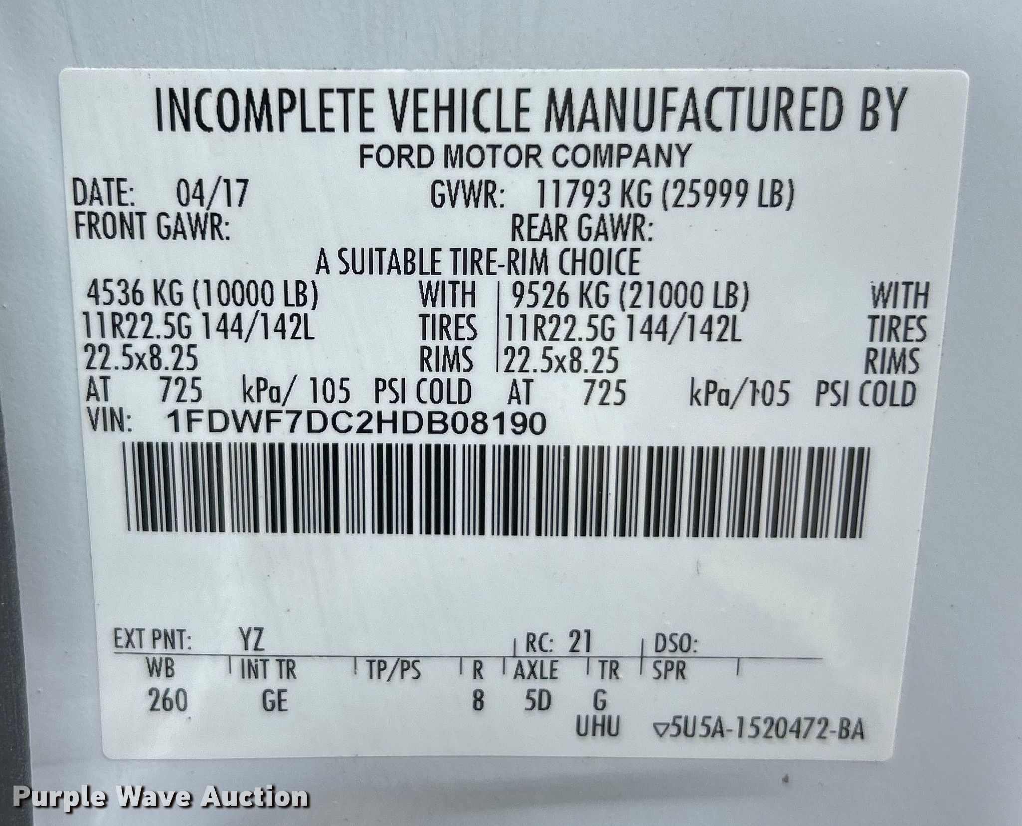 - VIN: 1FDWF7DC2HDB08190