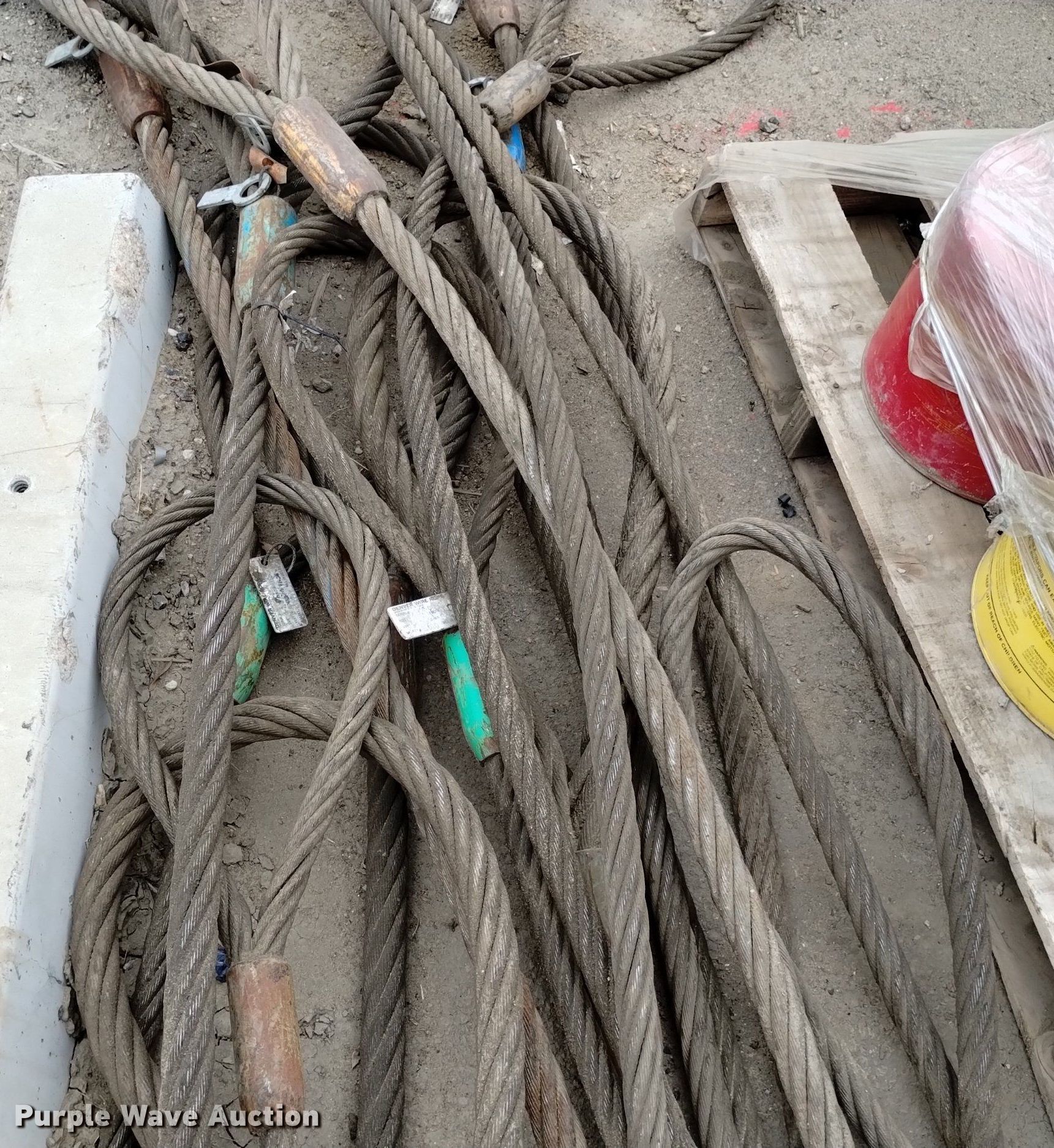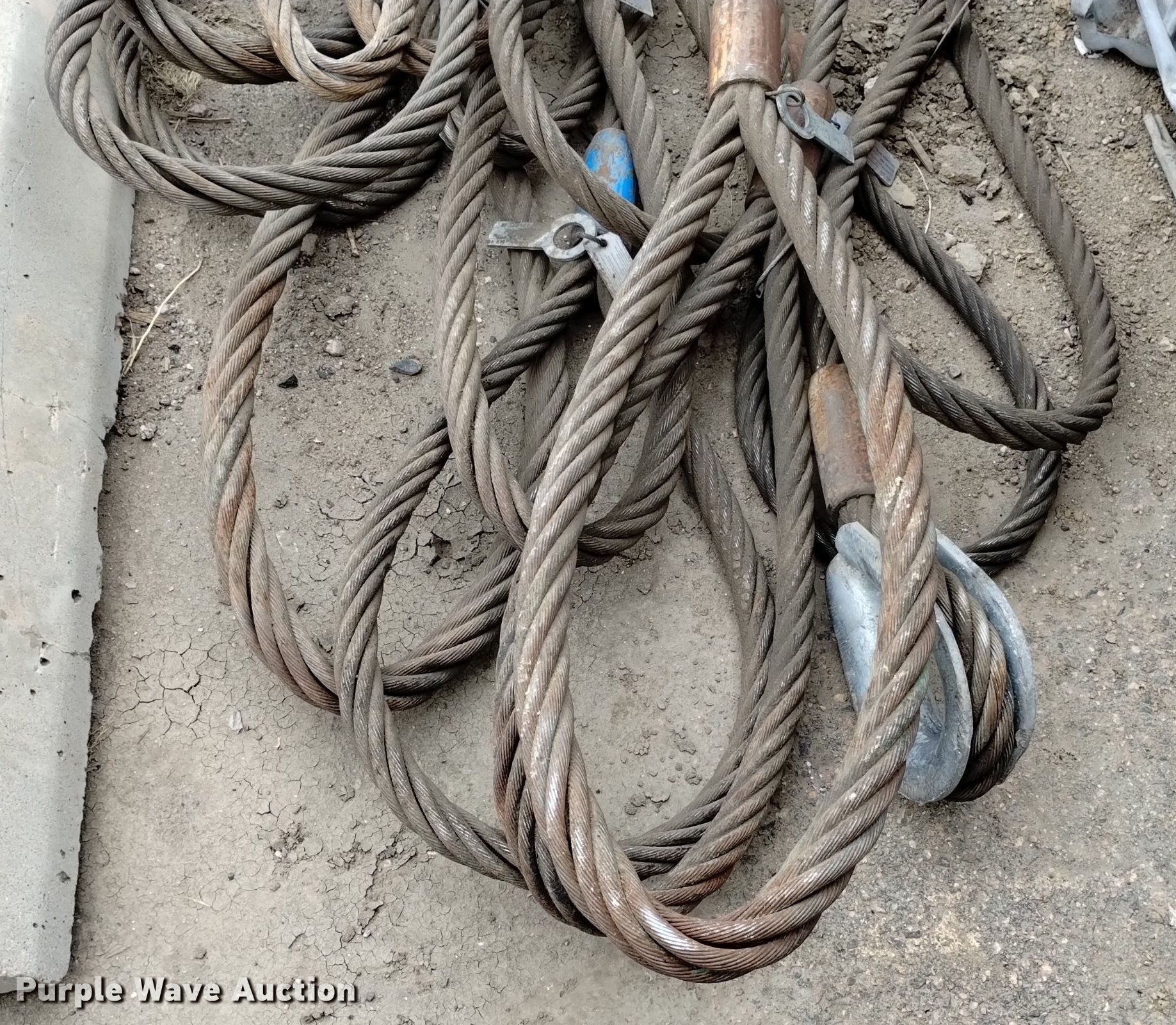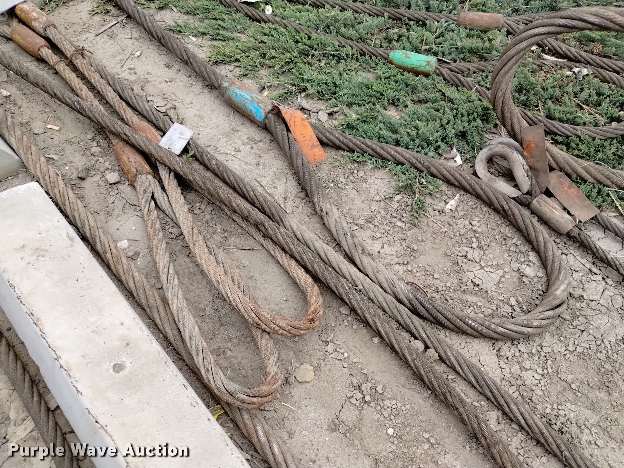 Purple Wave is selling a used Lifting and Rigging in Colorado. This item is a (17) eye and eye wire rigging slings with the following: Diameters, (2) 7/8", (5) 1 1/18", (6) 1 1/4", 1 3/8", (3) 1 1/2"