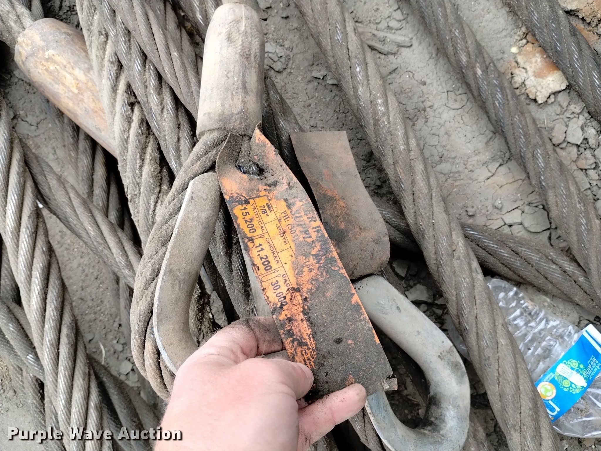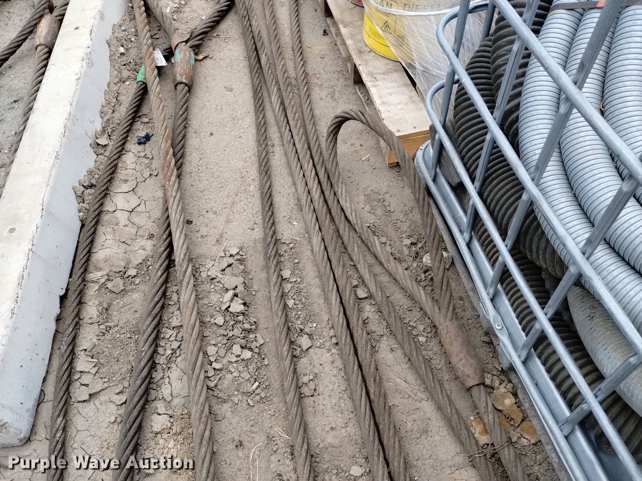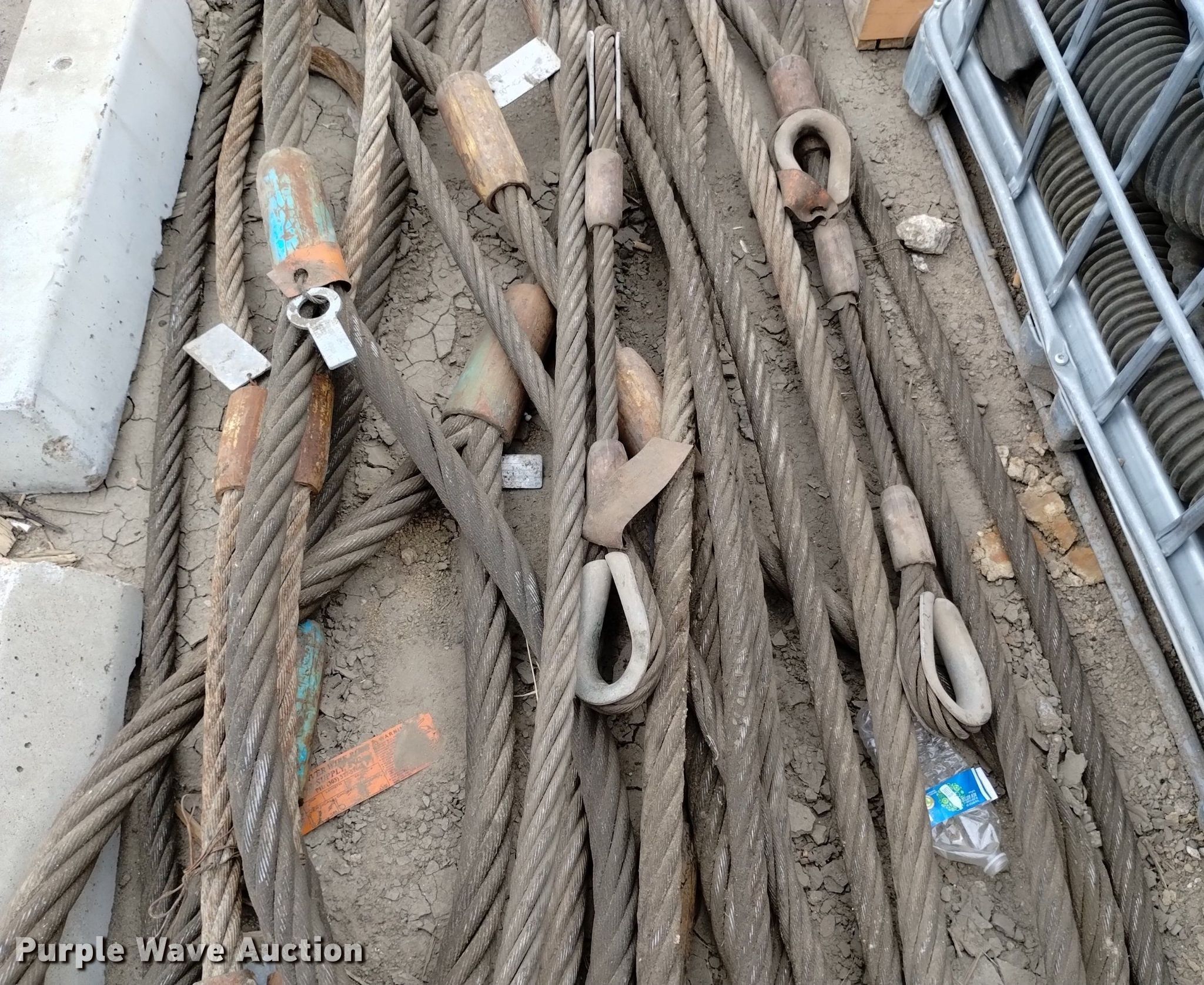 Purple Wave is selling a used Lifting and Rigging in Colorado. This item is a (17) eye and eye wire rigging slings with the following: Diameters, (2) 7/8", (5) 1 1/18", (6) 1 1/4", 1 3/8", (3) 1 1/2"