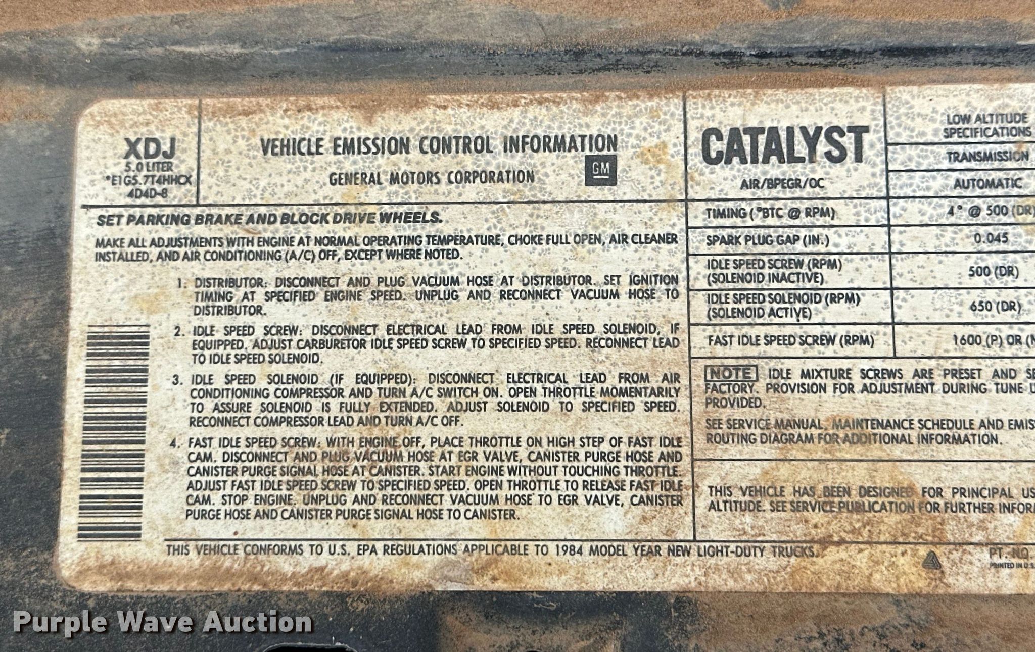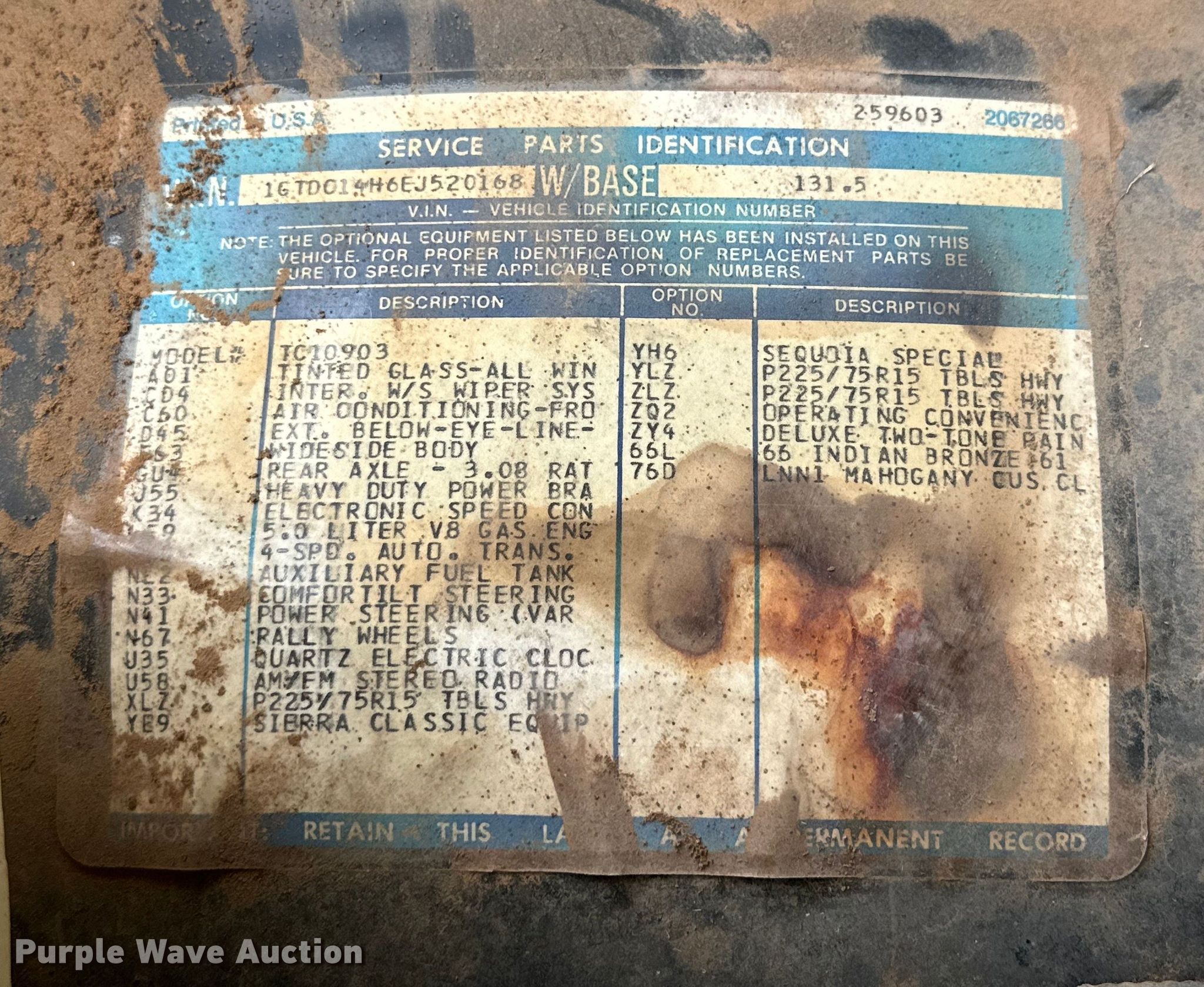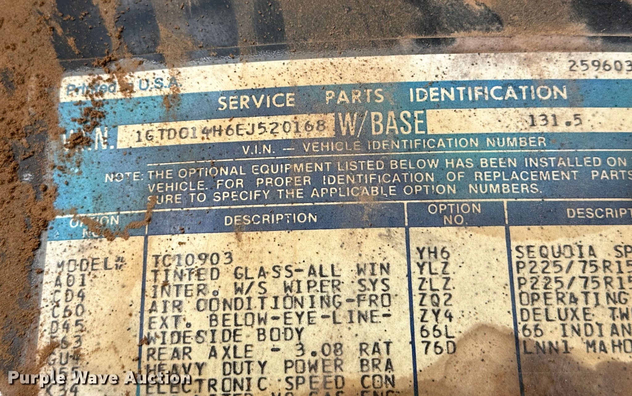Purple Wave is selling a used 1/2 Ton Pickup or Van in Texas. This item is a 1984 GMC Sierra C1500 pickup truck with the following: Miles: 109,020 on odometer, VIN: 1GTDC14H6EJ520168