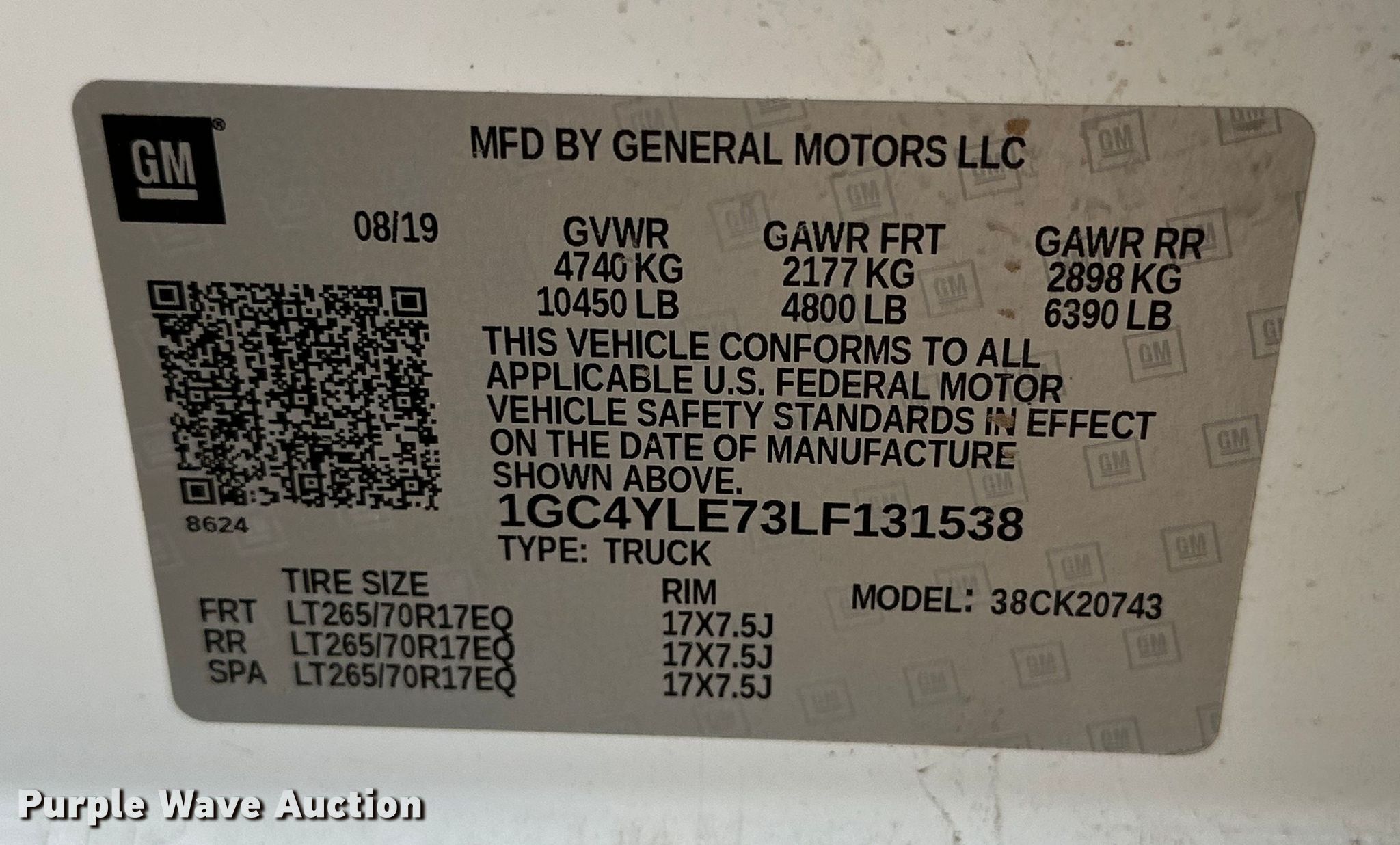 - VIN: 1GC4YLE73LF131538