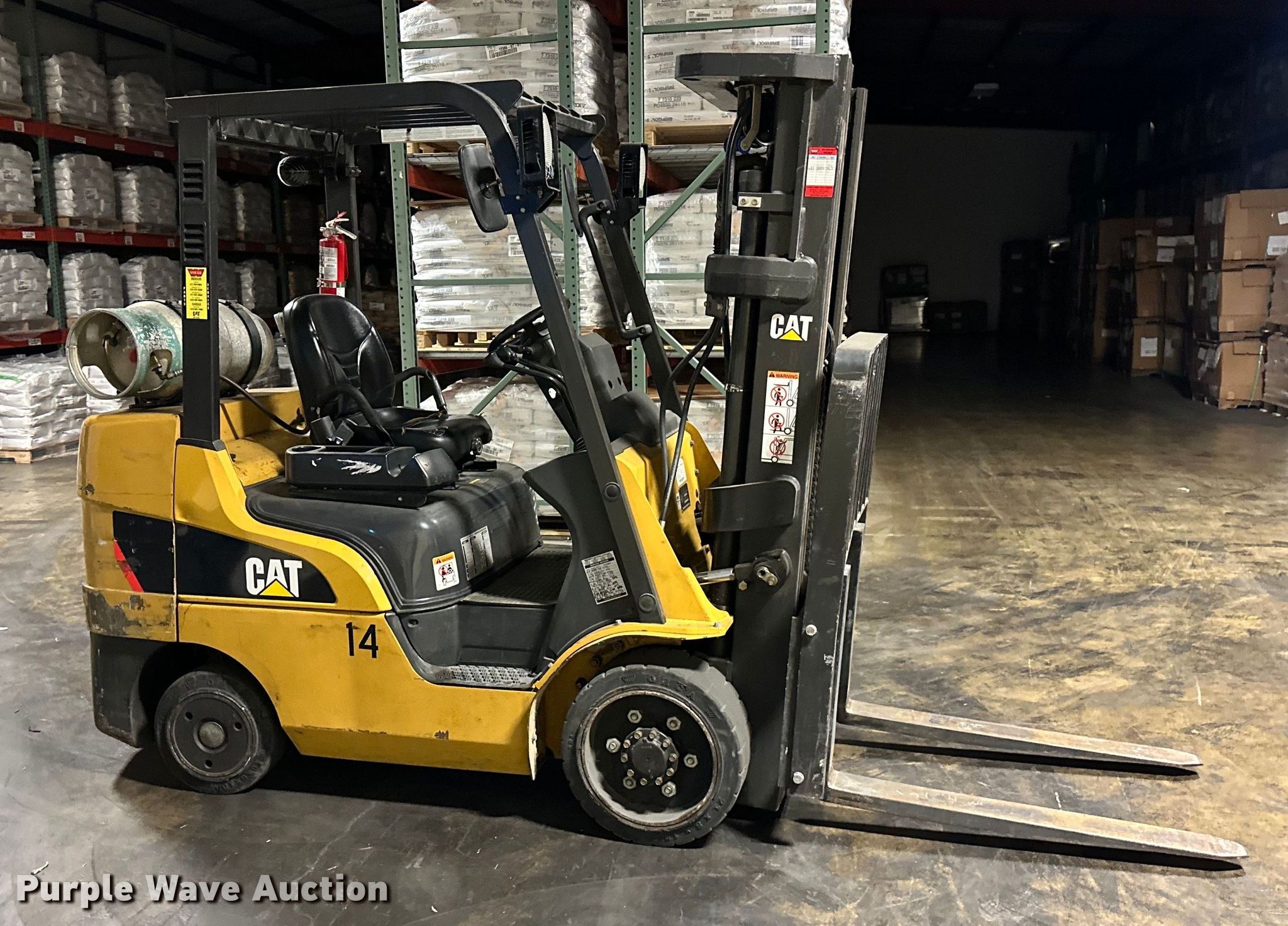 Purple Wave is selling a used Warehouse Forklift in Kansas. This item is a 2008 Caterpillar C6000-LP forklift with the following: Hours: 10,504 on meter, Serial: AT83F20427
