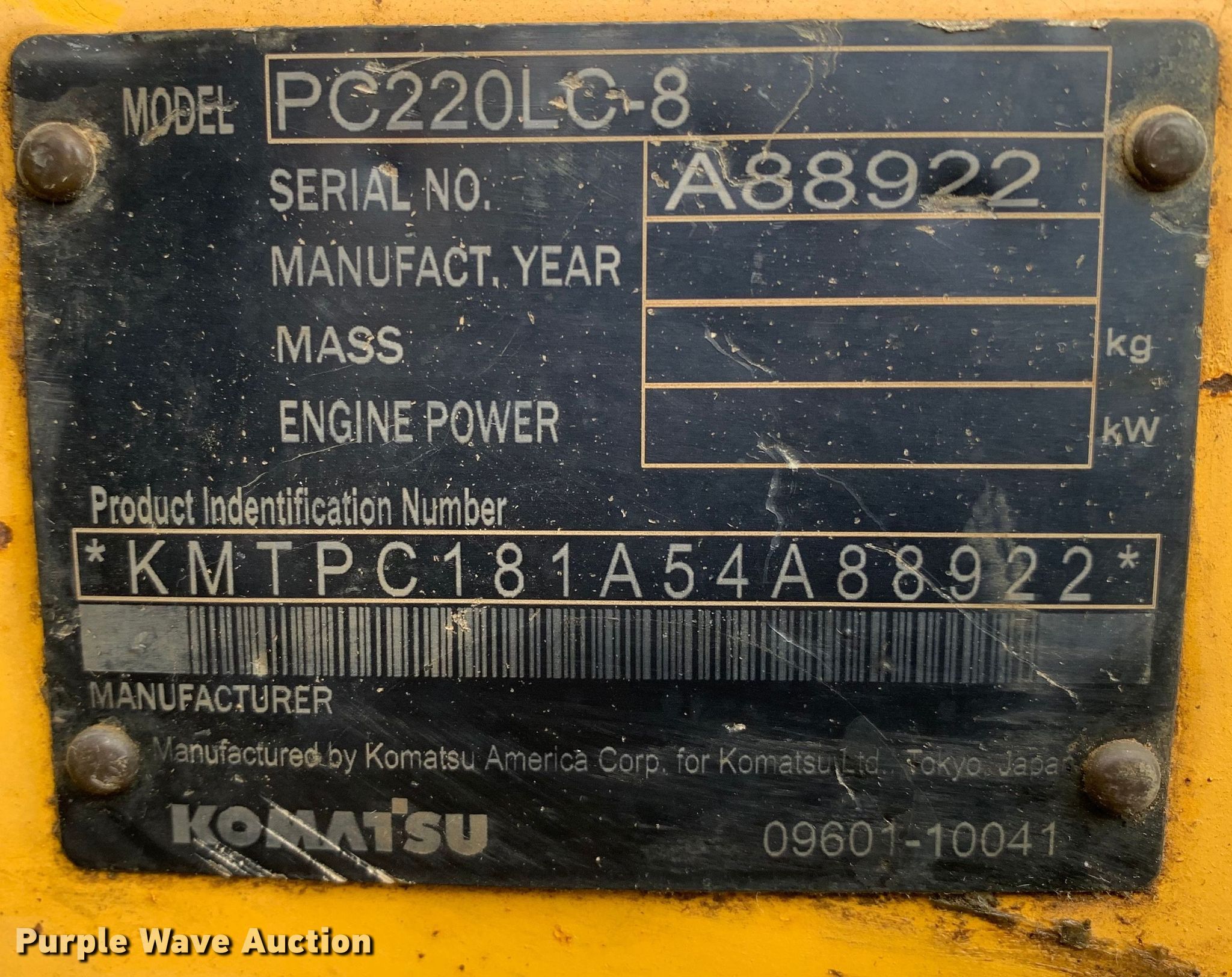 Purple Wave is selling a used Hydraulic Excavator in Arkansas. This item is a 2010 Komatsu PC220LC excavator with the following: Hours: 8,412 on meter, Serial: A88922, Unit #: 40-101