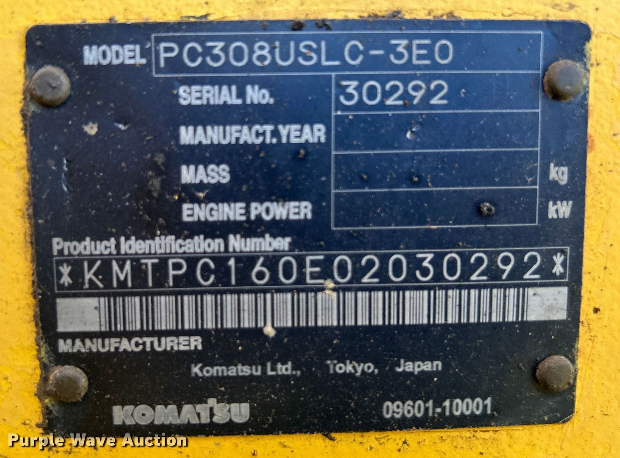 Purple Wave is selling a used Hydraulic Excavator in Oklahoma. This item is a 2011 Komatsu PC308USLC excavator with the following: Hours: 2,741 on meter, Serial: 30292, Unit #: 40-67