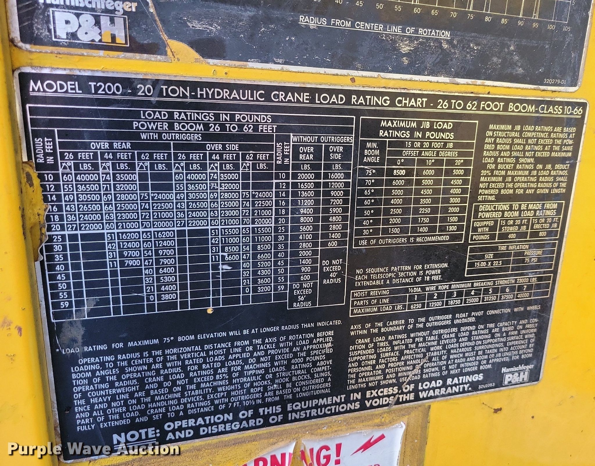 Purple Wave is selling a used Truck Crane in Missouri. This item is a P&H T200 crane with the following: Miles: 111,494 on odometer, Hours: 2,500 on meter, Serial: 99948