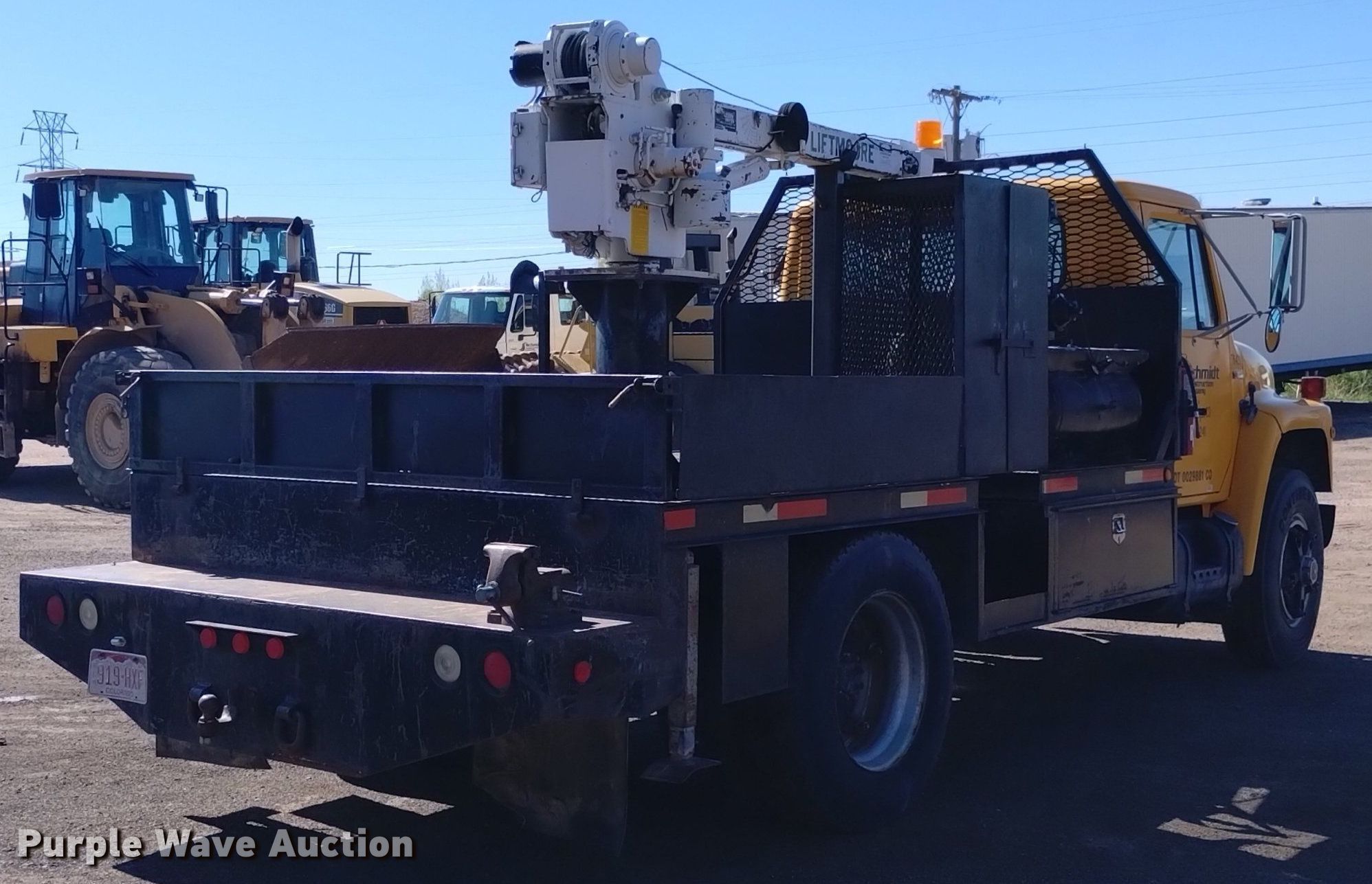 1984 International 1955 flatbed truck. Miles: 210,186 on odometer, Hours: 503 on meter, VIN: 1HSLRUXN4EHA14241, Unit #: TK43. Engine International, Displacement: 7.6L, Cylinders: 6, Fuel type: Diesel. Transmission International, Manual, Speed: 5. Chassis Axles: Single, Suspension: Spring, Brakes: Air, PTO. Interior Heat. Features Bed 13' 6" L x 97" W, Air compressor, Crane Liftmore 3200, Maximum boom length: 14' Maximum lift capacity: 3,200 lbs.. Tires Front: 11R22.5, Rear: 295/75R22.5. Notes DOT certification lapsed, Air compressor electric motor missing, Crane remote missing. Colorado title. Title distribution may be delayed up to 14 days from verification of funds. Schmidt Construction Company -Open inspection will be May 22nd and 25th. Colorado Springs, CO 80910
