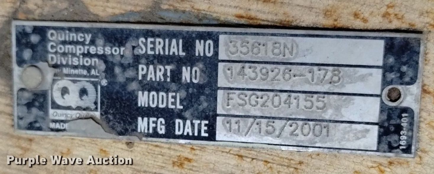 2001 Quincy QSF125-100 air compressor | SOLD! June 6 Construction Equipment Auction