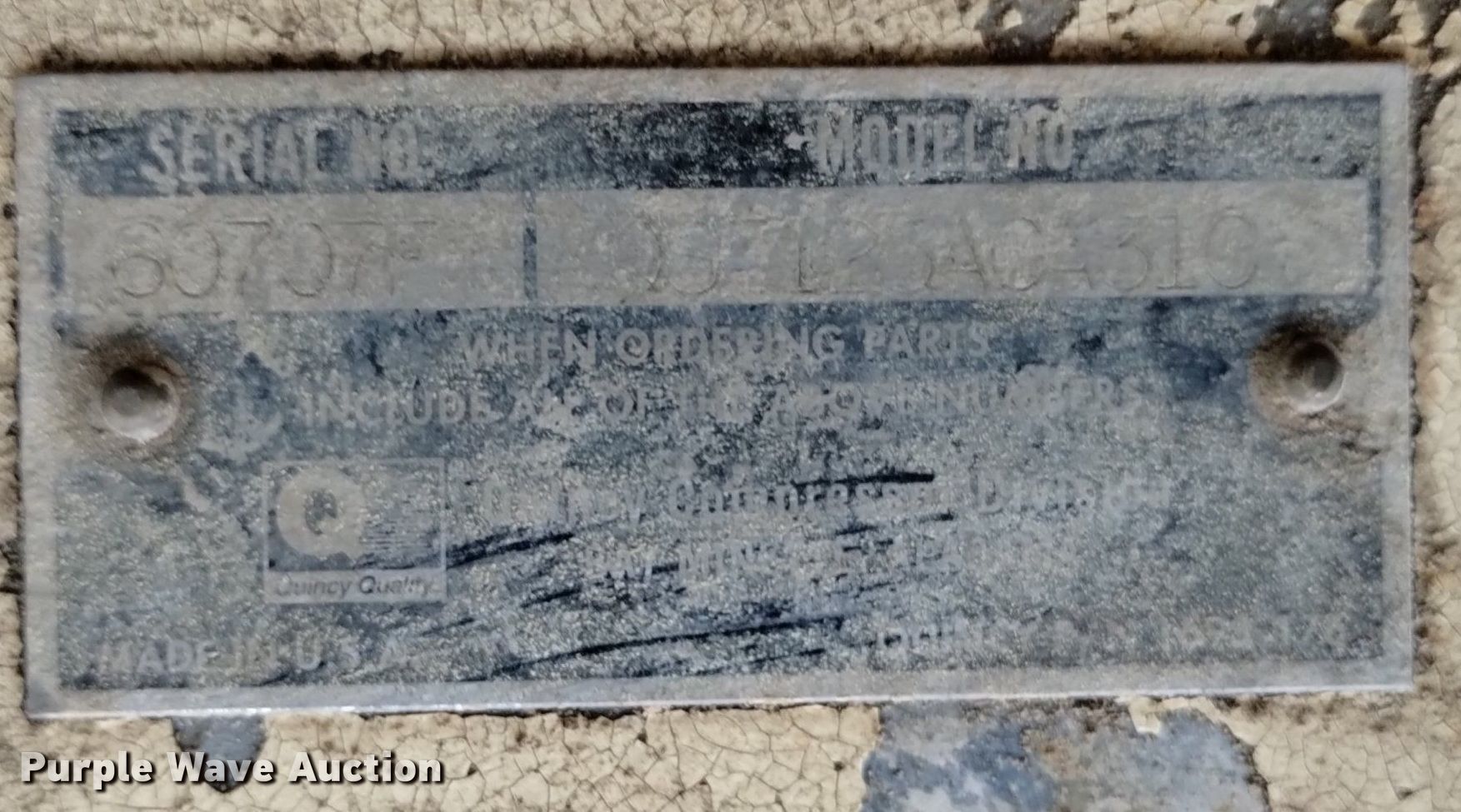 2001 Quincy QSF125-100 air compressor has sold in Colorado Springs, Colorado for $55. Item DQ6089 sold on June 6th, 2024.