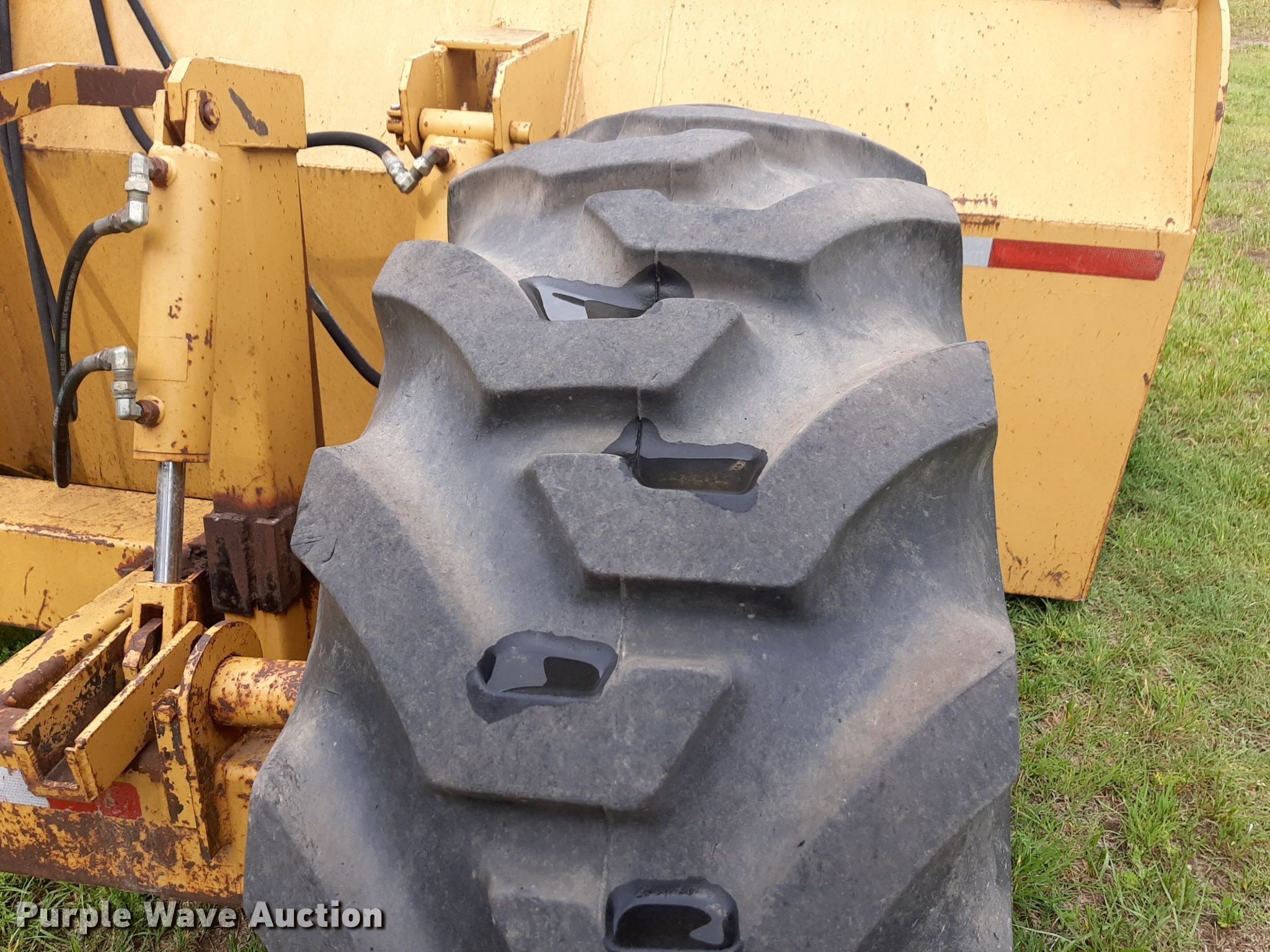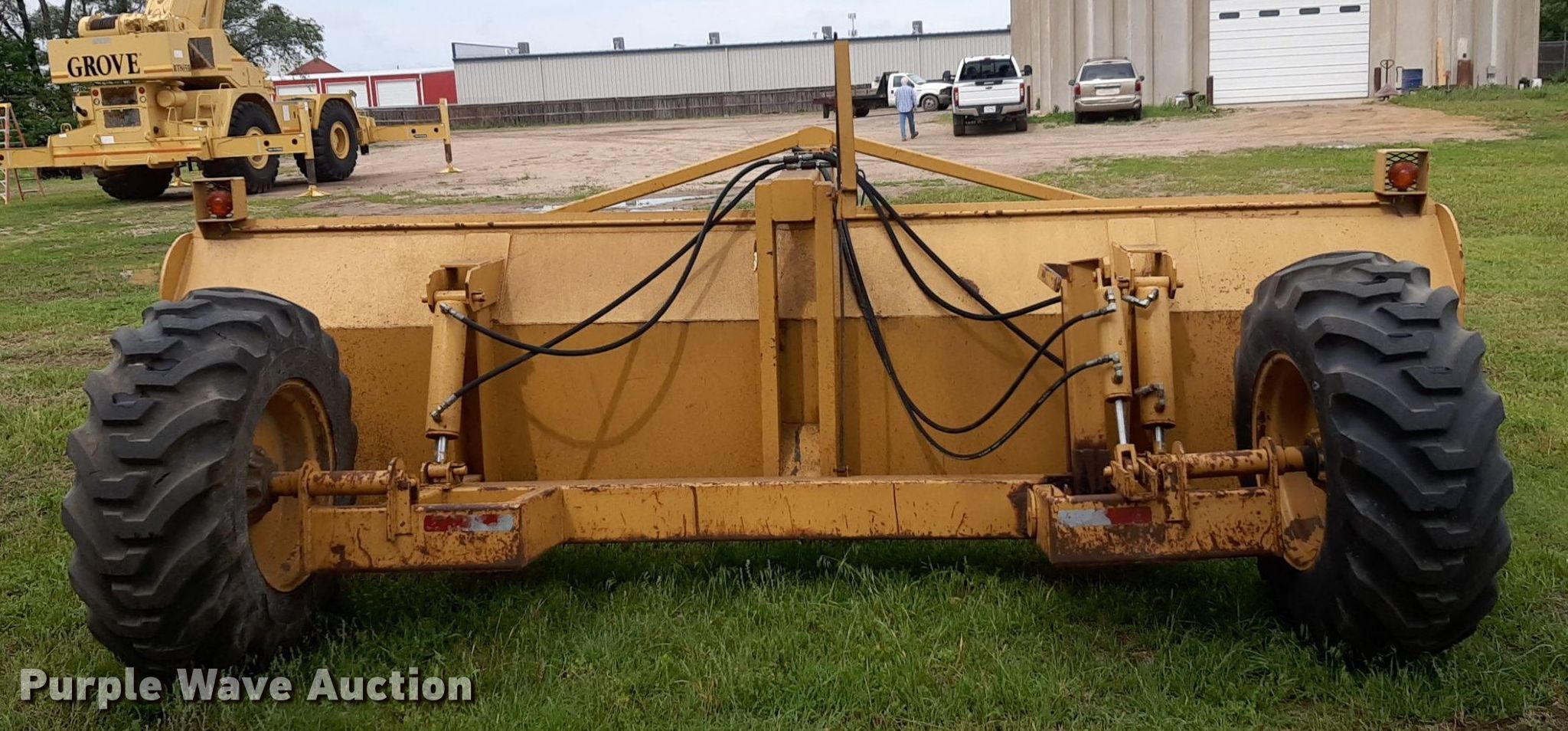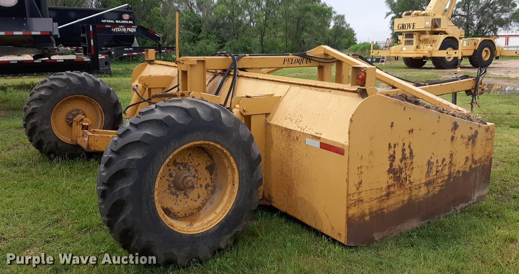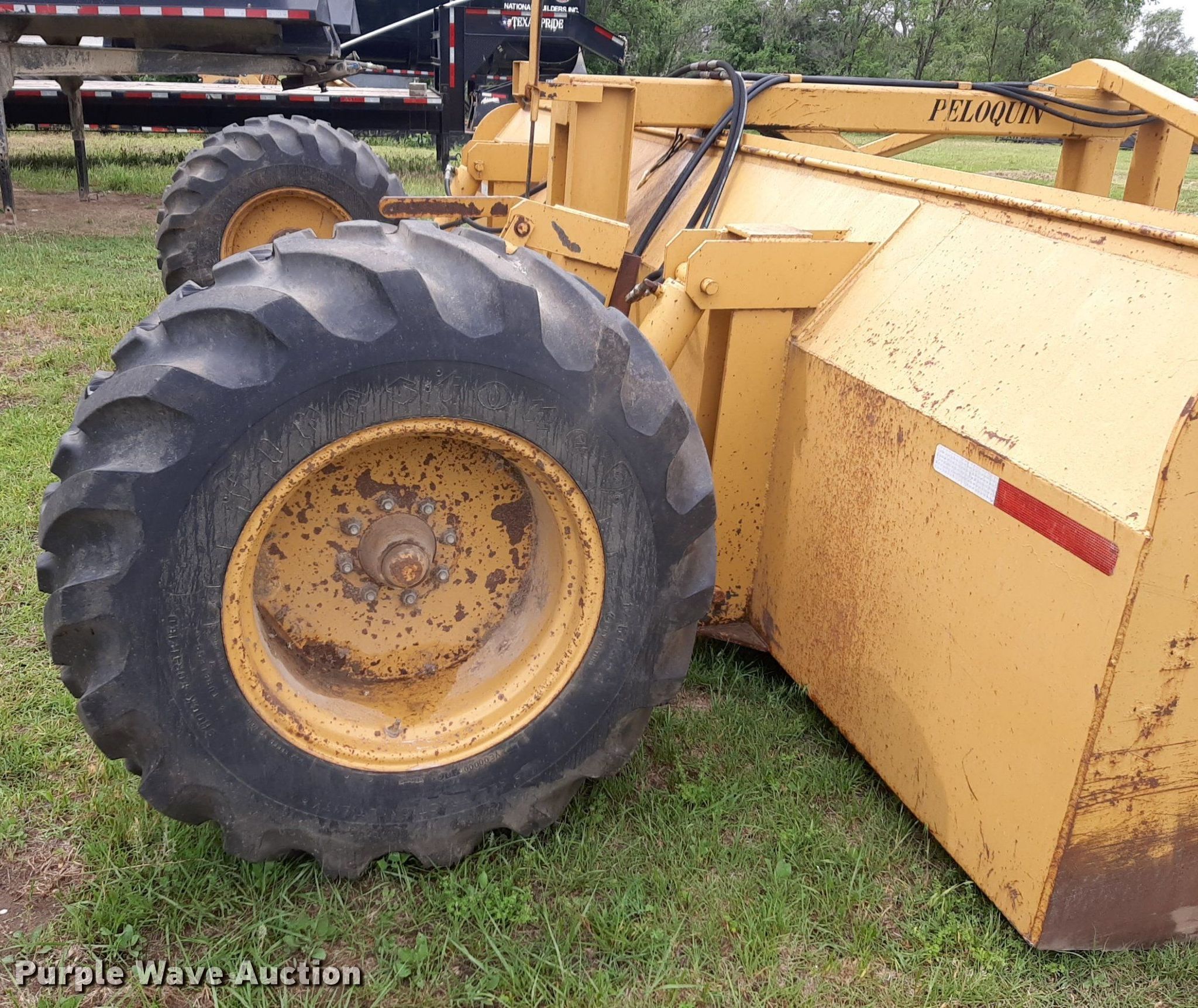 Peloquin box blade. Width: 16'. Features Hydraulic lift. Tires Size: 17.5-24. Notes Tractor not included. National Builders Inc.. Wichita, KS 67205