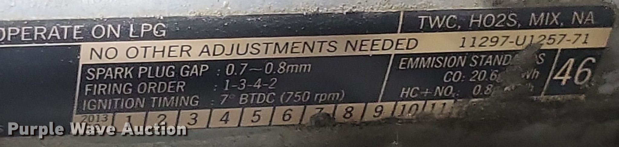 Toyota 8FGCU15 forklift. Hours: 10,211 on meter, Serial: 30498, Unit #: 6. Engine Toyota ETIEB02.204Y, Displacement: 2.237L, Cylinders: 4, Fuel type: LPG LP bottle: Included. Transmission Powershift. Operators station Canopy. Features Maximum lift capacity: 2,600 lbs, Mast stages: 3, Side shift, Mast tilt, Fork length: 42". Tires Front: 18 x 6 x 12 1/8, Rear: 14 x 4 1/2 x 8, Solid. Notes Additional LP bottle. Jackson, MO 63755