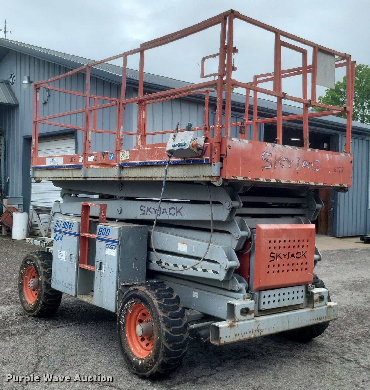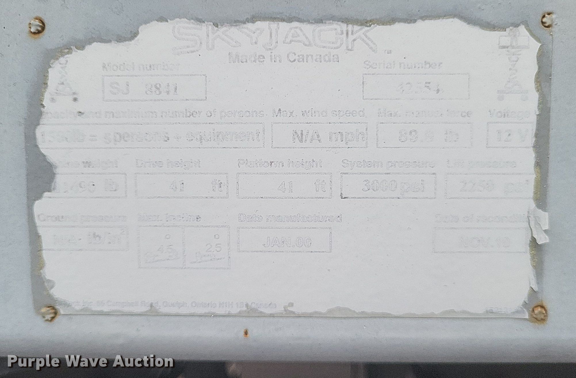 Purple Wave is selling a used Scissor or Vertical Lift in Missouri. This item is a 2000 SkyJack SJ8841 800 Series scissor lift with the following: Hours: 1,511 on meter, Serial: 42554, Unit #: 6372