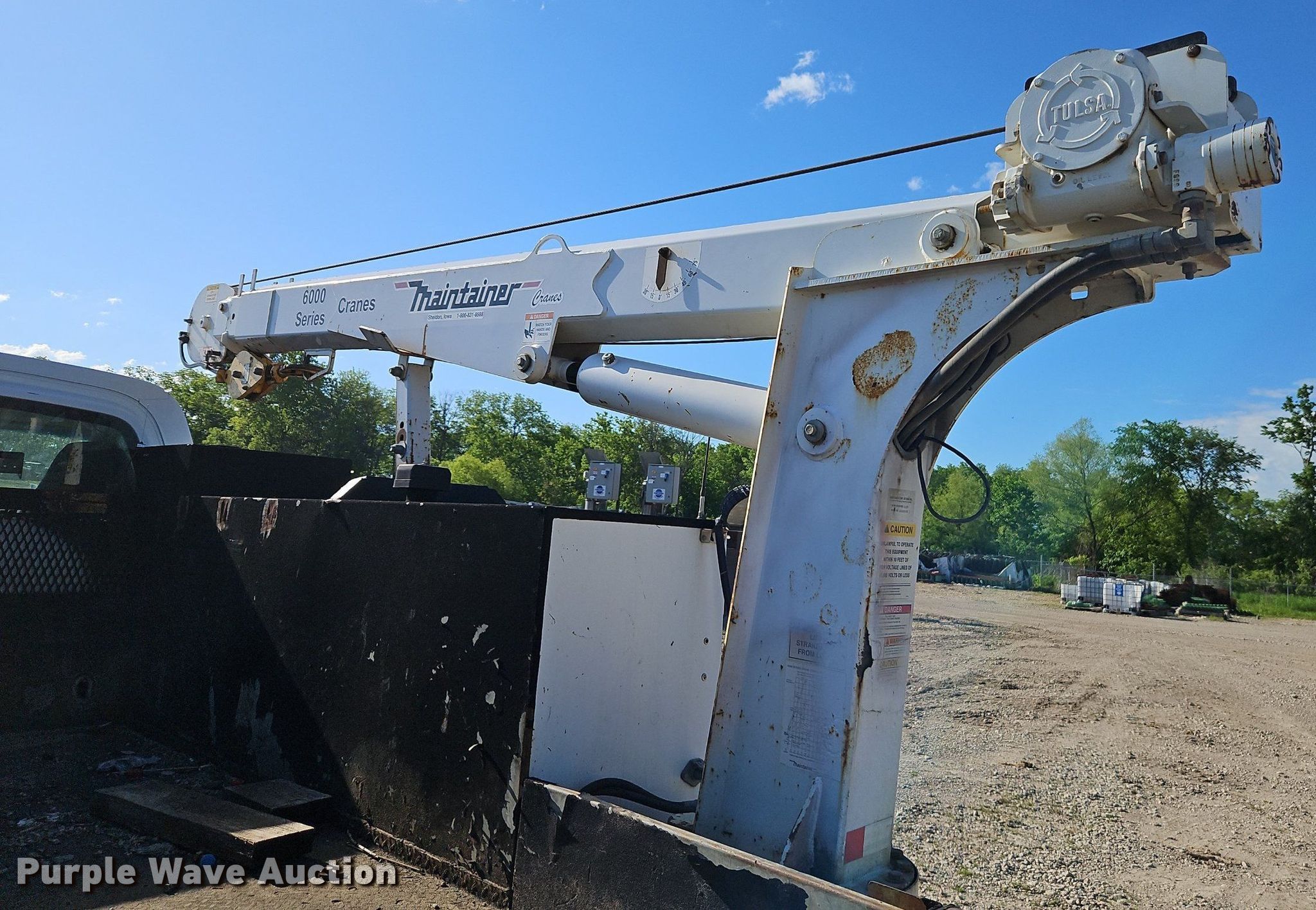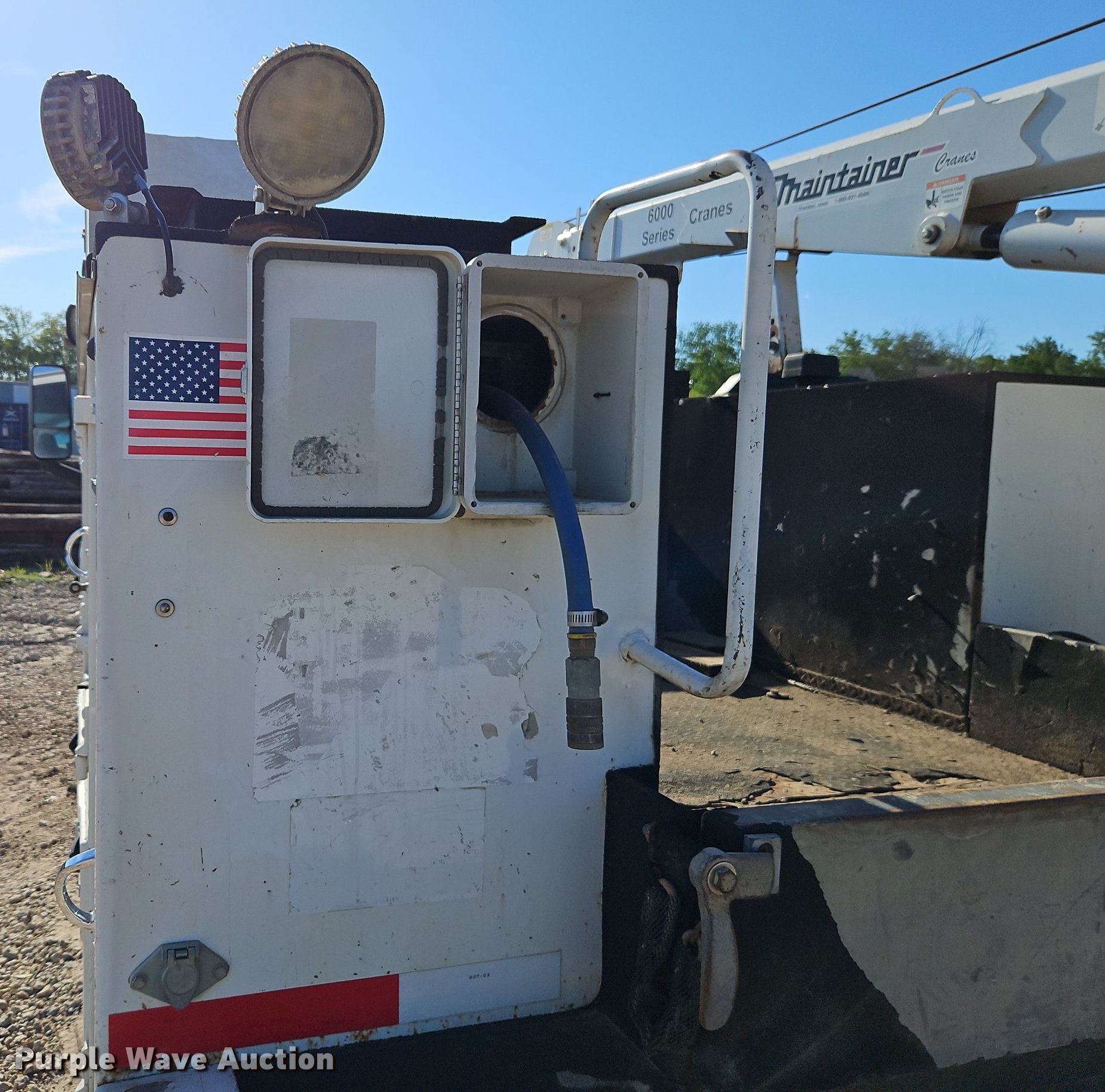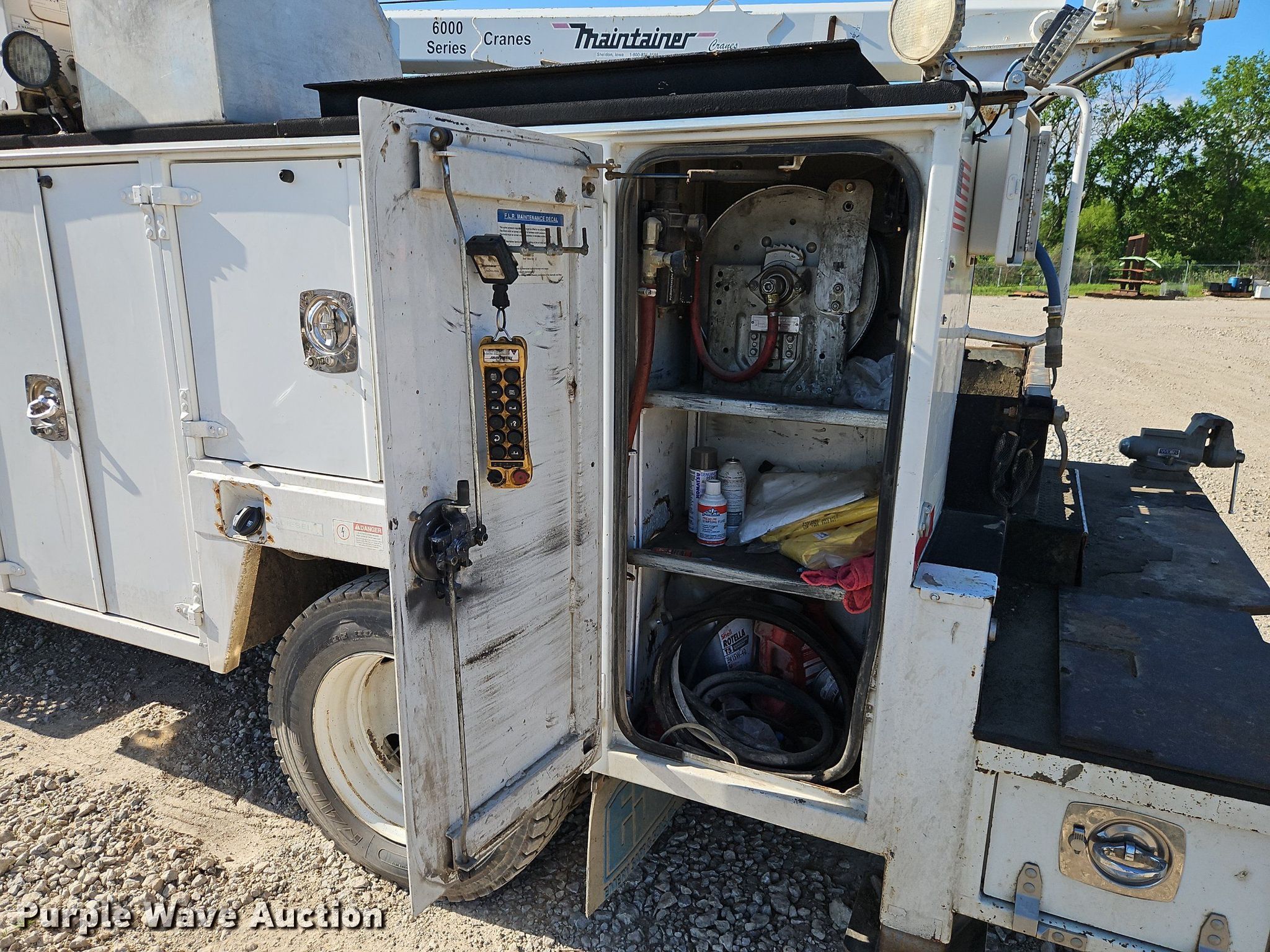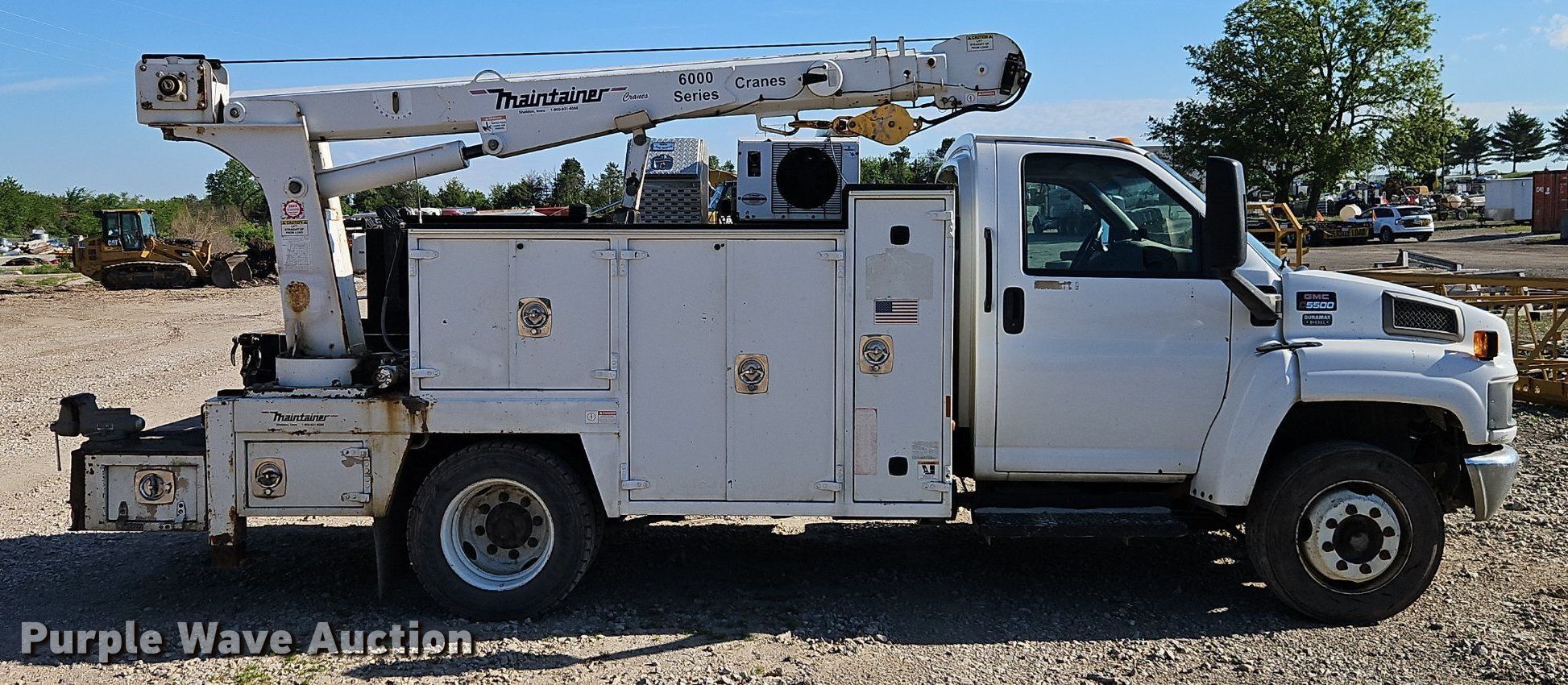 2006 GMC C5500 utility / service truck. Miles: 310,083 on odometer, VIN: 1GDE5C1296F431009, Unit #: 5-018. Engine Displacement: 6.6L, Cylinders: 8, Fuel type: Diesel. Transmission Automatic. Chassis Axles: Single, Suspension: Spring, Brakes: Hydraulic, PTO, GVWR: 19,500 lbs. Interior AC, heat, Power windows, power locks, Cruise control, Auxiliary controls. Features Bed Maintainer X-185K, 13' L x 96" W, Torch bottle rack, Air compressor Ingersoll Rand VPH40RMH, Crane Maintainer 6000, Maximum boom length: 24' Maximum lift capacity: 6,350 lbs.. Tires Size: 245/70R19.5. Notes Dash warning indicator: ABS, Brake, Dash warning indicator: Service engine oil, Dead battery, Possible powers steering issues. Missouri title. Title distribution may be delayed up to 30 days from verification of funds. Emery Sapp & Sons, Inc.. Bucyrus, KS 66013