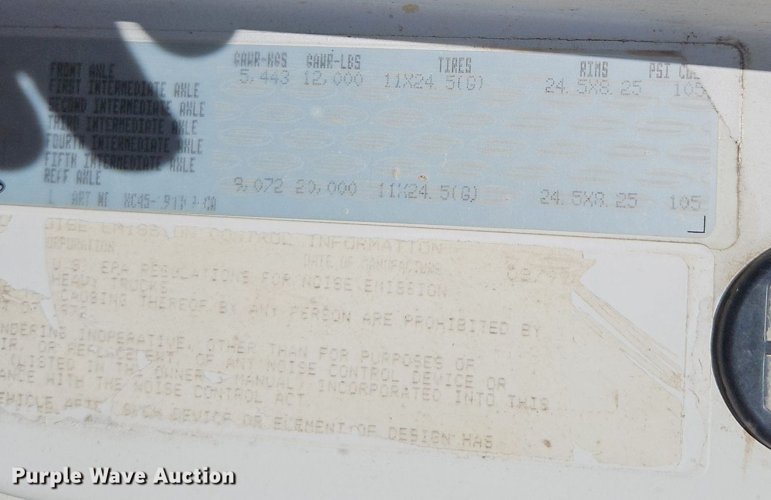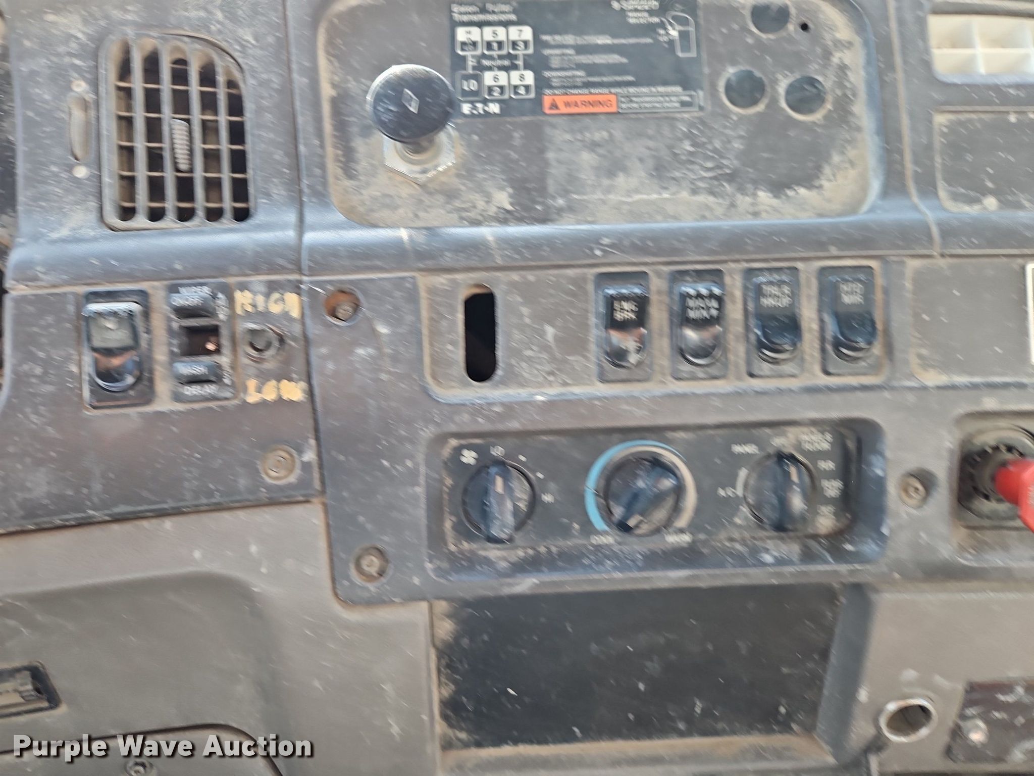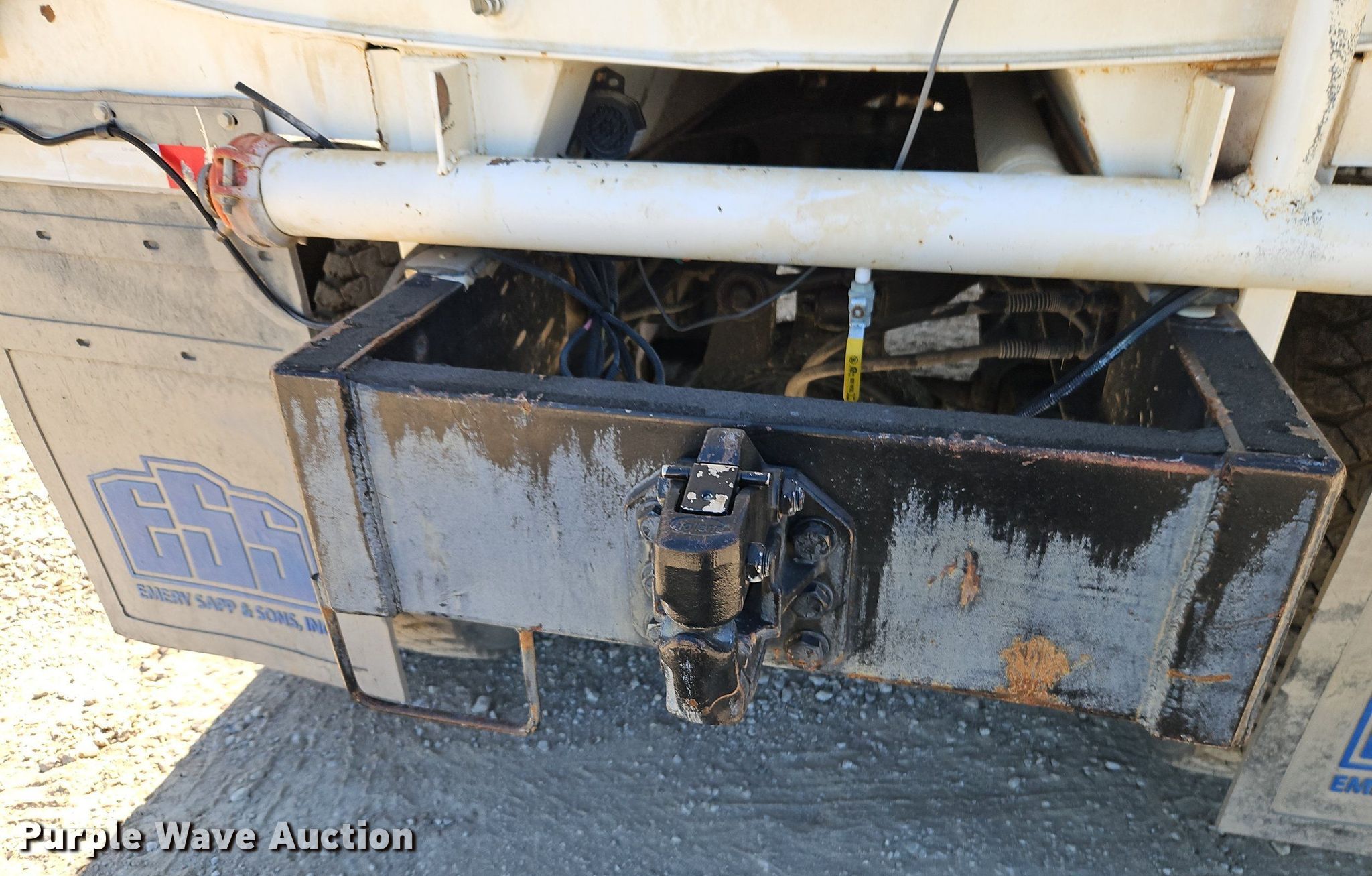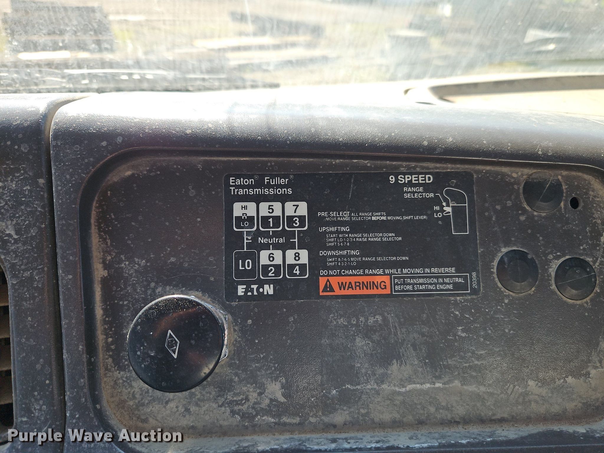 2000 Sterling A9500 water truck. Miles: 404,972 on odometer, Hours: 3,551 on meter, VIN: 2FWWHWDA6YAG39169, Unit #: 5-007. Engine Caterpillar, Displacement: 12.0L, Cylinders: 6, Fuel type: Diesel. Transmission Eaton Fuller, Manual, Speed: 9. Chassis Axles: Tandem, Differential lock: Inter-axle, Suspension: Spring over walking beam, Brakes: Air, PTO, GVWR: 14,515 lbs. Interior AC, Heat, Heated mirrors, Cruise control. Features Bed / tank Capacity: 3,850 gallons, 15' L x 105" W, Spray bar: Front, Rear, Side discharge, Sight tube. Tires Front: 11R24.5, Rear: 11R22.5. Notes Front suspension and bushing need replaced. Missouri title. Title distribution may be delayed up to 30 days from verification of funds. Emery Sapp & Sons, Inc.. Bucyrus, KS 66013