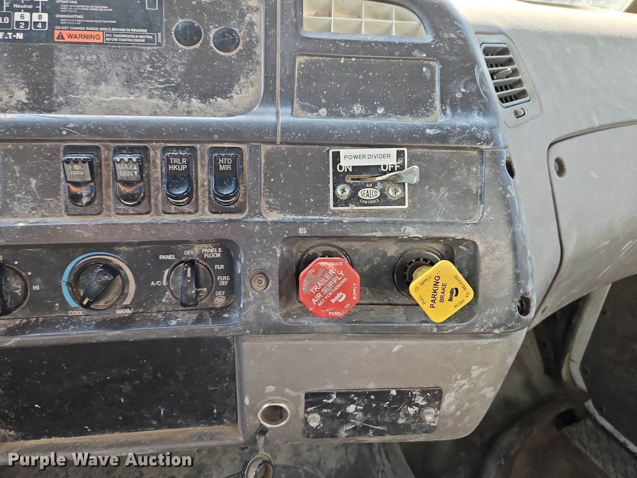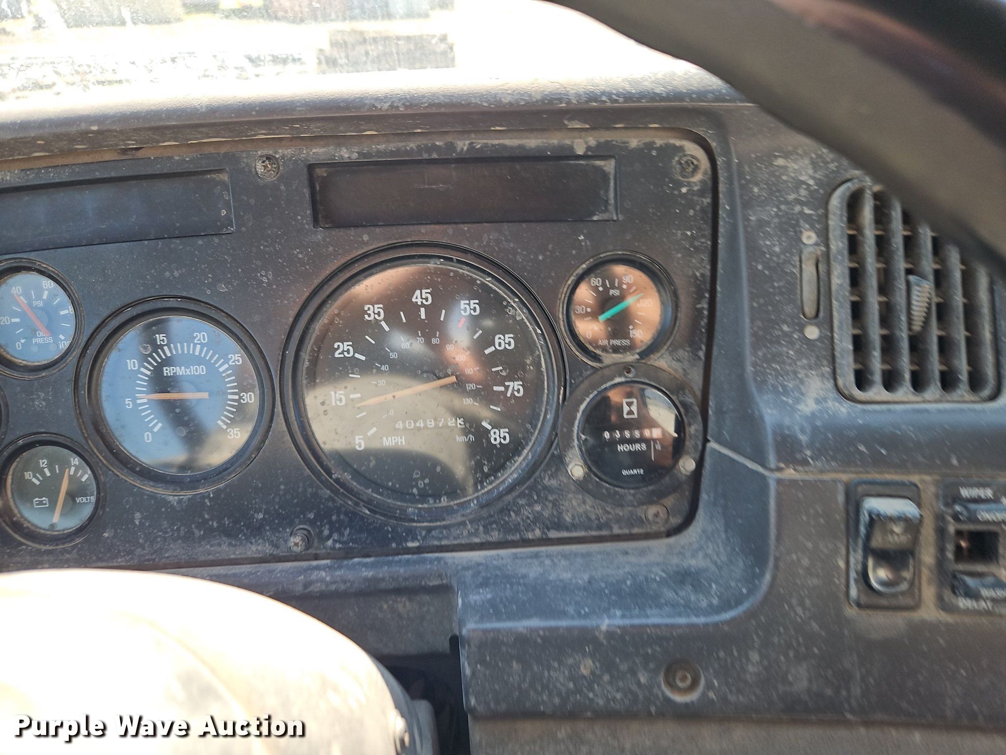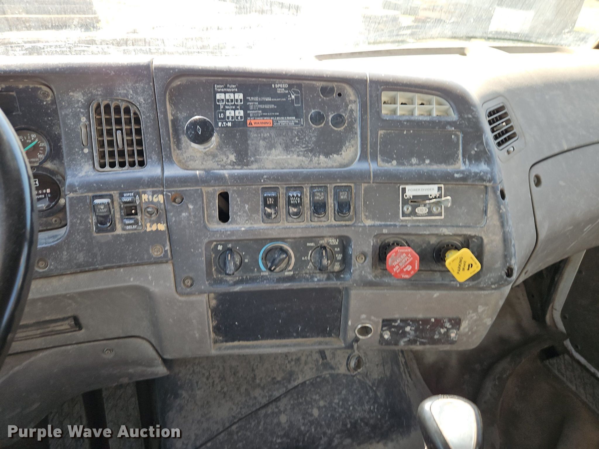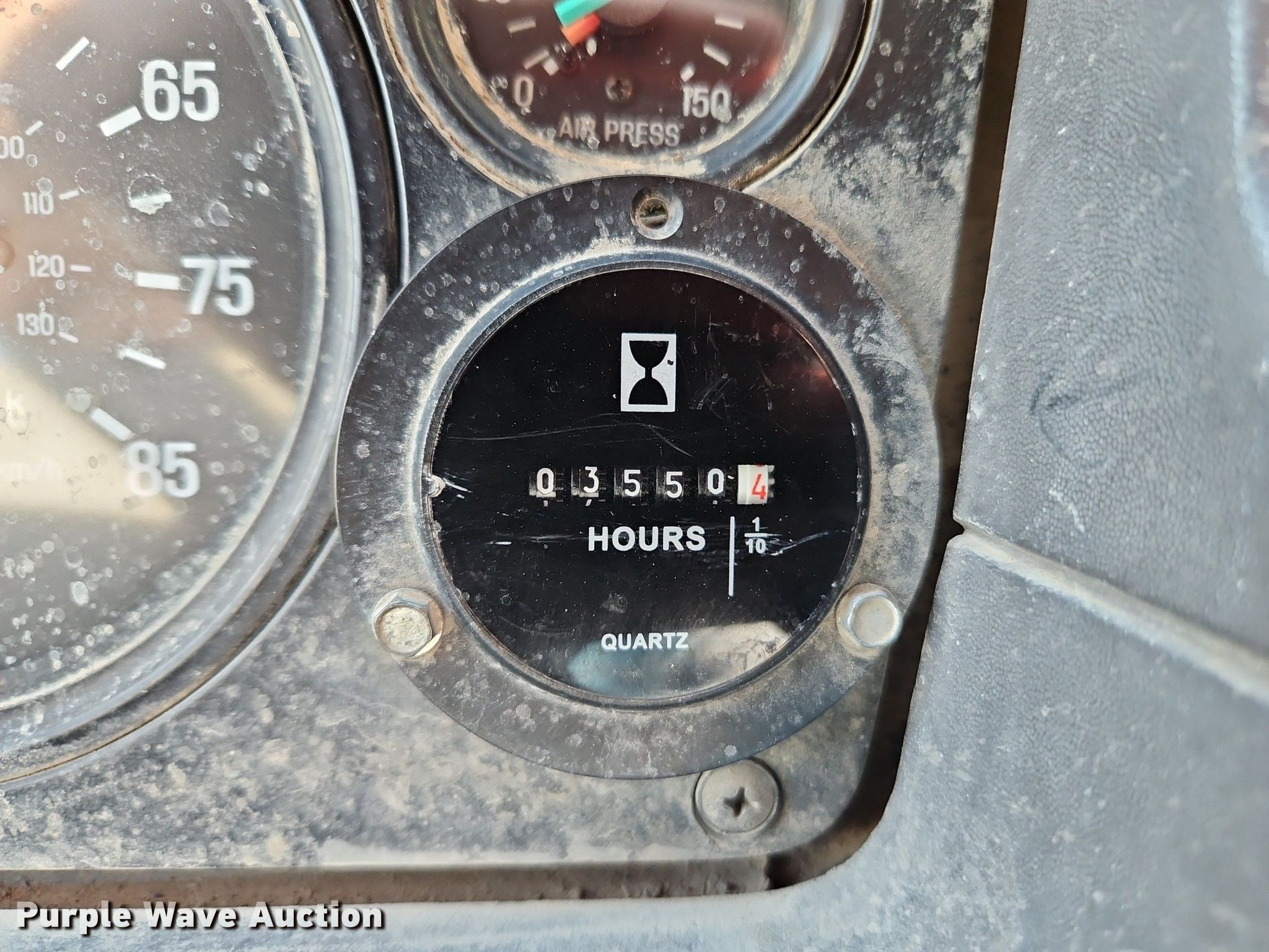 2000 Sterling A9500 water truck. Miles: 404,972 on odometer, Hours: 3,551 on meter, VIN: 2FWWHWDA6YAG39169, Unit #: 5-007. Engine Caterpillar, Displacement: 12.0L, Cylinders: 6, Fuel type: Diesel. Transmission Eaton Fuller, Manual, Speed: 9. Chassis Axles: Tandem, Differential lock: Inter-axle, Suspension: Spring over walking beam, Brakes: Air, PTO, GVWR: 14,515 lbs. Interior AC, Heat, Heated mirrors, Cruise control. Features Bed / tank Capacity: 3,850 gallons, 15' L x 105" W, Spray bar: Front, Rear, Side discharge, Sight tube. Tires Front: 11R24.5, Rear: 11R22.5. Notes Front suspension and bushing need replaced. Missouri title. Title distribution may be delayed up to 30 days from verification of funds. Emery Sapp & Sons, Inc.. Bucyrus, KS 66013