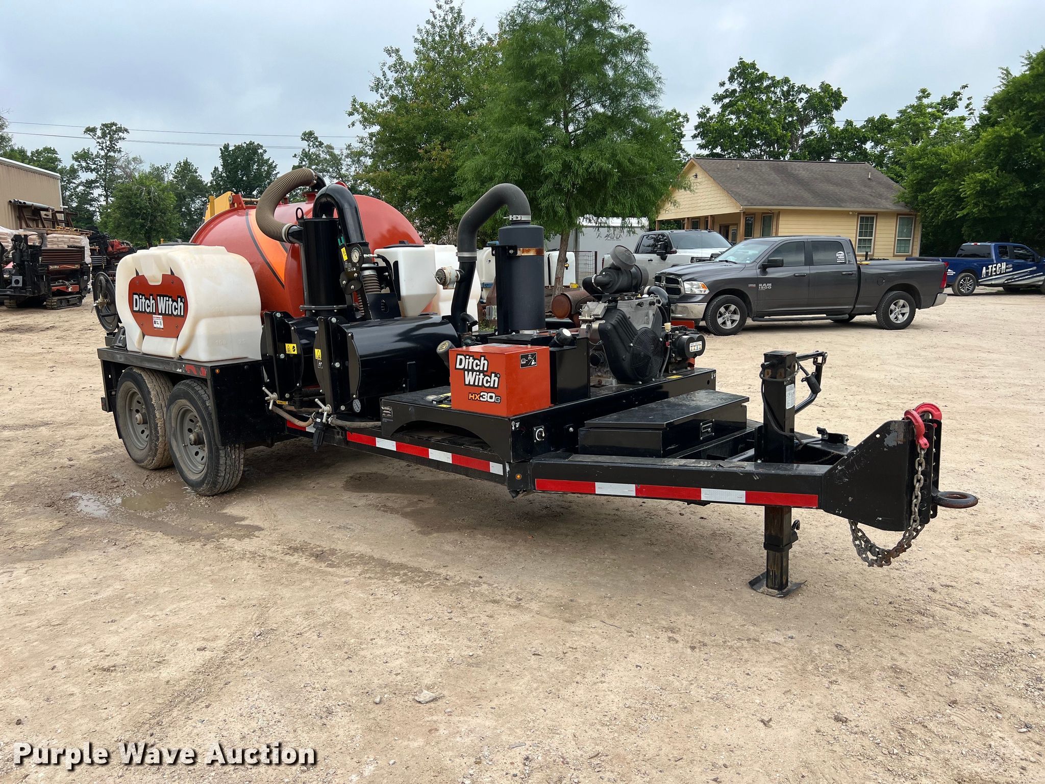 2021 Ditch Witch HX30G vacuum excavator. Hours: 368 on meter, VIN: 1DST522D4M1703039, Serial: DWPHX30GEM0000150. Engine Briggs & Stratton LBSXS.9932VB, Displacement: 896cc, Cylinders: 2, Fuel type: Gas. Features Spoils tank Capacity: 500 gallons, Water tank Capacity: 200 gallons, Water pump, Vacuum pump Inlet valve size: 4", Outlet valve size: 4", Suction hose Diameter: 3". Trailer 2021 The Charles Machine Works VT12, 19' L x 96" W, Brakes: Electric, Axles: Tandem, Suspension: Spring, Tire size: 235/80R16, GVWR: 12,000 lbs, GAWR: 6,840 lbs. Notes Dead battery, Non-operational spoils tank hoist. Texas title. Title distribution may be delayed up to 14 days from verification of funds. Houston, TX 77016