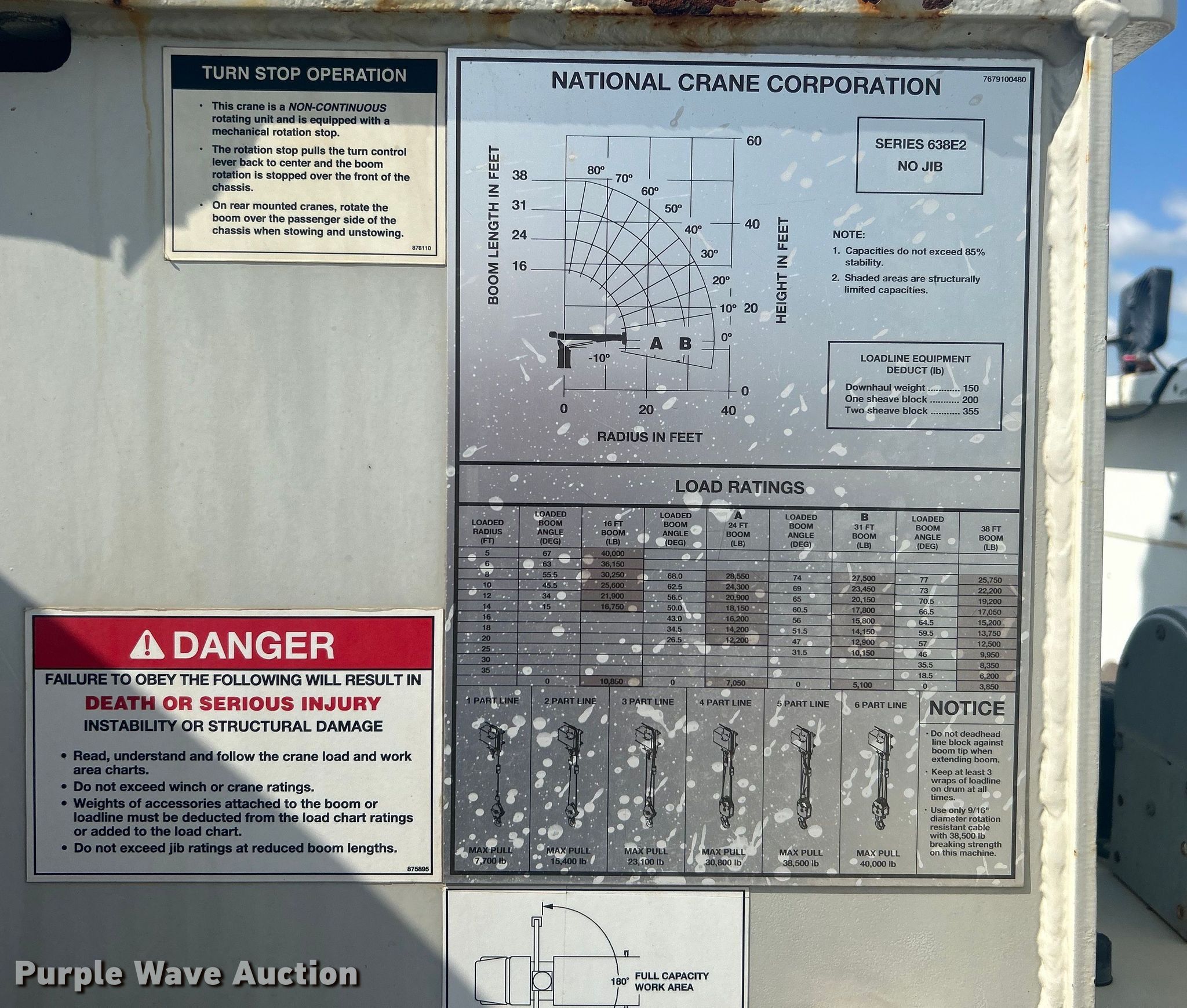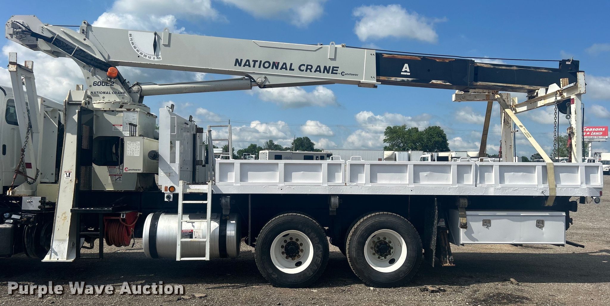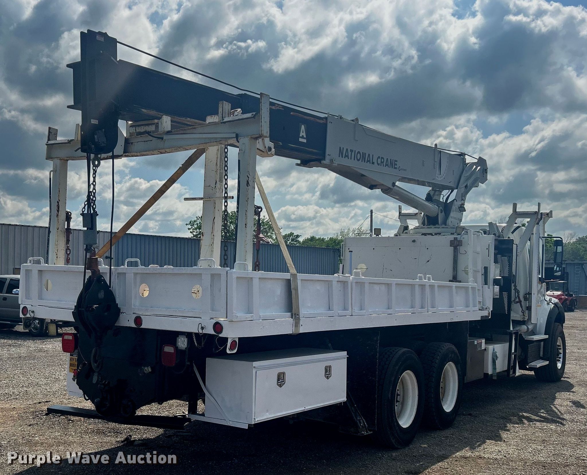 2012 Freightliner Business Class M2 crane truck. Miles: 97,972 on odometer, Hours: 5,084 on meter, VIN: 1FVHC7DV7CHBJ1571. Engine Detroit Diesel, Cylinders: 6, Fuel type: Diesel. Transmission Eaton Fuller, Manual, Speed: 8. Chassis Axles: Tandem, Suspension: Air, Brakes: Air, PTO, GVWR: 60,000 lbs FAWR: 20,000 lbs, IAWR: 20,000 lbs, RAWR: 20,000 lbs. Interior AC, Heat, Heated mirrors, Cruise control, Brake controller. Features Flatbed 20' 6" L x 94" W, Crane National Crane Corp. 600E2 Serial: 296687, Boom Telescopic, Maximum boom length: 38' Maximum lift capacity: 40,000 lbs, Boom controls Ground, Crane block Sheaves: 1, Capacity: 12.5 tons, Lift chart. Tires Front: 425/65R22.5, Rear: 11R22.5. Oklahoma title. Title distribution may be delayed up to 14 days from verification of funds. Collinsville, OK 74021